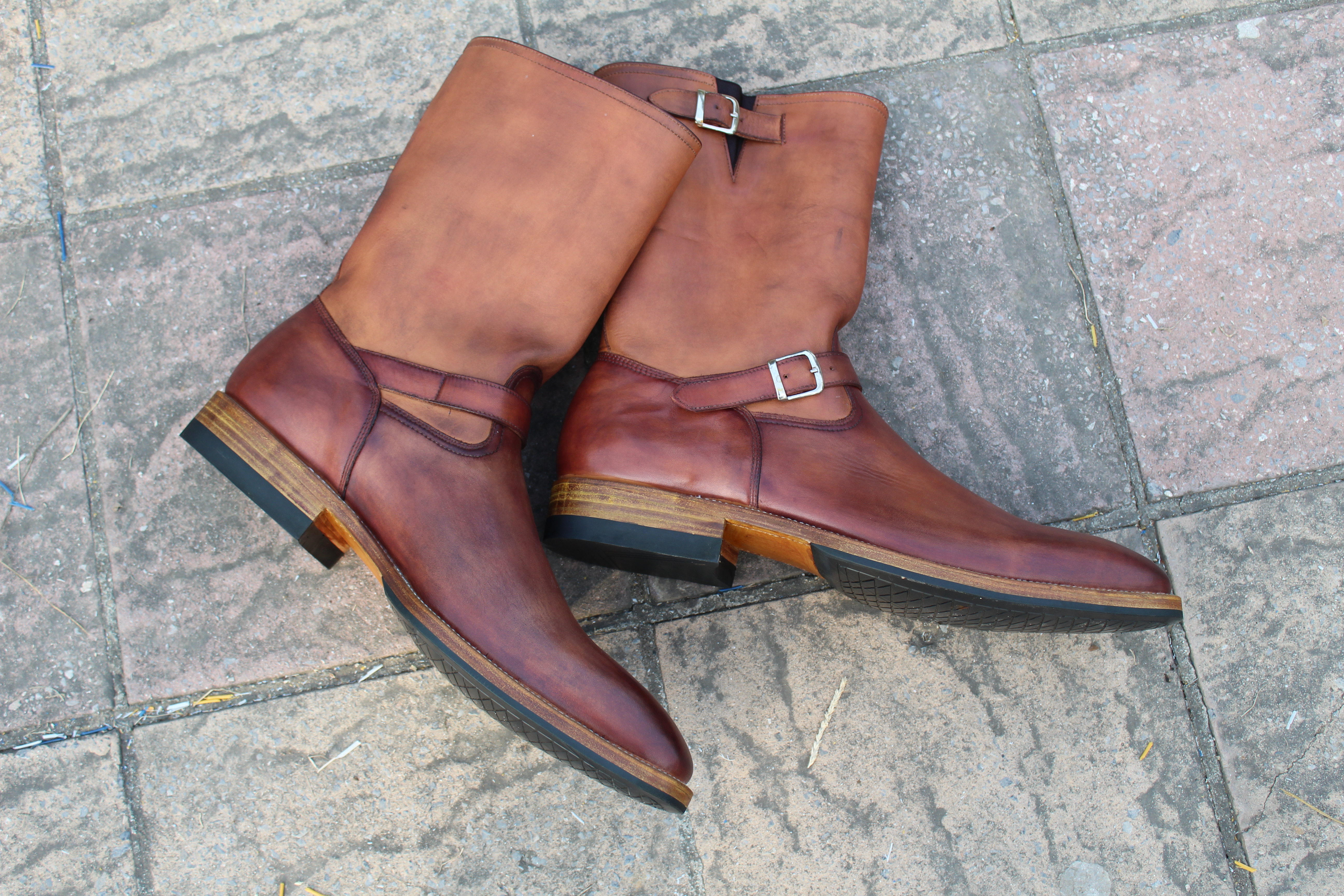 Crafted Leather Men Brown Leather Buckle Strap Long Cowboy Military Boot