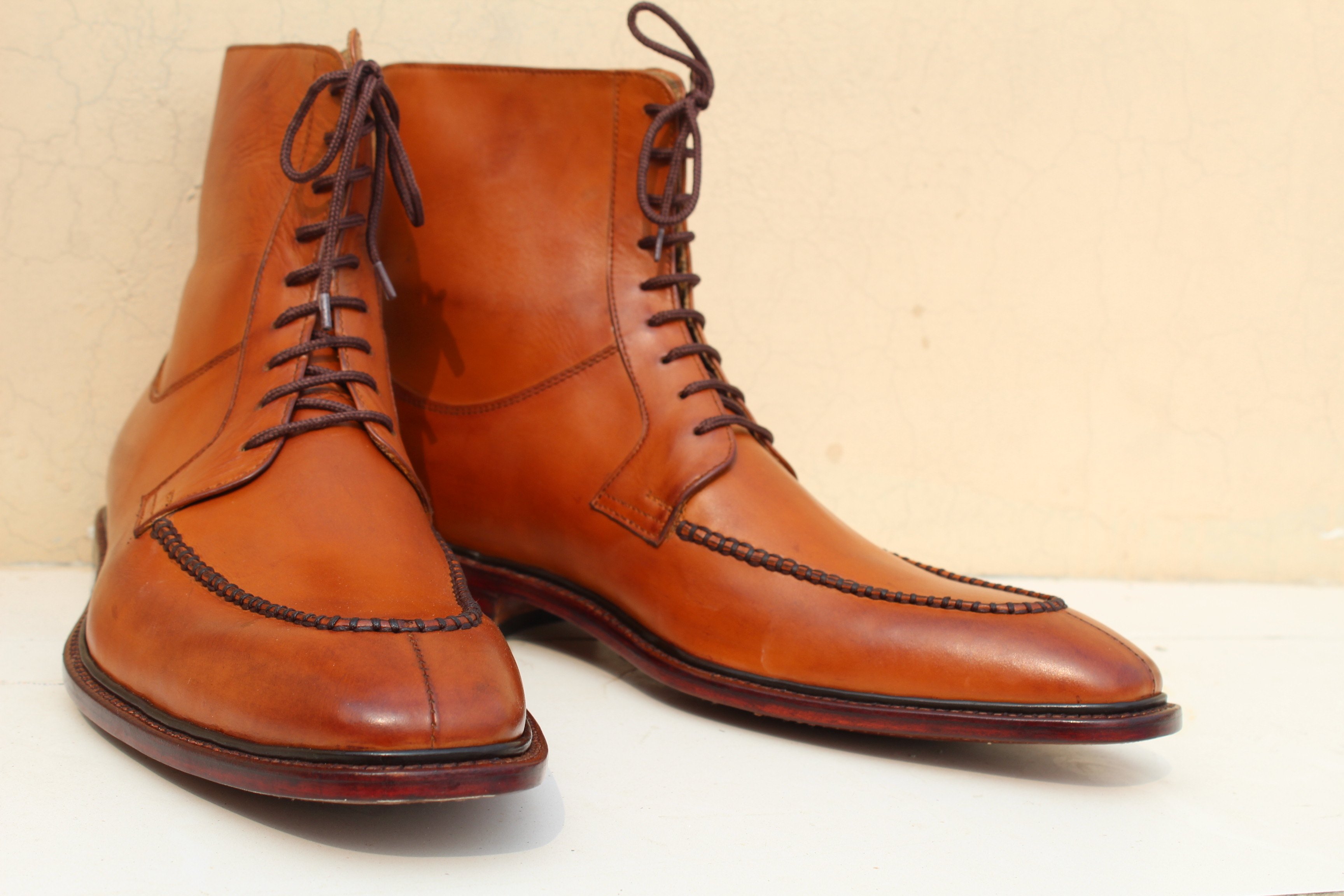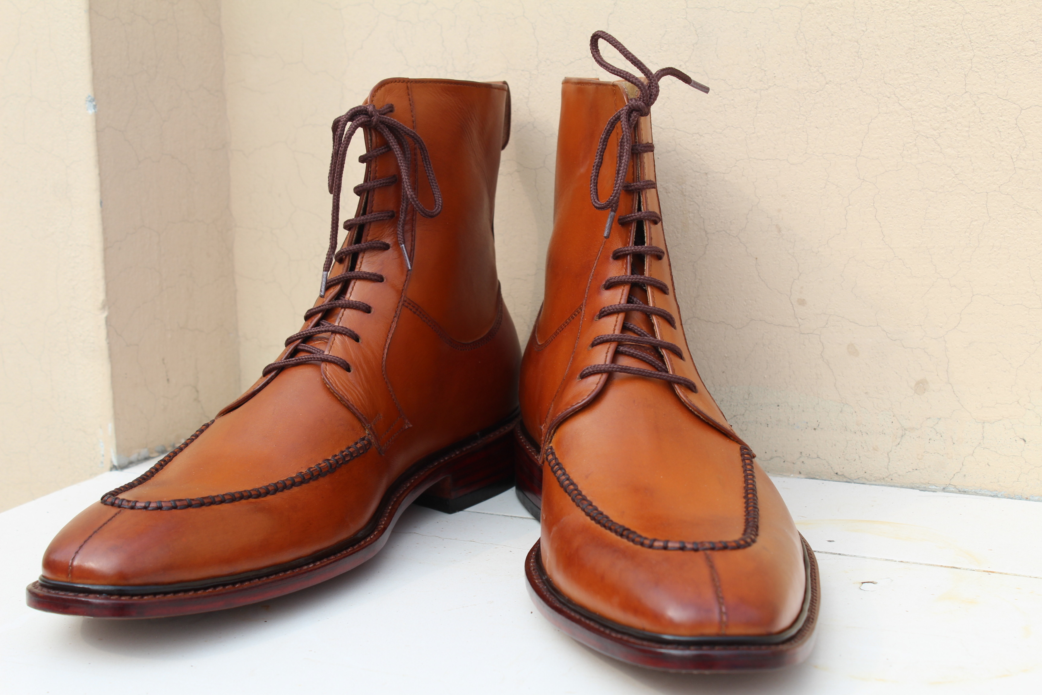 Inner: Soft Leather Sole: Leather Gender : Male Heel: Leather Color: Brown Style: Ankle High Dress Boot Lining Soft Calf Leather Lining Totally Hand stitched Manufacturing time 7-10 business days If you can’t find your Size/Colorjust send us message we will make for you.