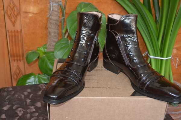 Inner: Soft Leather Sole: Leather Gender : Male Heel: Leather Color: Black Style: Jo Ghost Buckle Boot with Zipper and Button Lining Soft Calf Leather Lining Totally Hand stitched Manufacturing time 7-10 business days If you can’t find your Size/Colorjust send us message we will make for you.