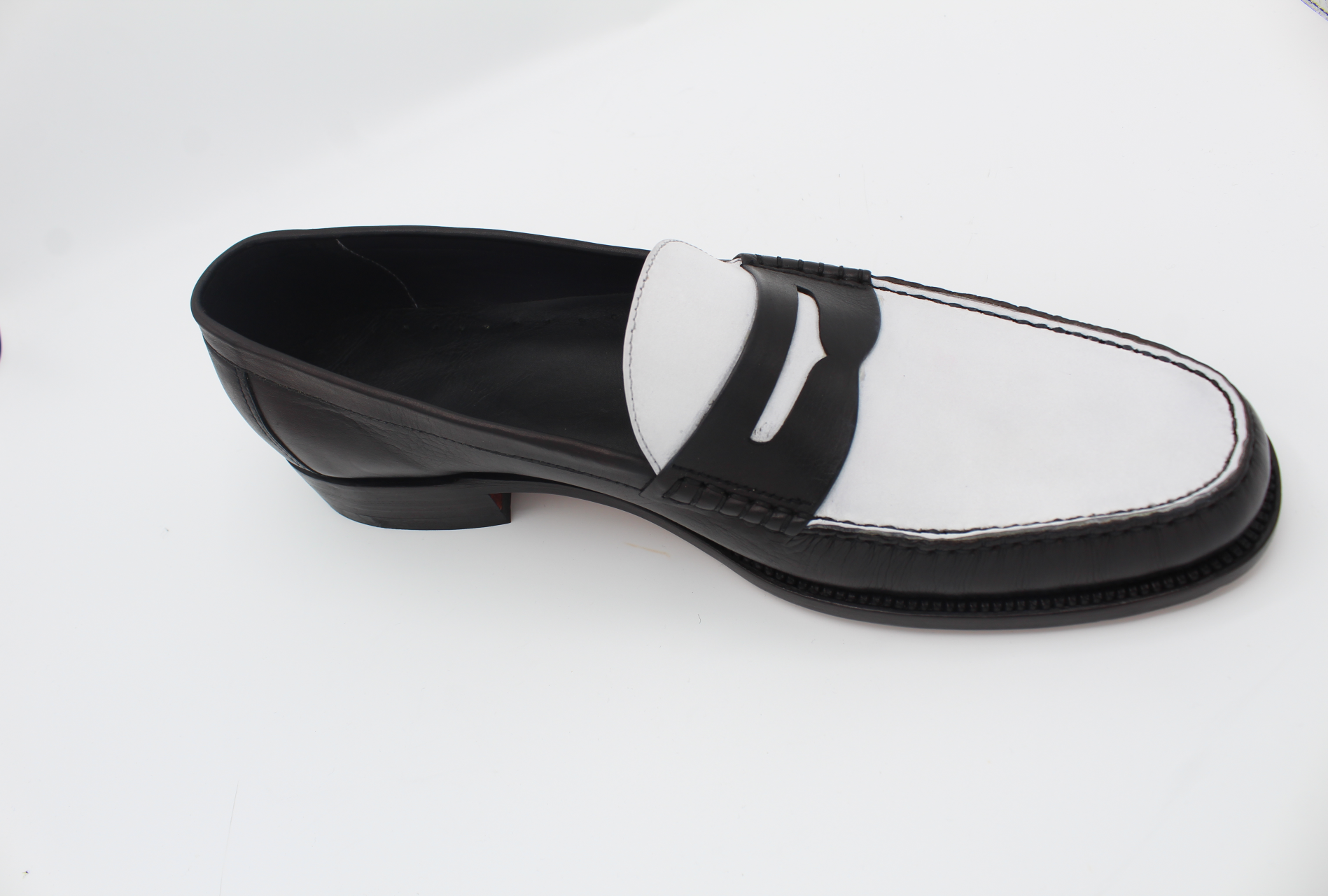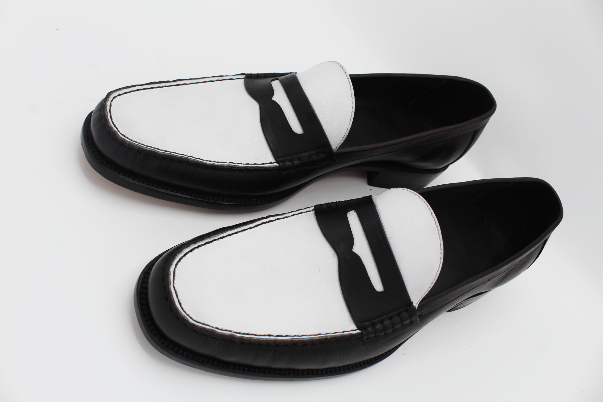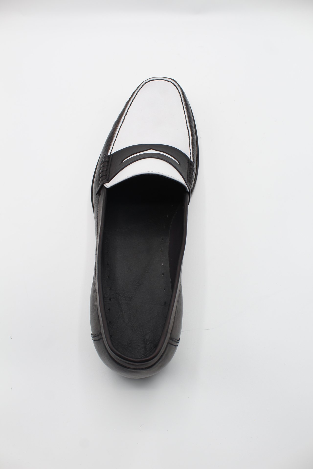Handmade Black White Leather Moccasin Loafers Dress Formal Shoes