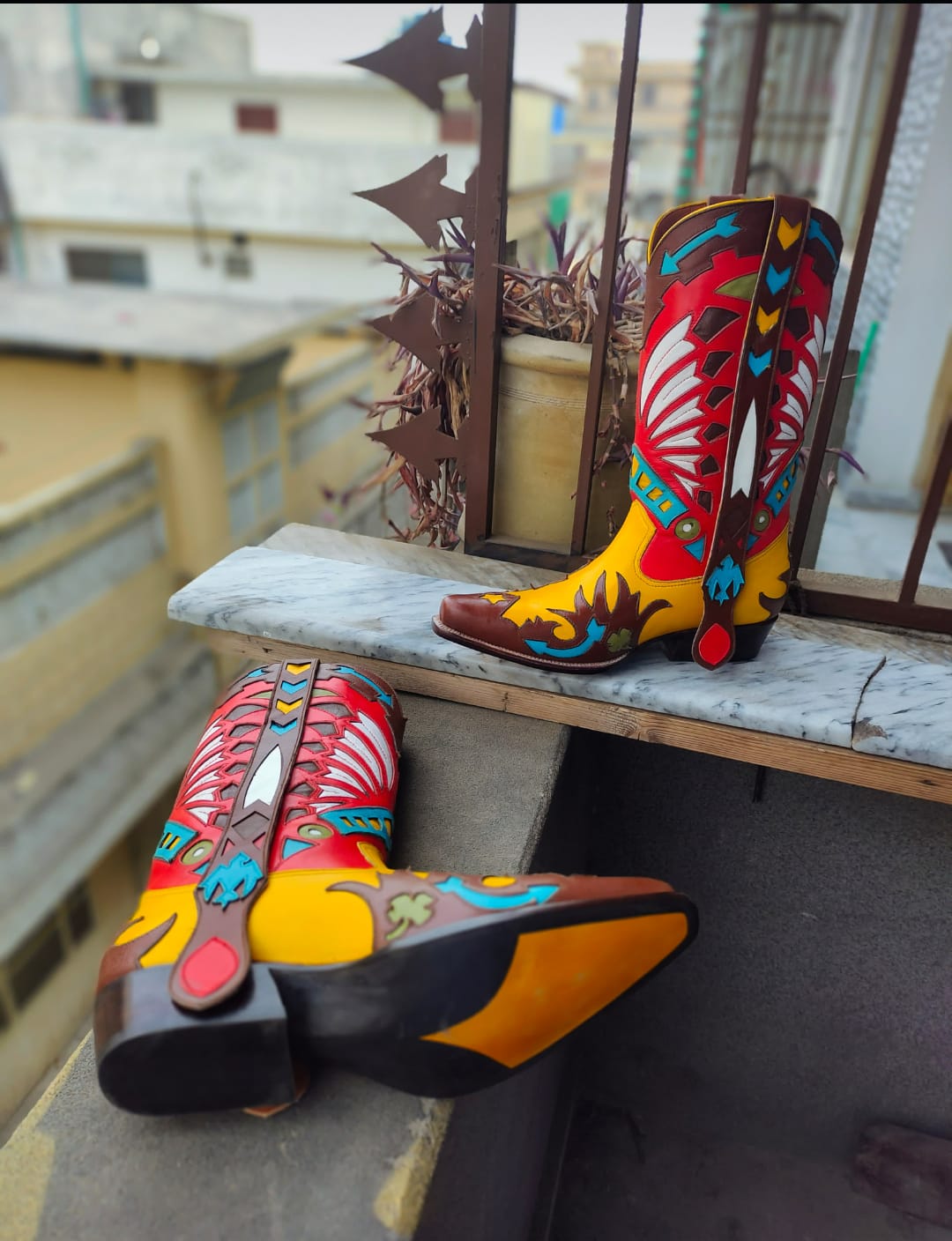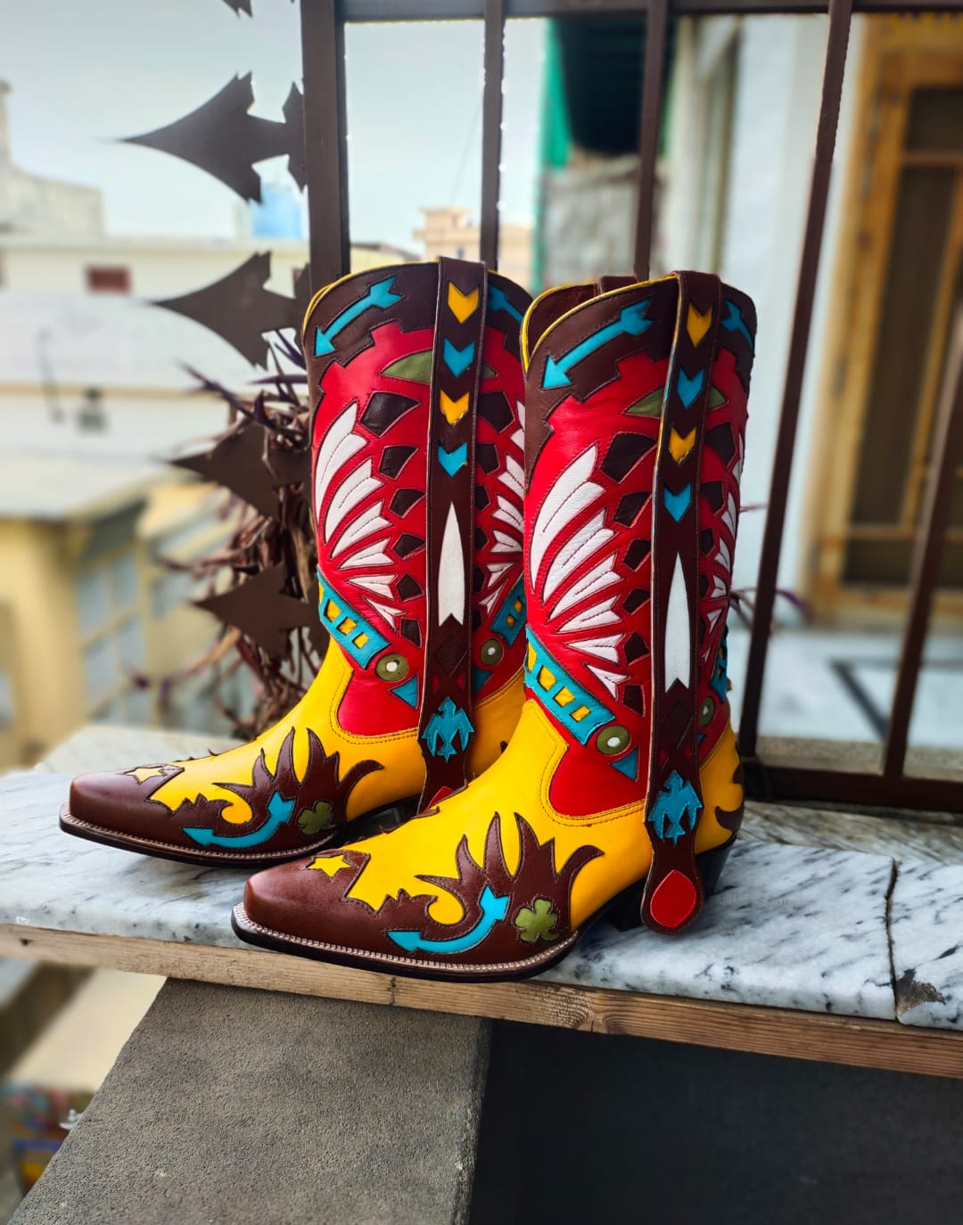 Crafted Leather Classic Dress Shoes Multi Color Leather Designer Fashion Ankle Cowboy Pointed Toe Boot