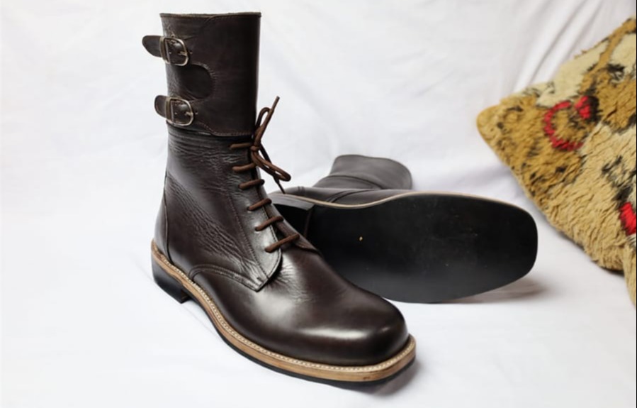 Inner: Soft Leather Sole: Leather Gender : Male Heel: Leather Color: Dark Brown Style: Ankle High Military Boot Lining Soft Calf Leather Lining Totally Hand stitched Manufacturing time 7-10 business days If you can’t find your Size/Colorjust send us message we will make for you.