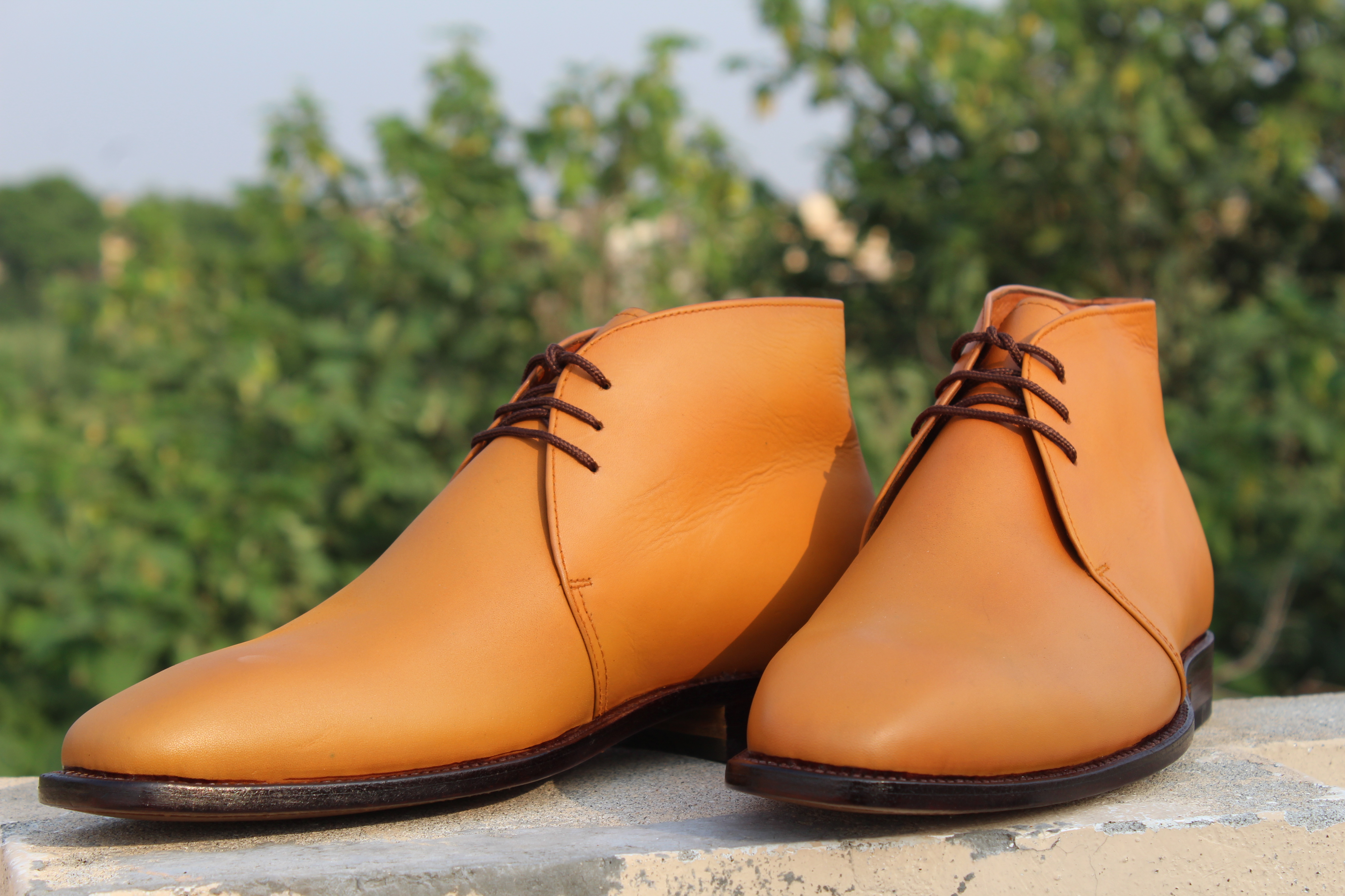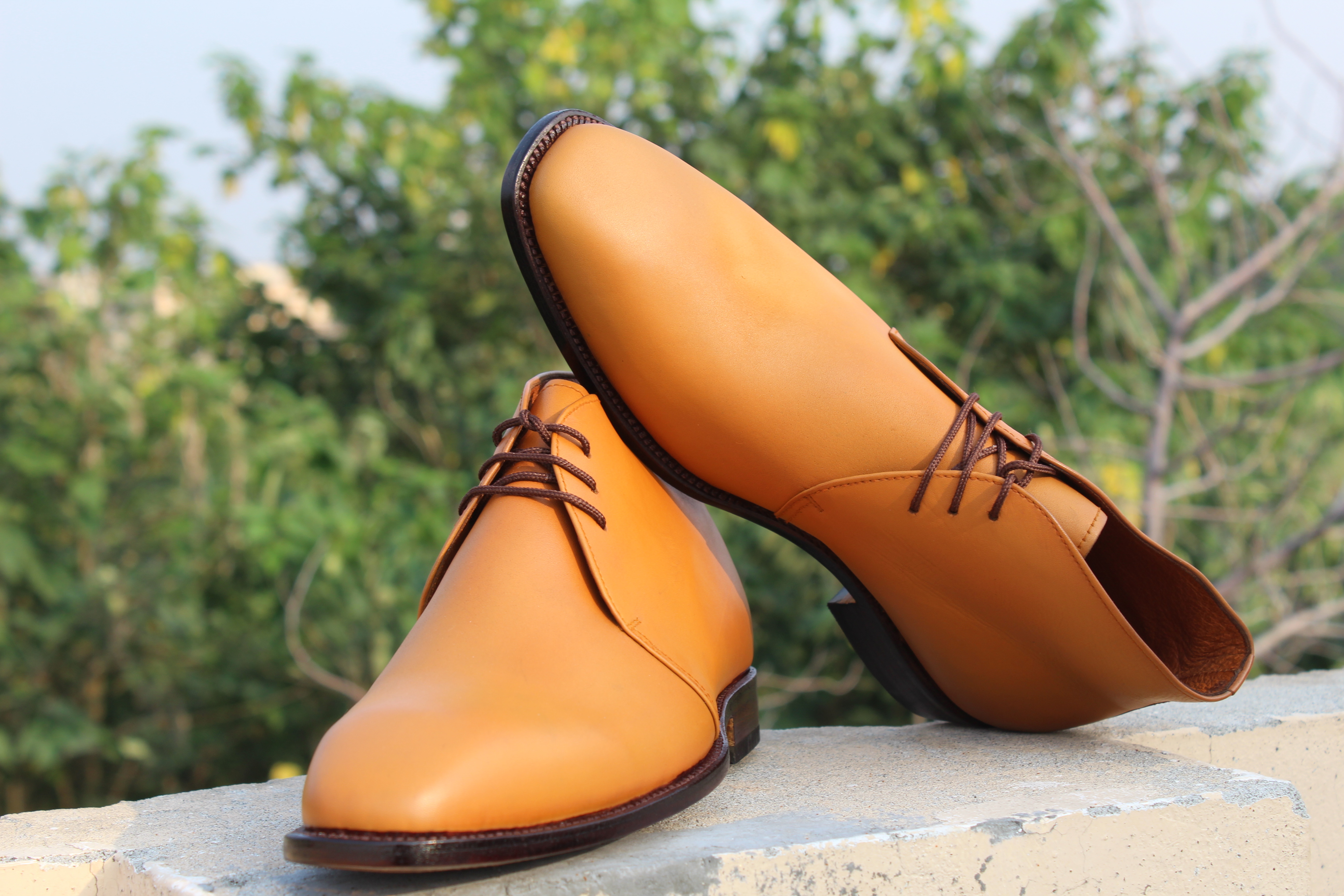 Crafted Leather Men's Handmade Tan Brown Lace Up Chukka Boots