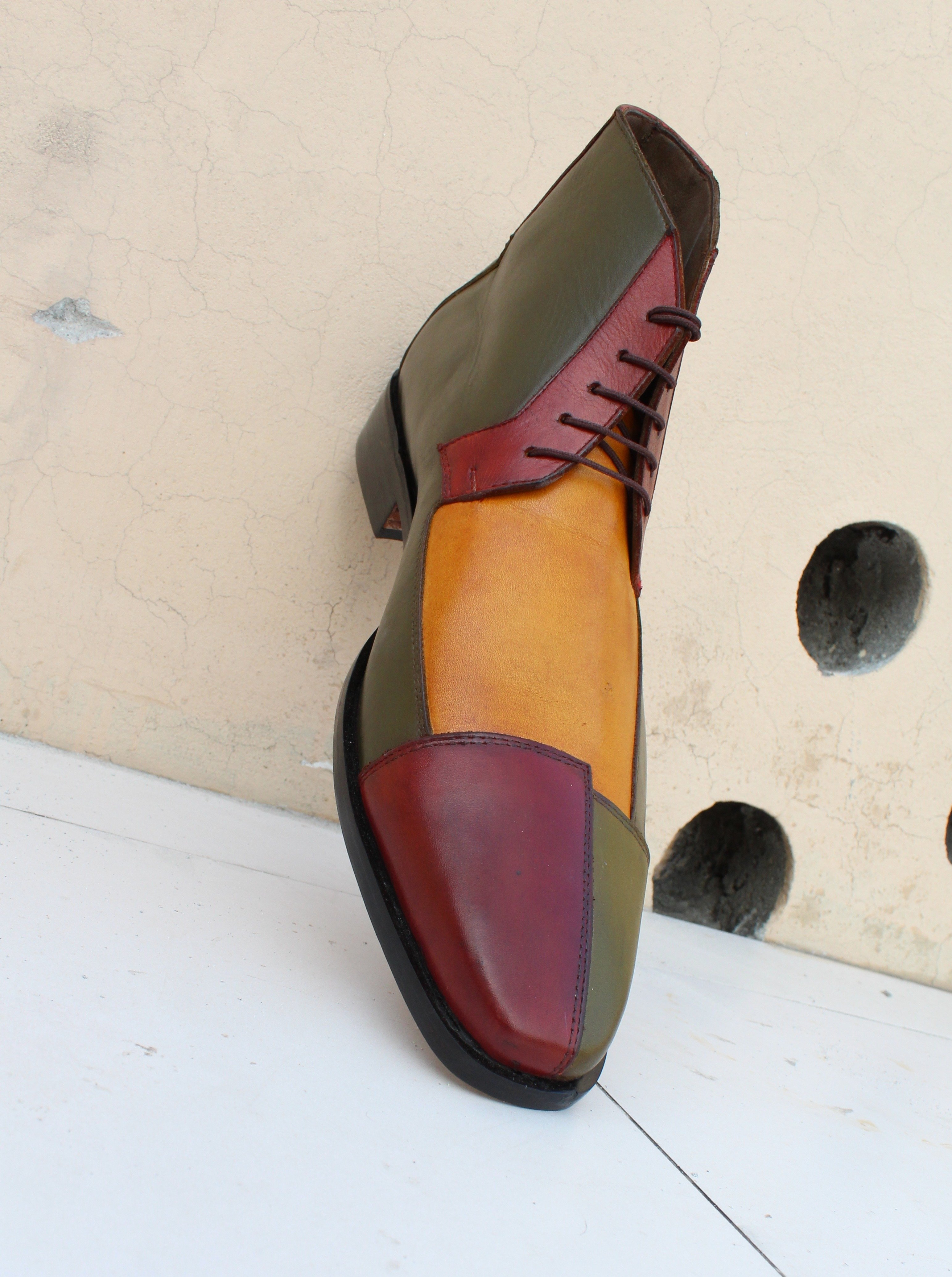Crafted Leather Handmade Men Italian Calf-Skin Leather Green Tri-Tone Chukka Boots