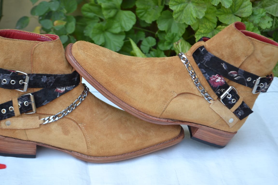 Crafted Leather Handmade Tan Suede Leather Chain Buckle Strap Jodhpur Dress Boot