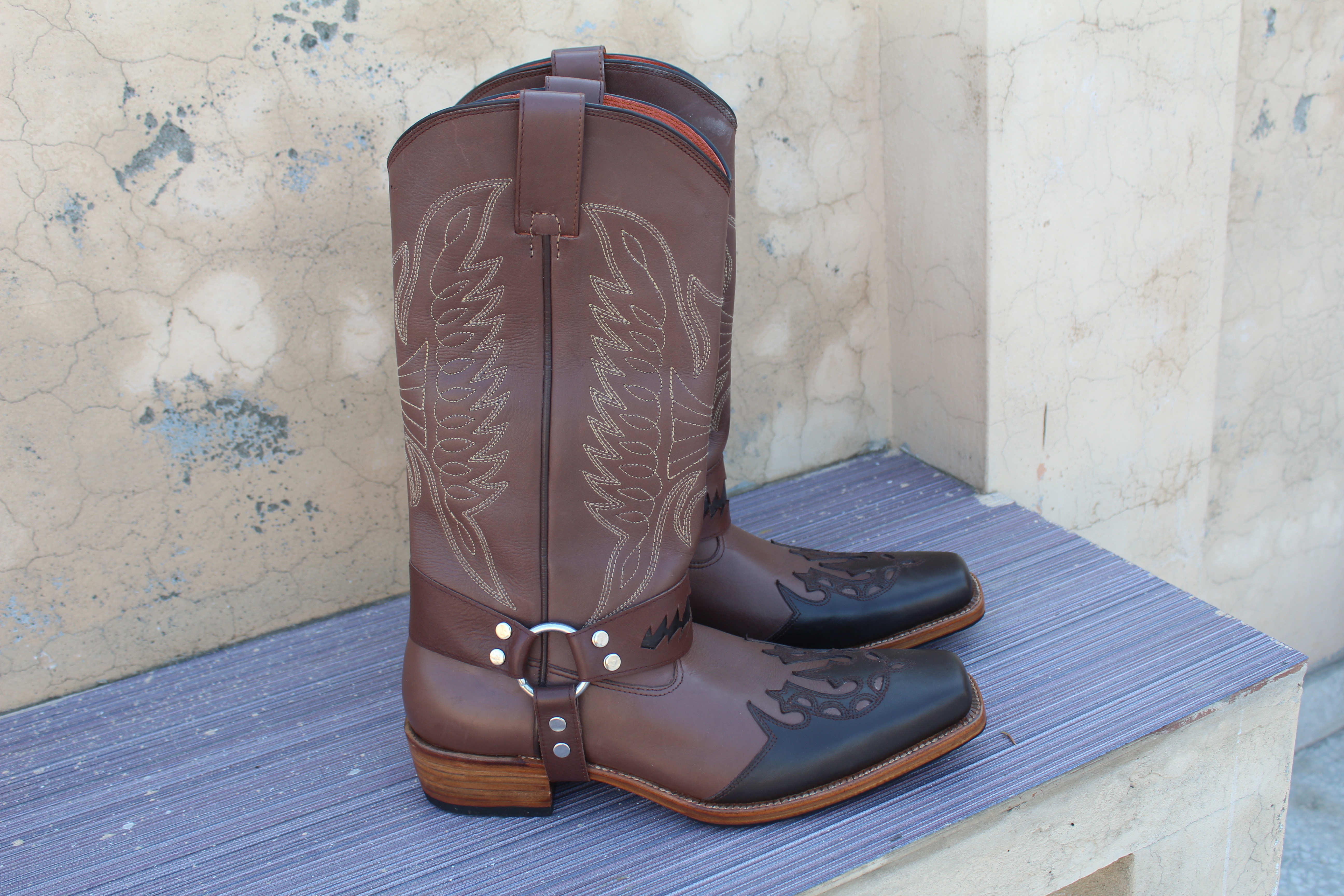 Crafted Leather New Handmade Men's Buckle Caved Cowboy Boots