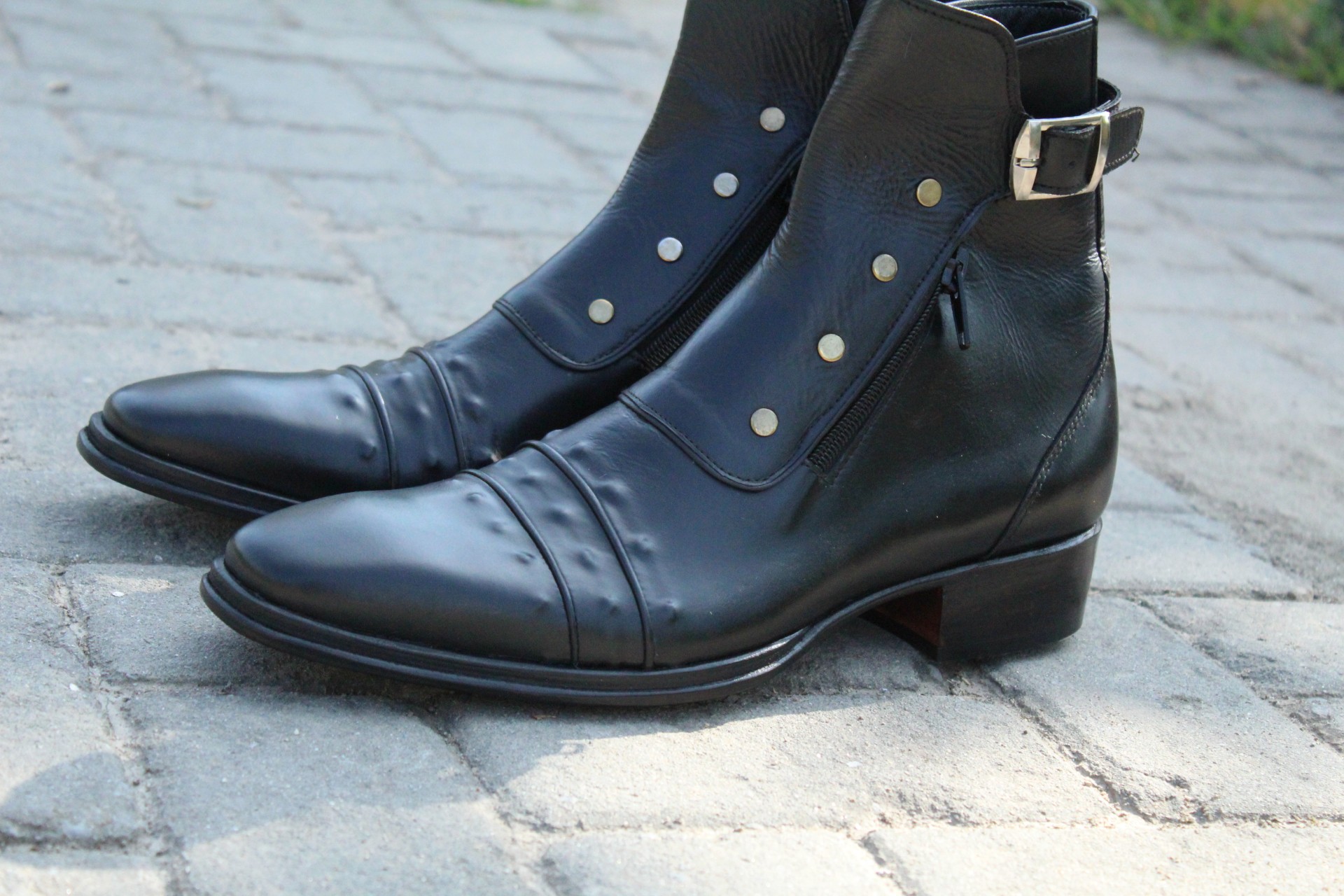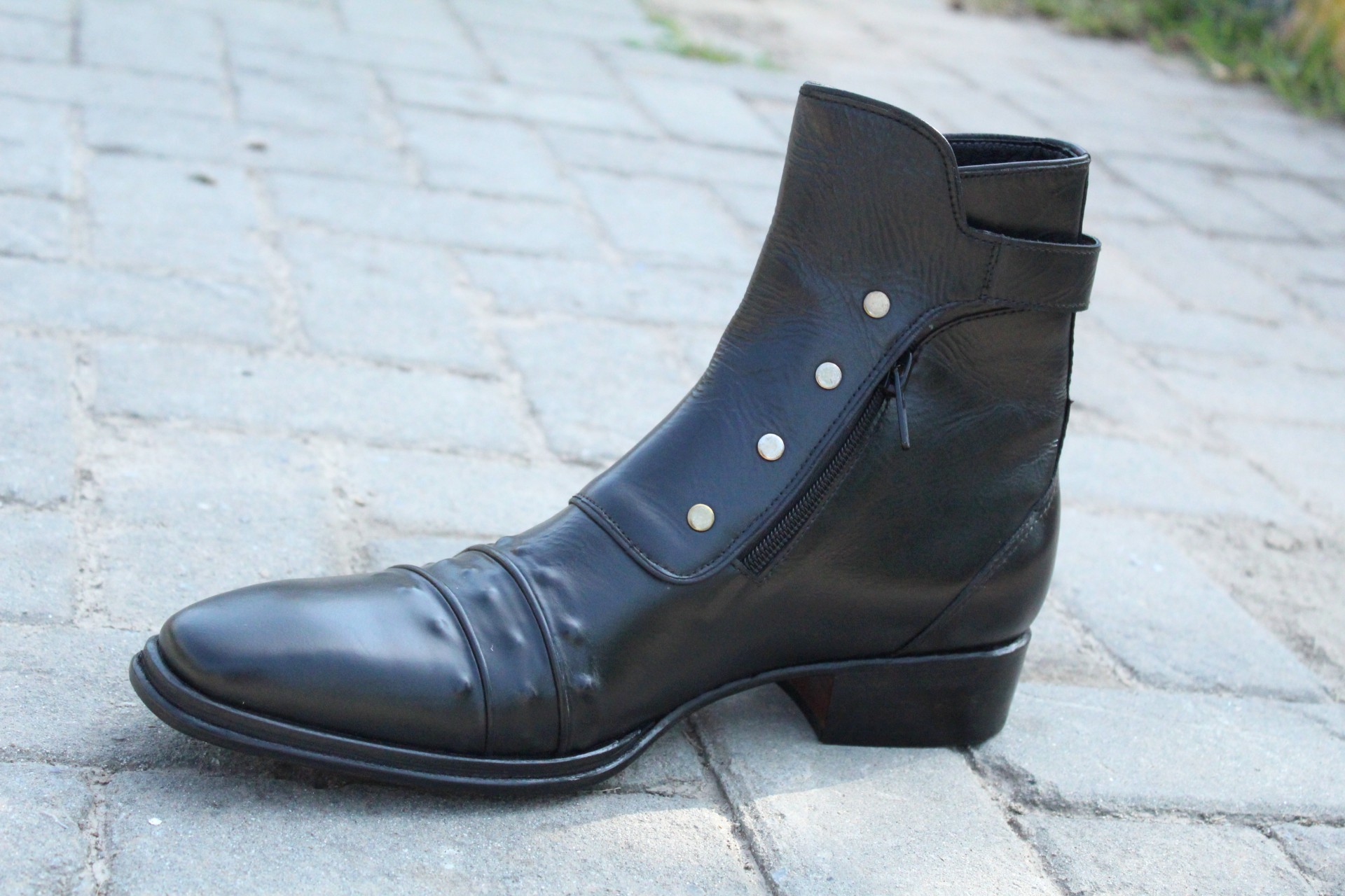 Crafted Leather Custom Made Jo Ghost Italian Black Jodhpur Buckle Boot with Zipper and Button