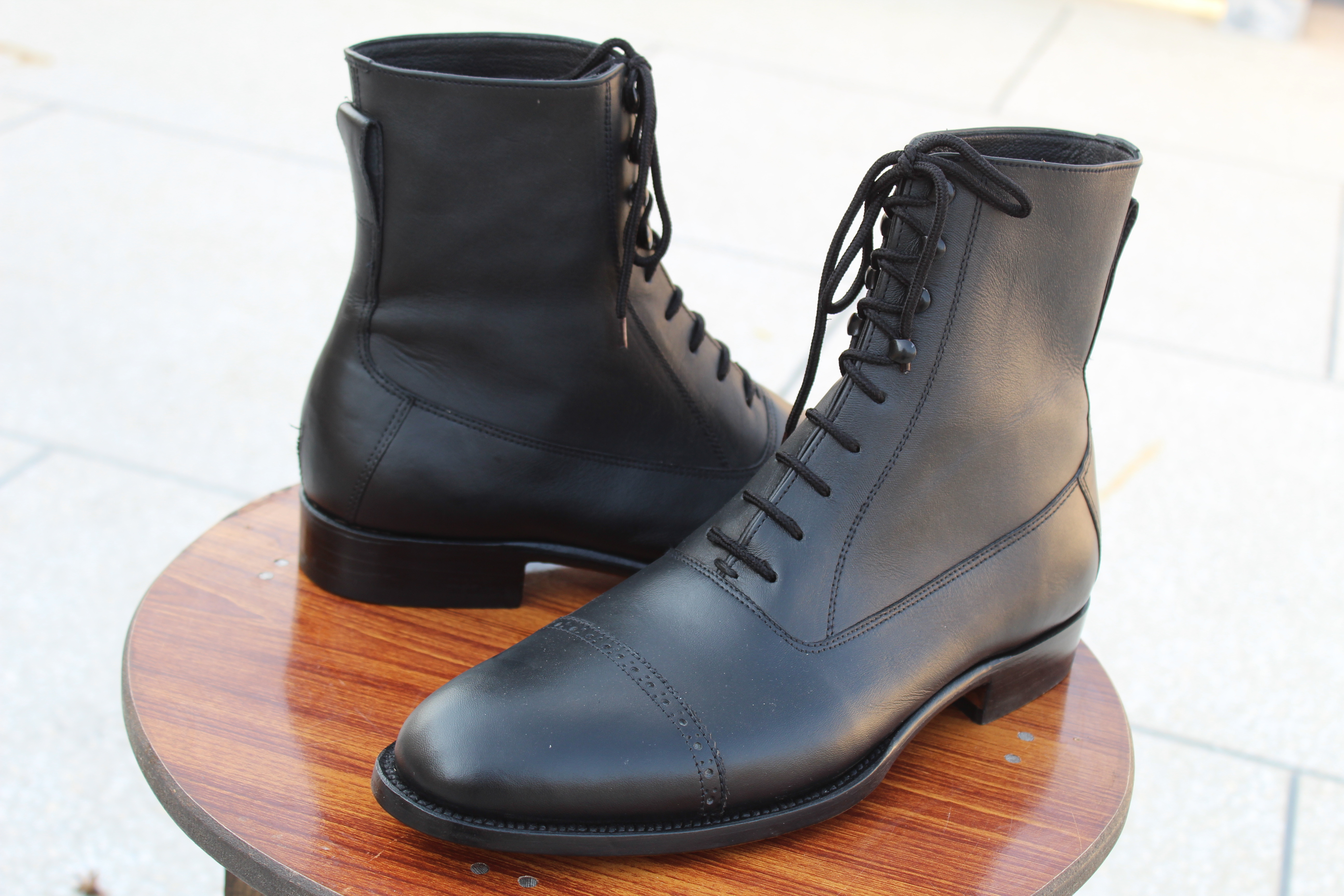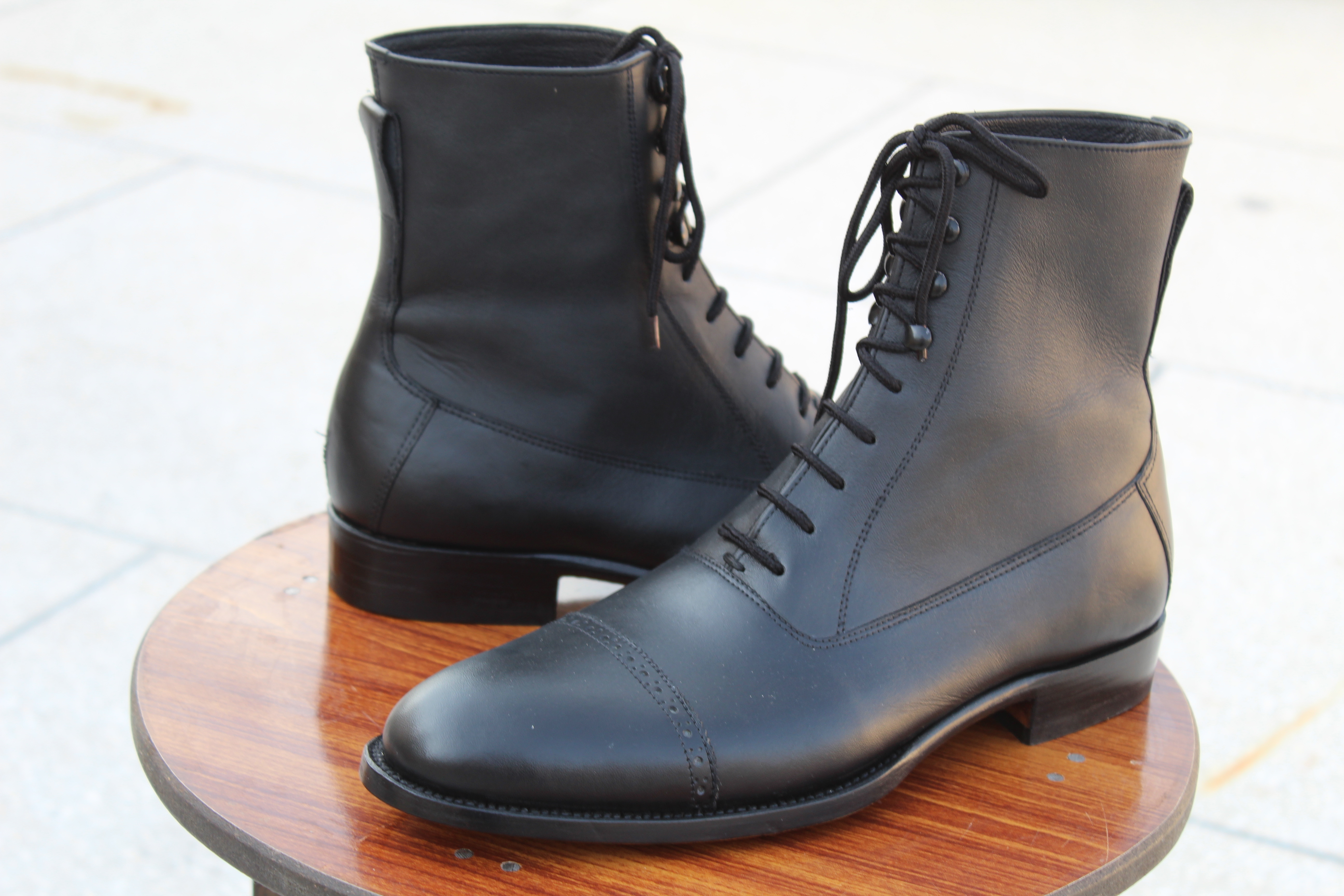 Crafted Leather Handmade Black Calf Leather Ankle High Lace up Dress Boot