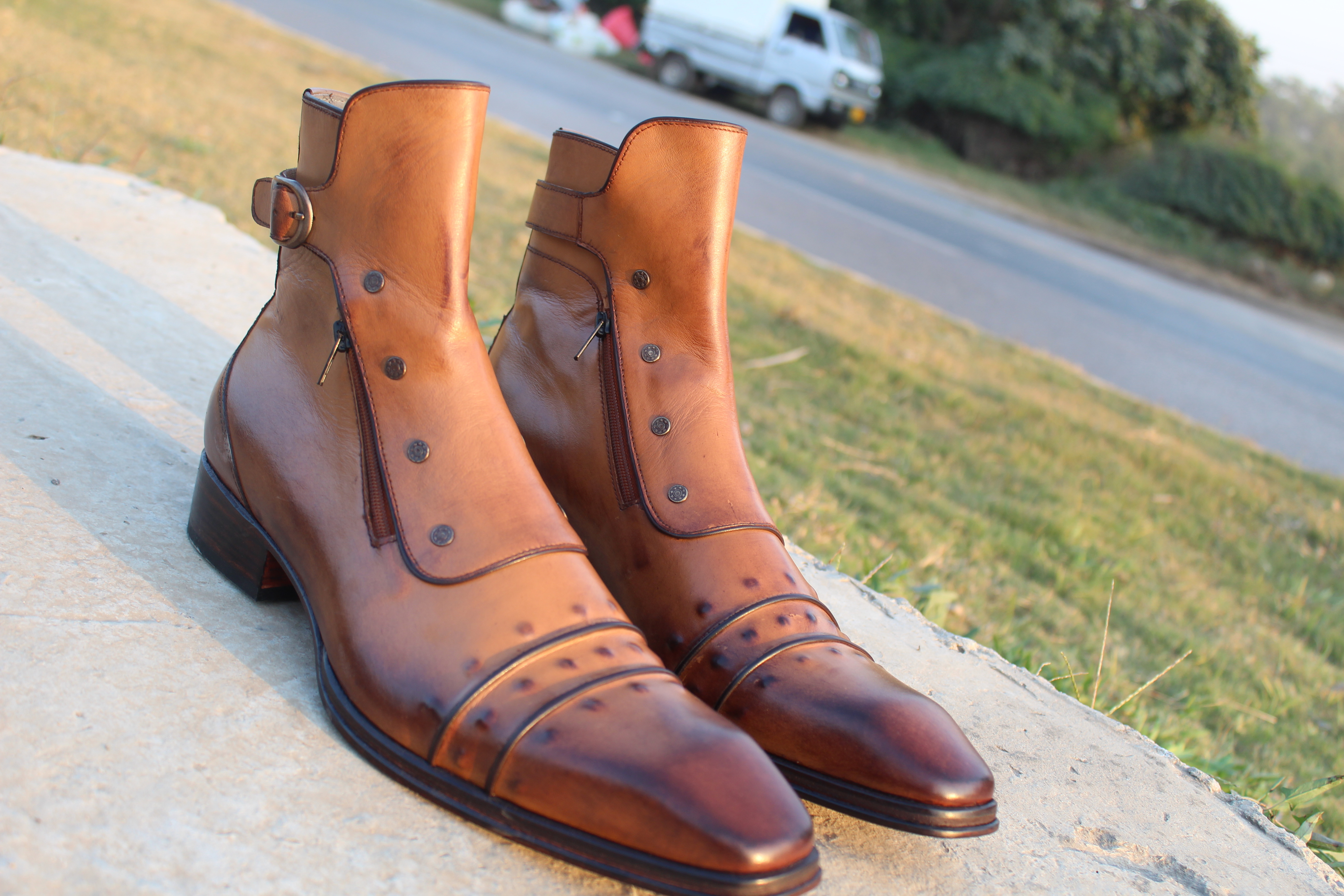 Inner: Soft Leather Sole: Leather Gender : Male Heel: Leather Color: Brown Style: Buckle Strap Side Zipper & Button Lining Soft Calf Leather Lining Totally Hand stitched Manufacturing time 7-10 business days If you can’t find your Size/Color just send us message we will make for you.