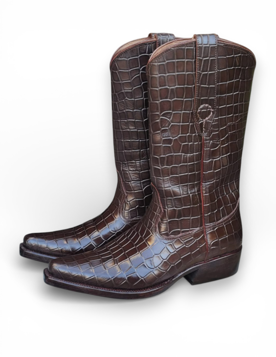 Crafted Leather Handmade Men's Brown Crocodile Leather Pointed Toe Cowboy Boot