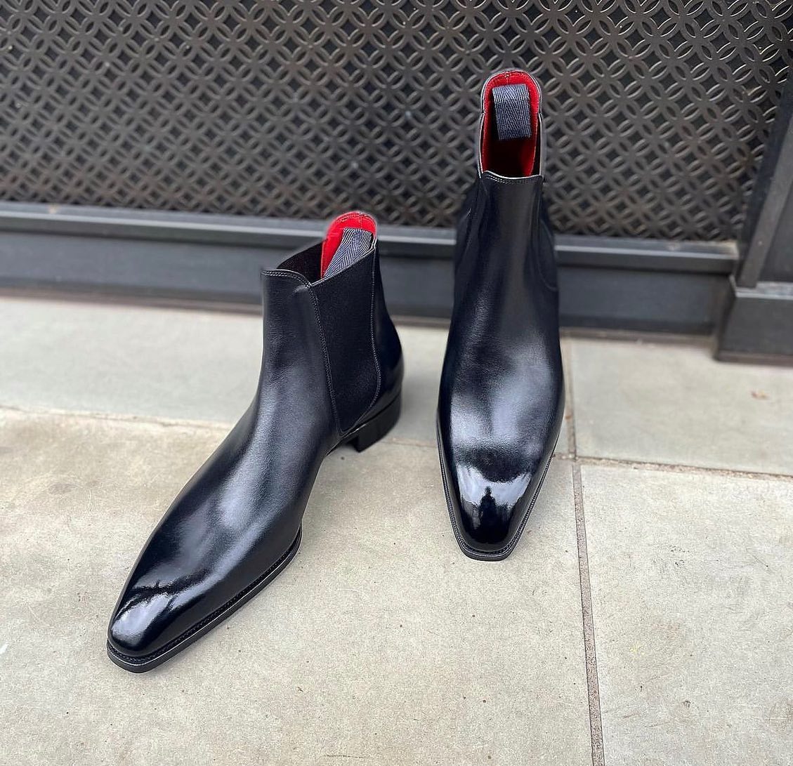 Inner: Soft Leather Sole: Leather Gender : Male Heel: Leather Color: Black Style: Chelsea Boot Lining Soft Calf Leather Lining Totally Hand stitched Manufacturing time 7-10 business days If you can’t find your Size/Colorjust send us message we will make for you.