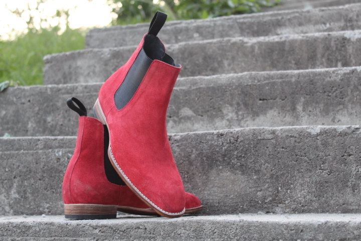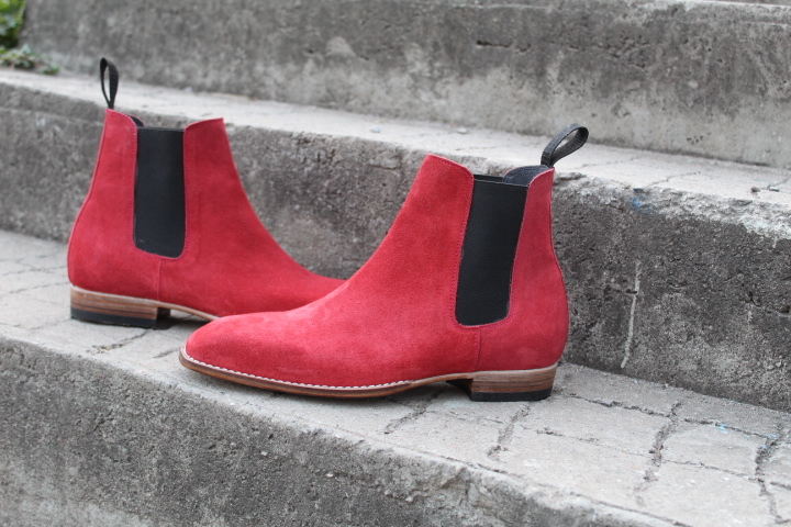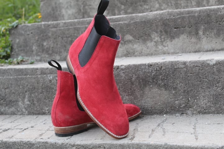 Crafted Leather Classic Men Handmade Red Suede Leather Chelsea Boot