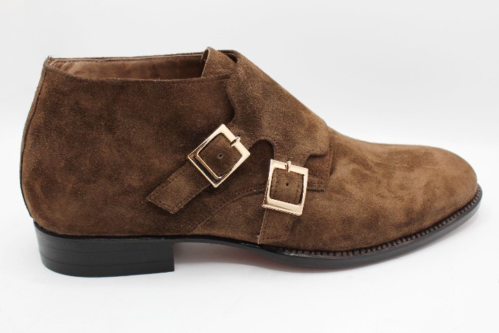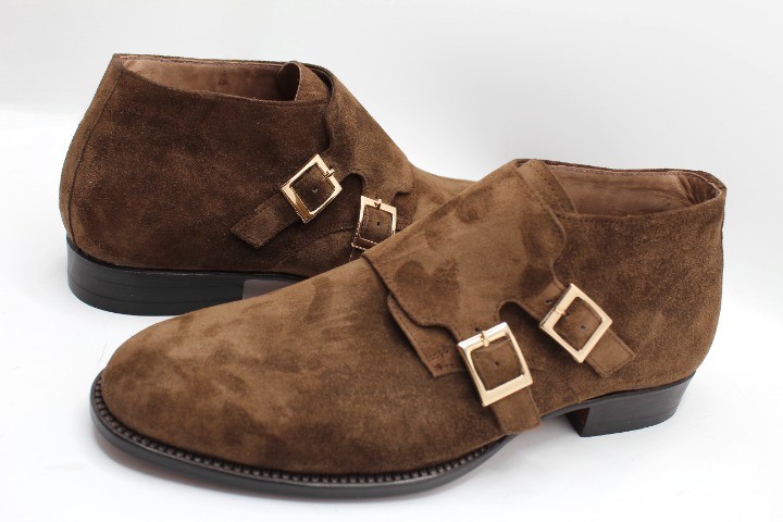 Crafted Leather Handmade Dark Brown Suede Leather Double Buckle Chukka Boot