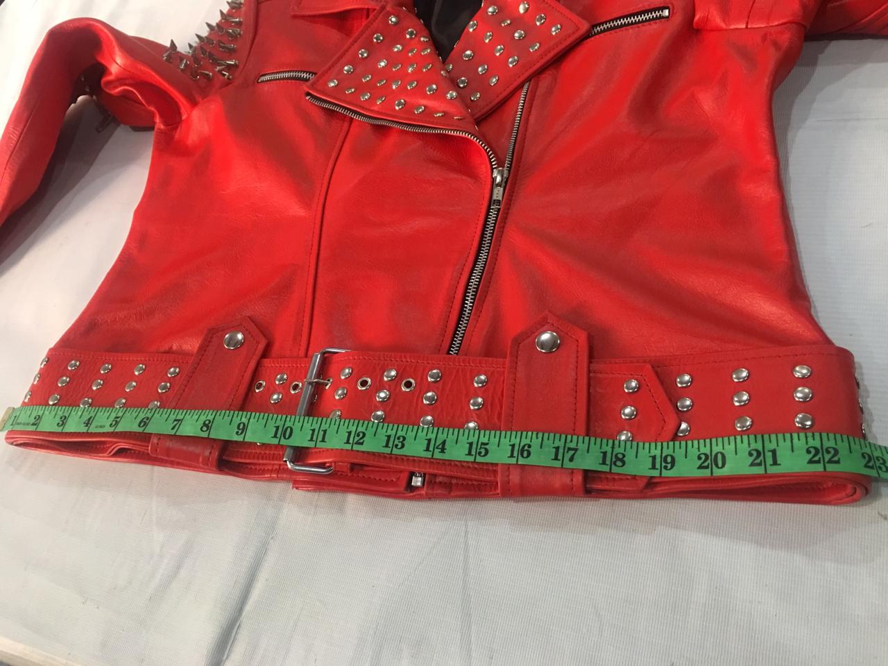 Crafted Leather Handmade Red Punk Biker Casual Leather Studded Jackets For Men