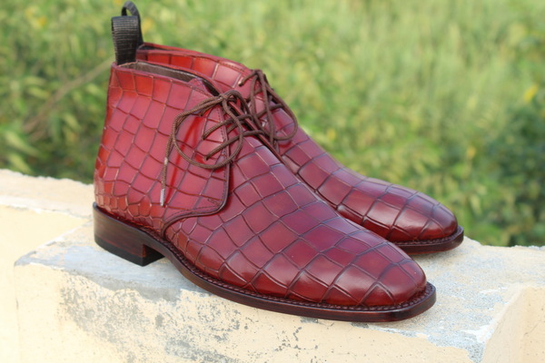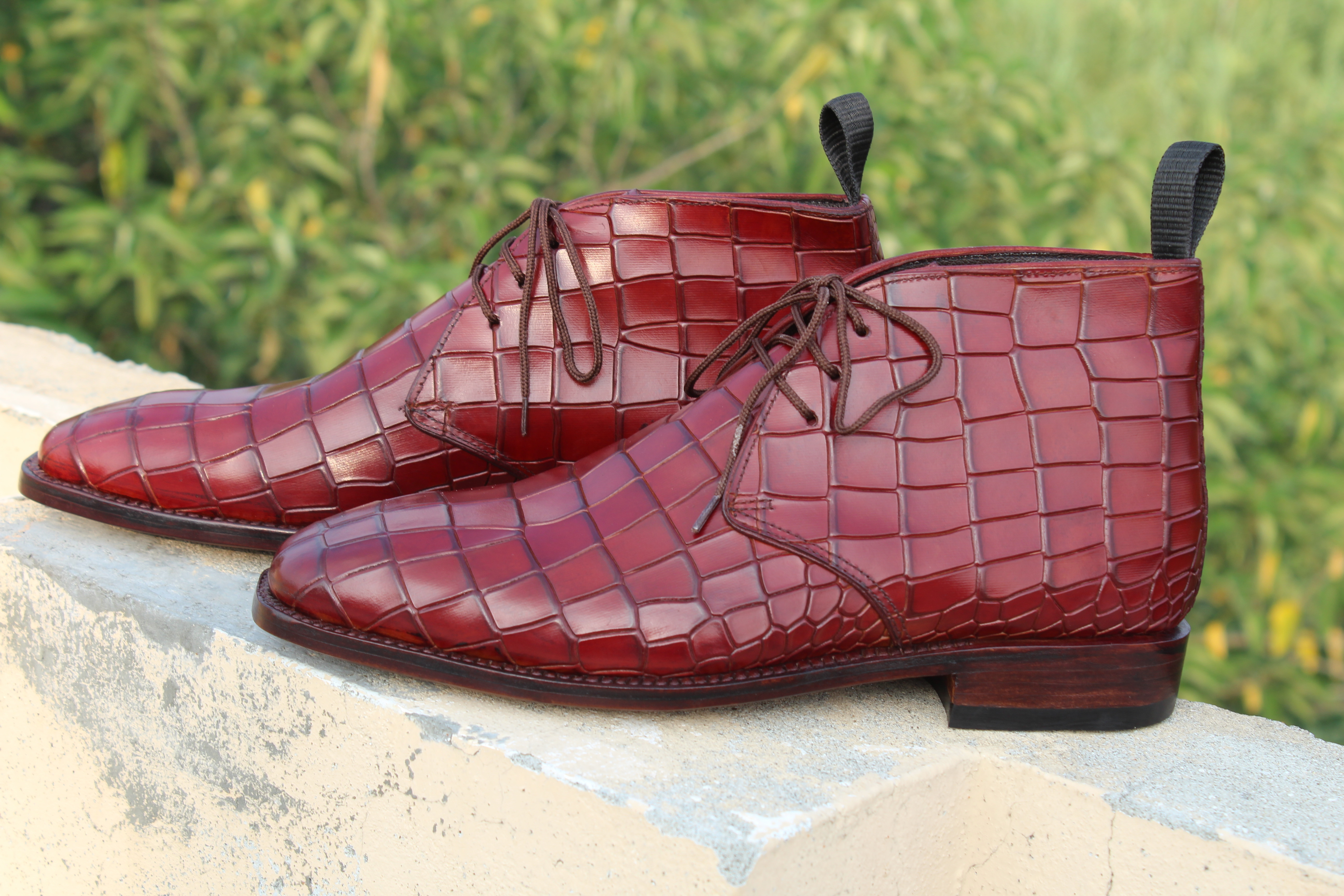 Crafted Leather Burgundy Crocodile Chukka Lace up Alligator Boot
