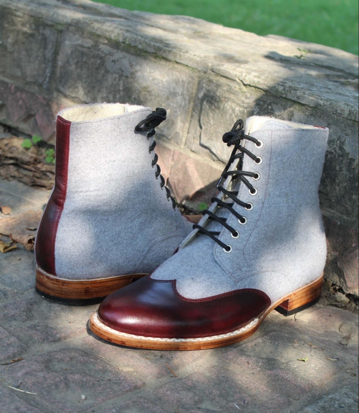 Crafted Leather Handmade Two Tones Ankle High Lace up Dress Boots For Men