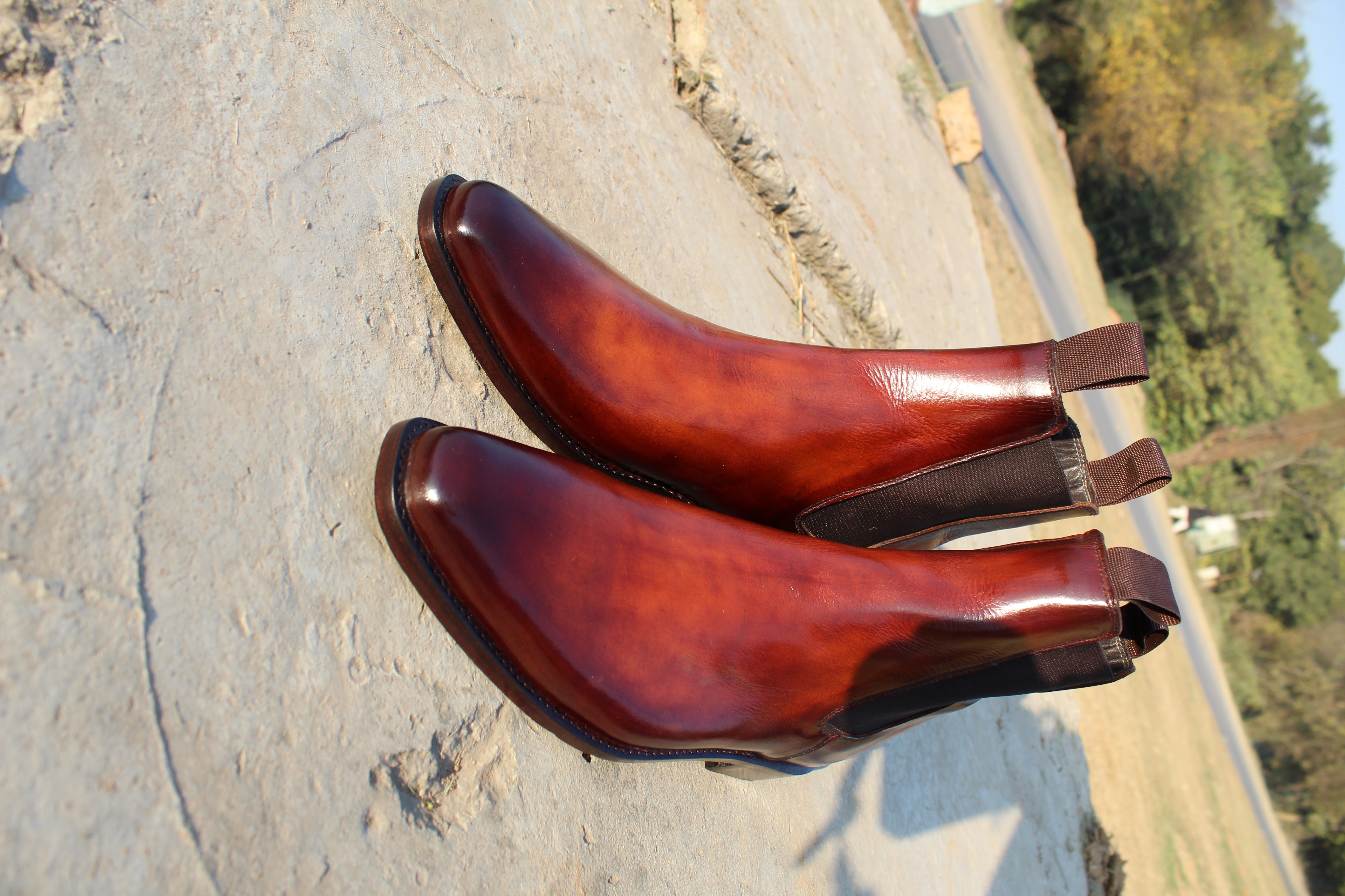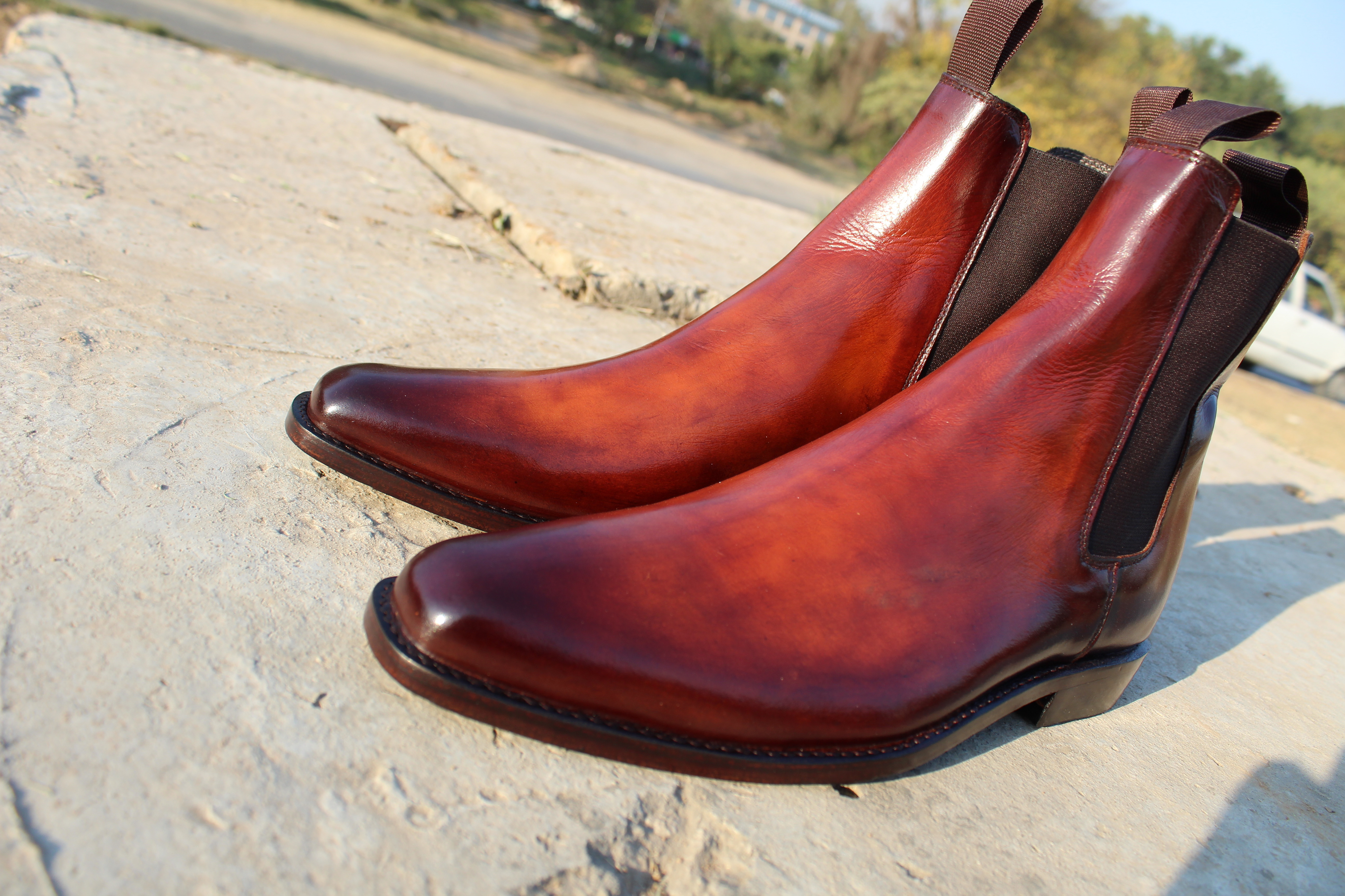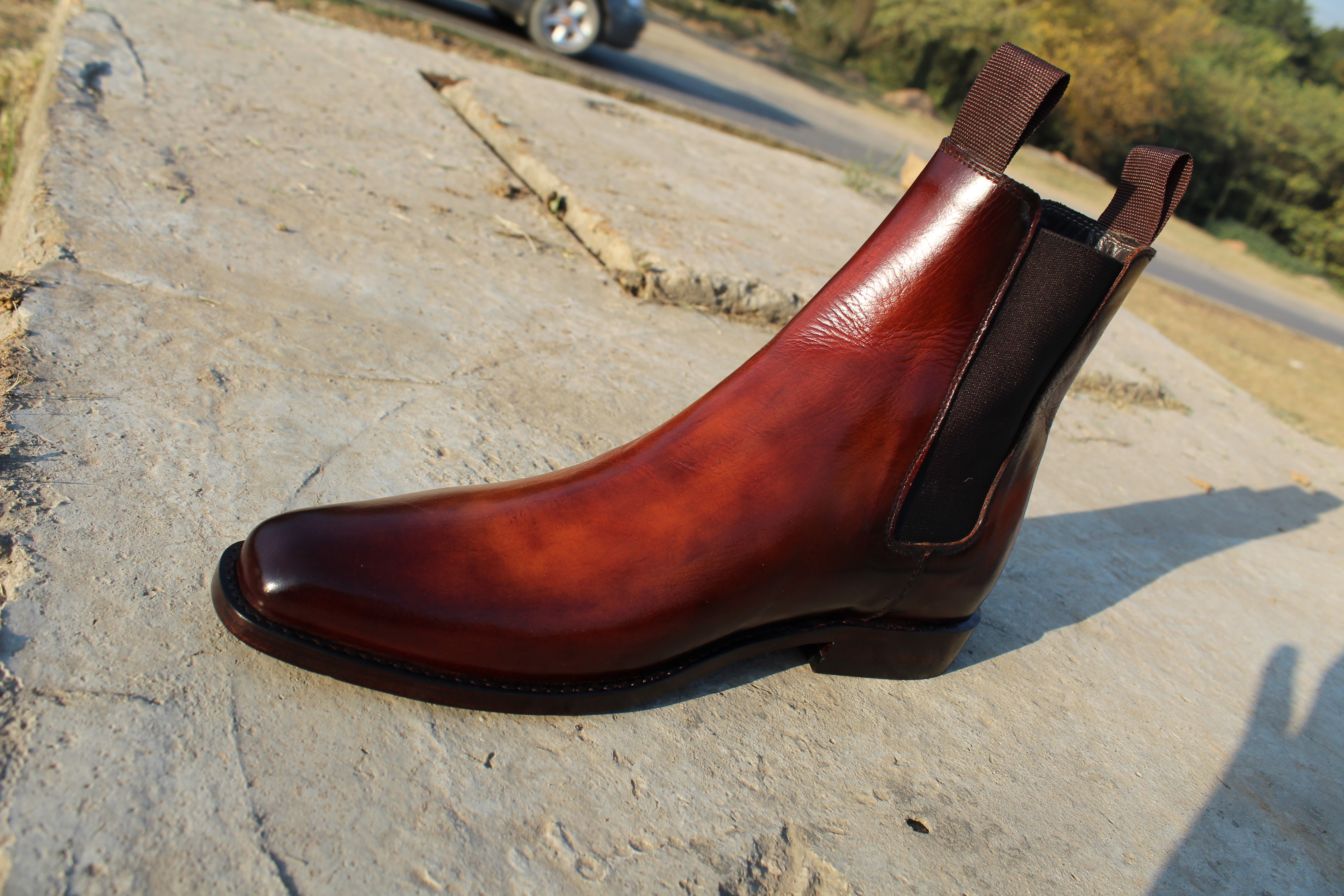 Inner: Soft Leather Sole: Leather Gender : Male Heel: Leather Color: Burnished Brown Style: Chelsea Boot Lining Soft Calf Leather Lining Totally Hand stitched Manufacturing time 7-10 business days If you can’t find your Size/Colorjust send us message we will make for you.