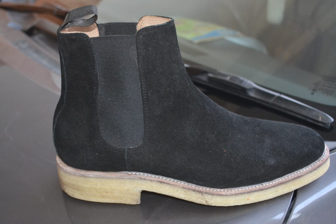 Handmade Men Black Suede Leather Chelsea Boot Rugged Crepe Sole