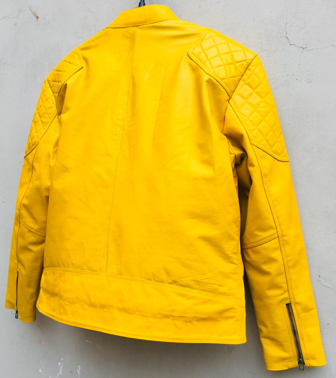 Crafted Leather Men's Yellow Motorcycle Genuine Lambskin Leather Jacket Slim fit Biker jacket