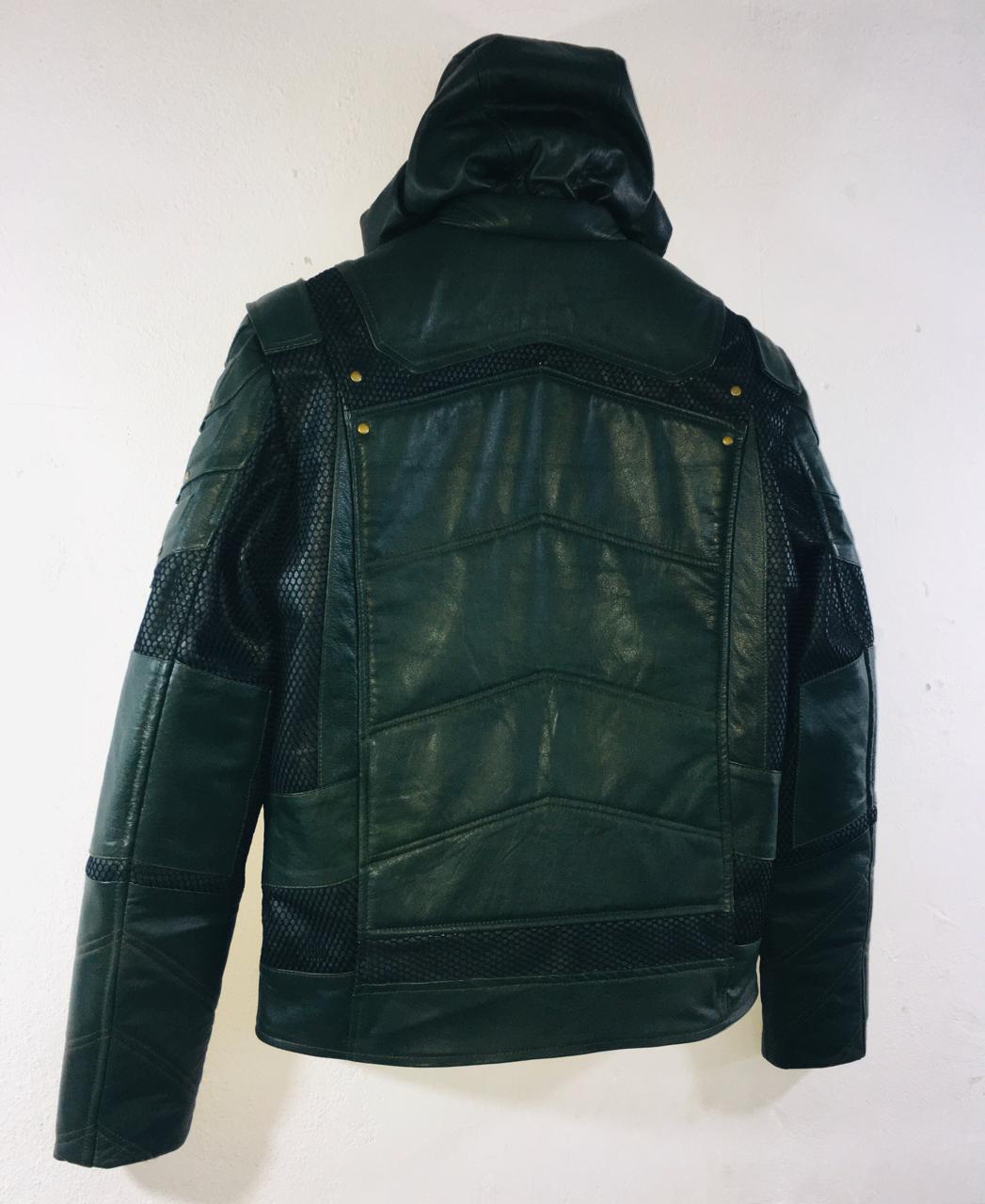 Crafted Leather Handmade Black Hooded Leather Motorcycle Jacket