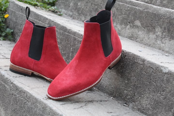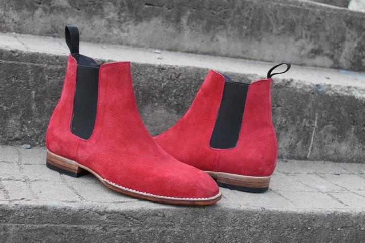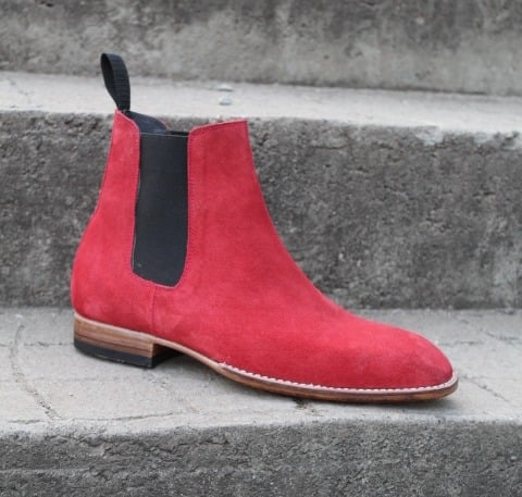 Red Suede Leather Chelsea Boot Handmade