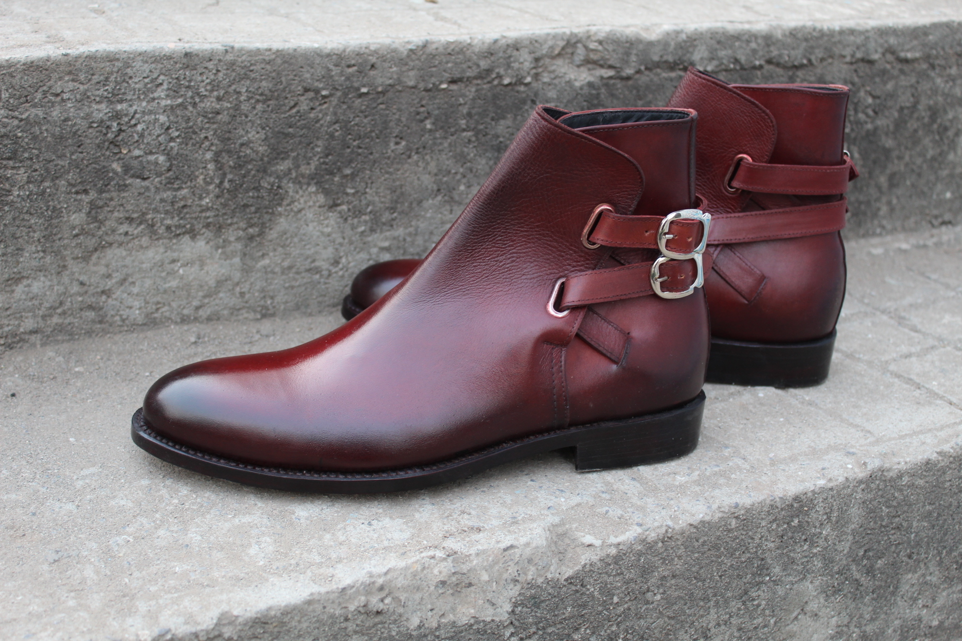 Inner: Soft Leather Sole: Leather Gender : Male Heel: Leather Color: Burgundy Style: Jodhpur Boots Soft Calf Leather Lining Totally Hand stitched Manufacturing time 7-10 business days If you can’t find your Size/Color just send us message we will make for you.