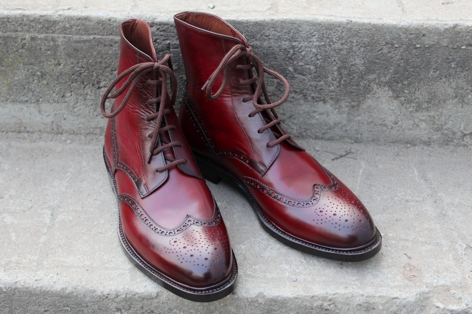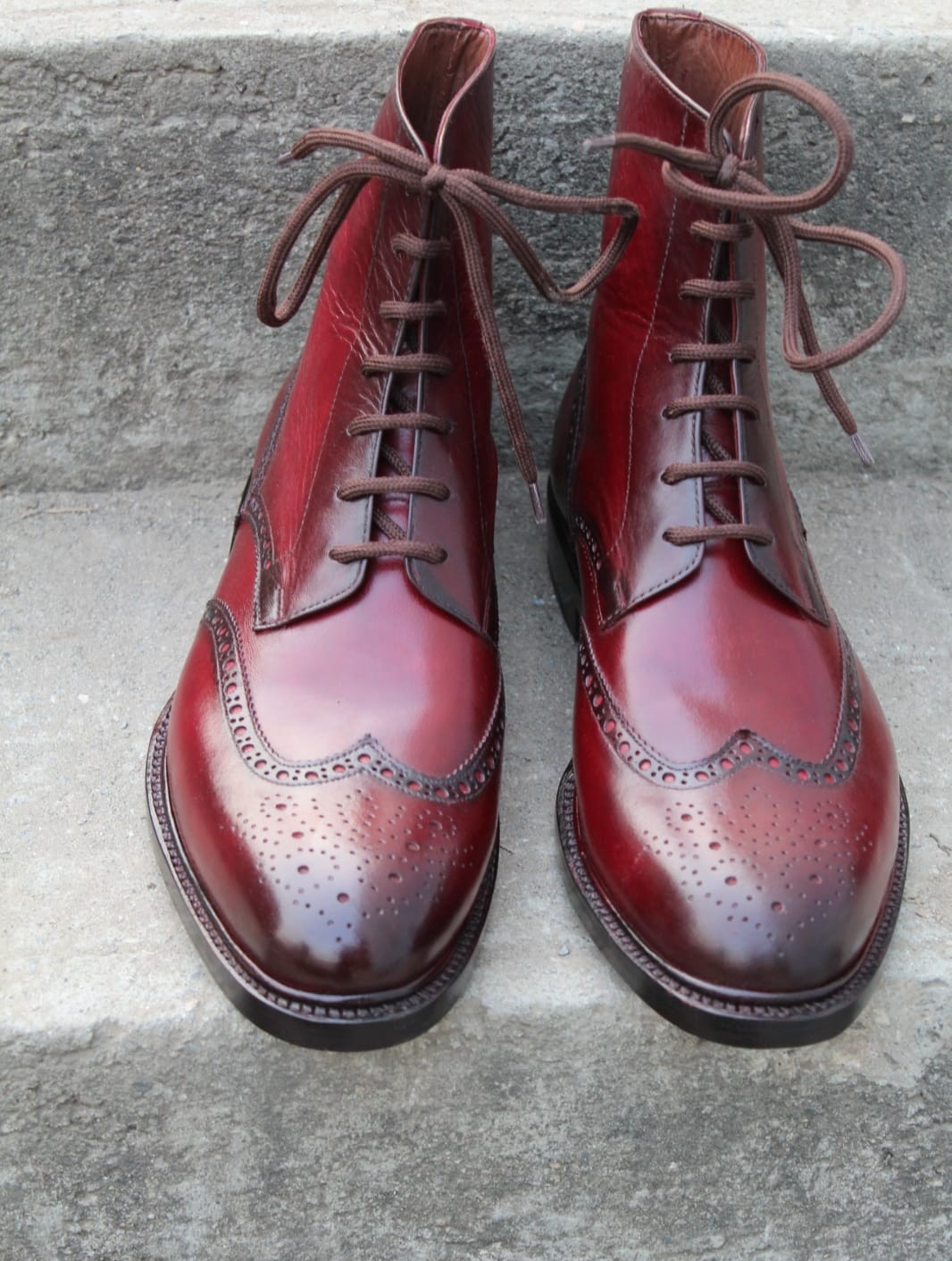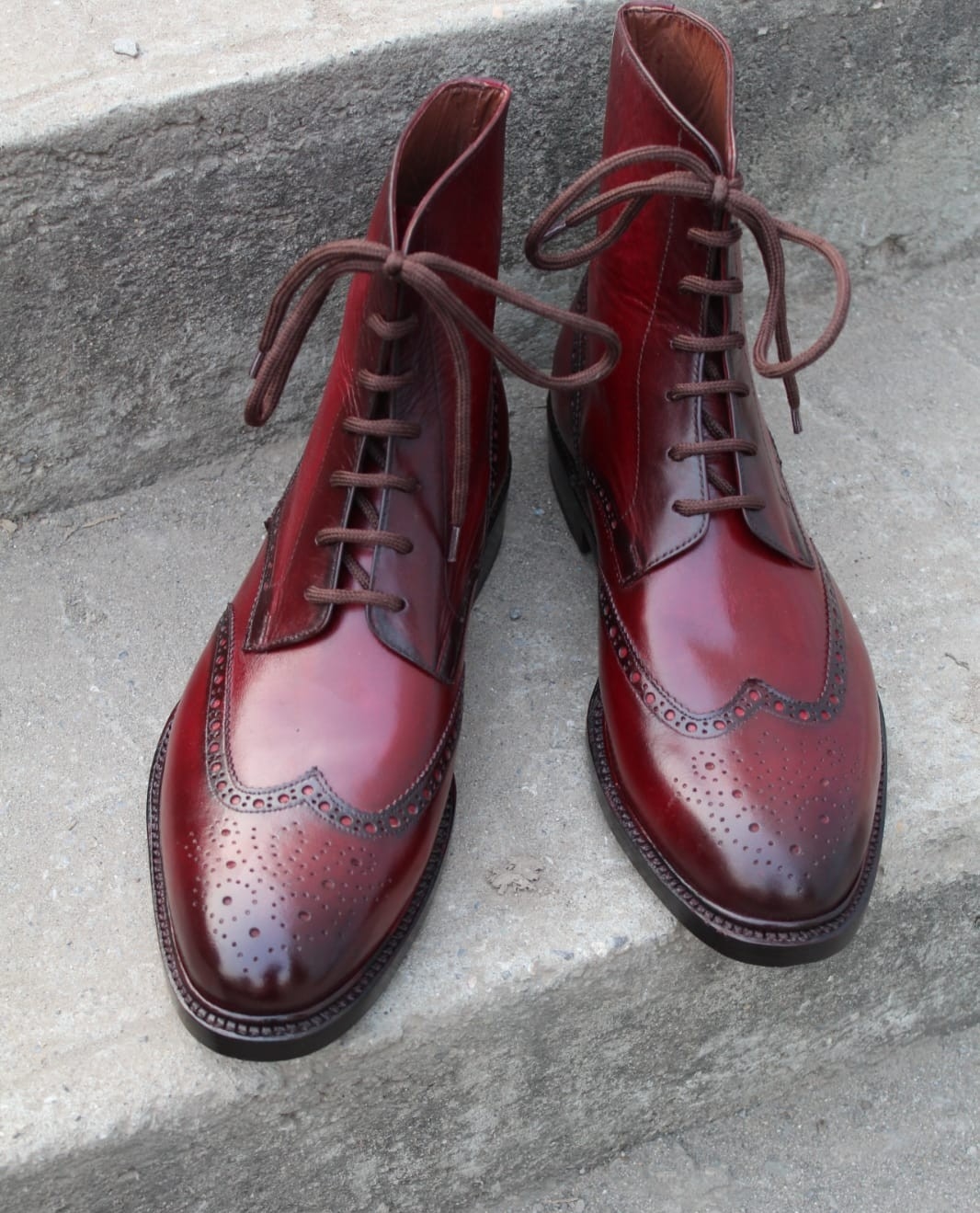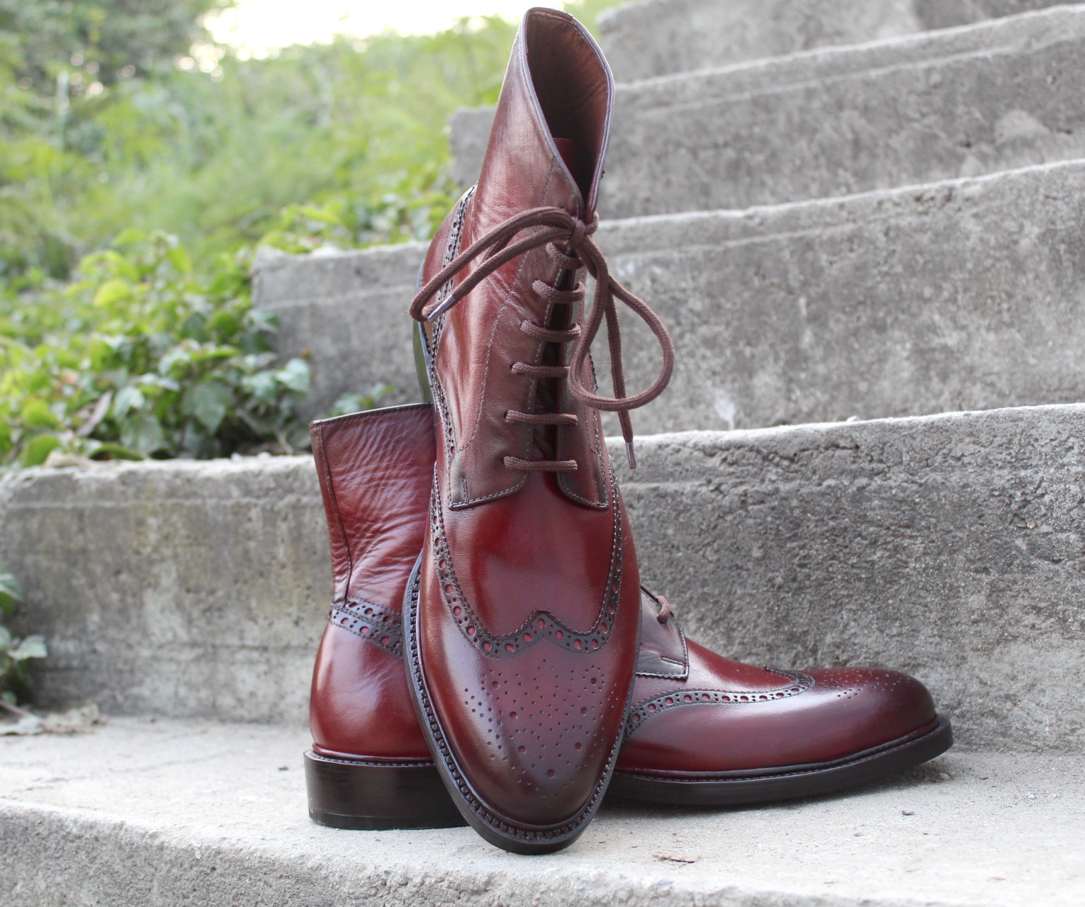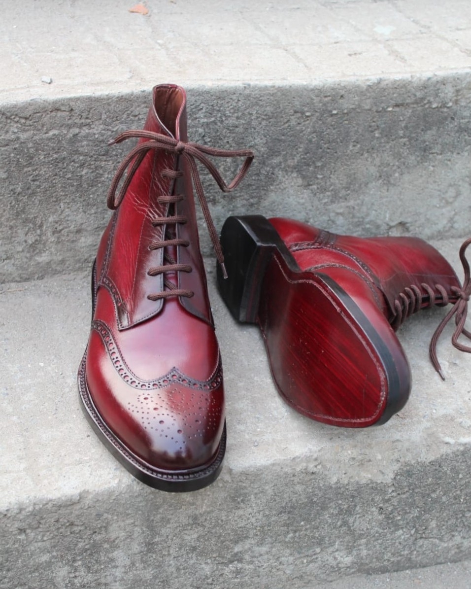 Crafted Leather Handcrafted Men Burgundy Leather Ankle High Wingtip Dress Lace up Boot