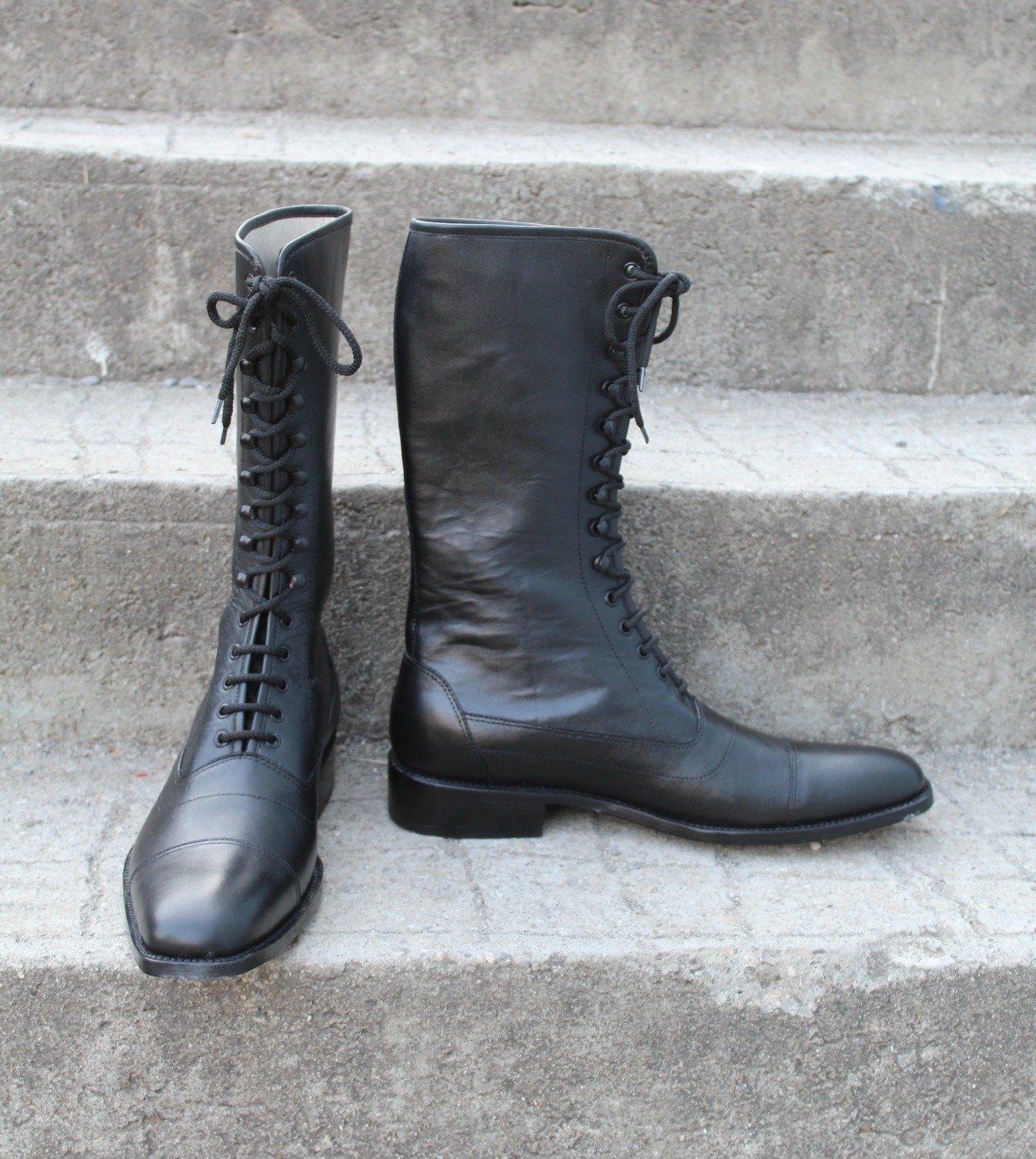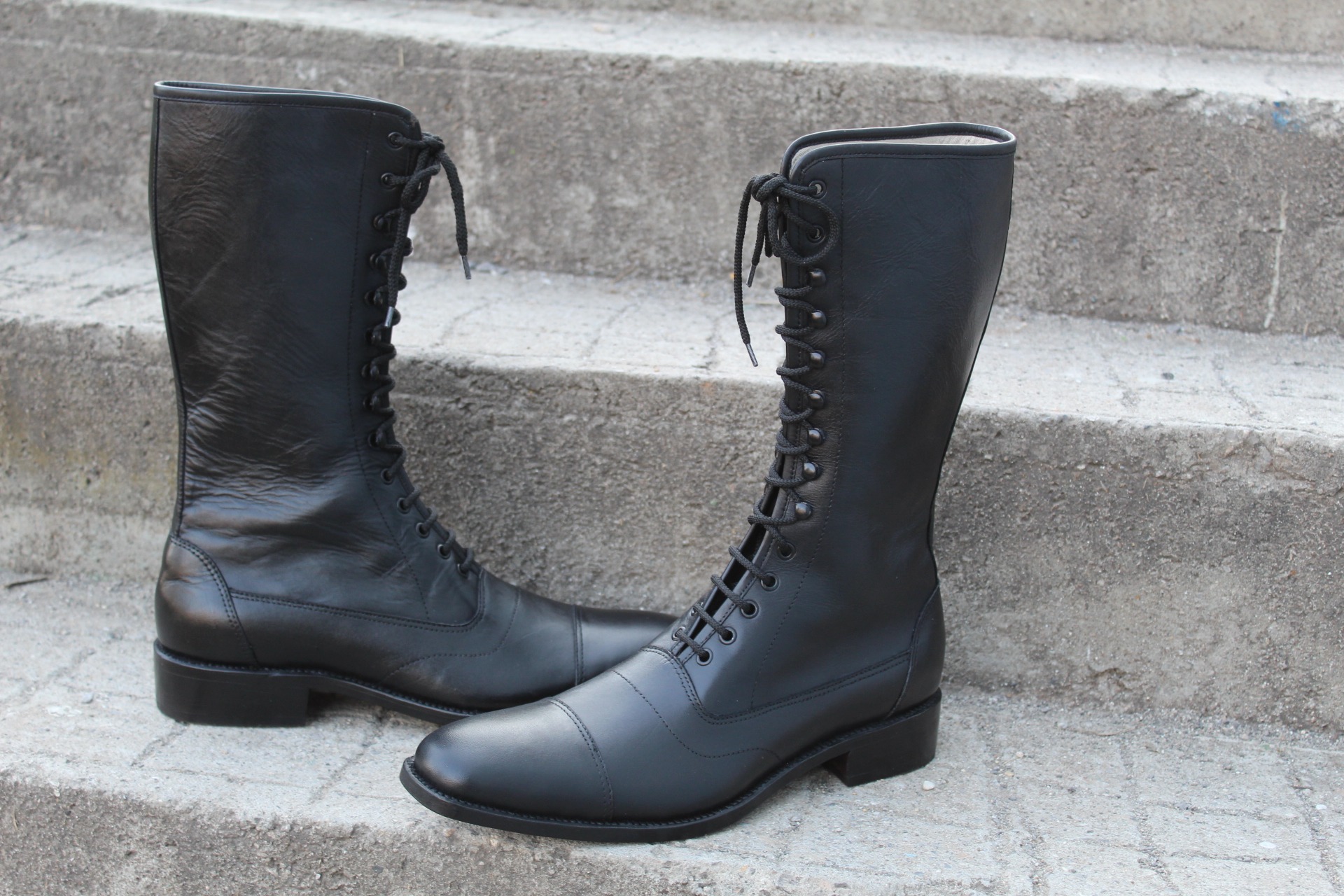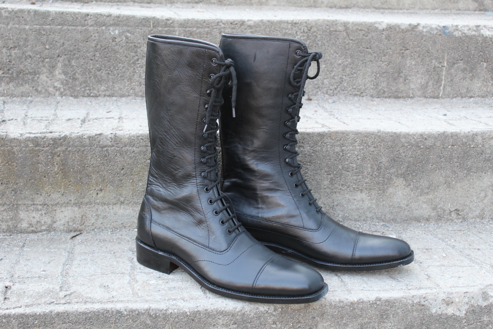 Inner: Soft Leather Sole: Leather Gender : Male Heel: Leather Color: Black Style: Military Boot Lining Soft Calf Leather Lining Totally Hand stitched Manufacturing time 7-10 business days If you can’t find your Size/Colorjust send us message we will make for you.