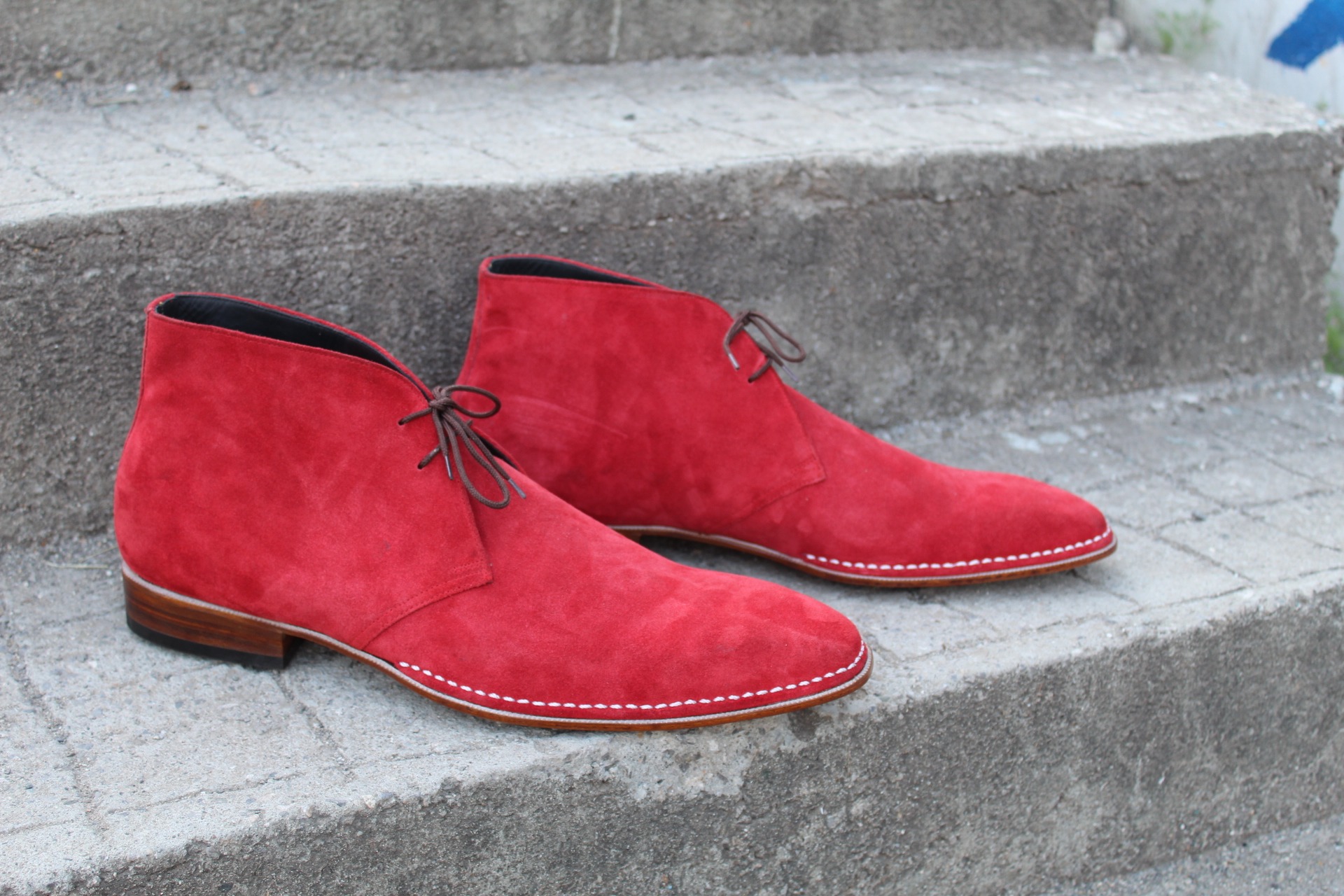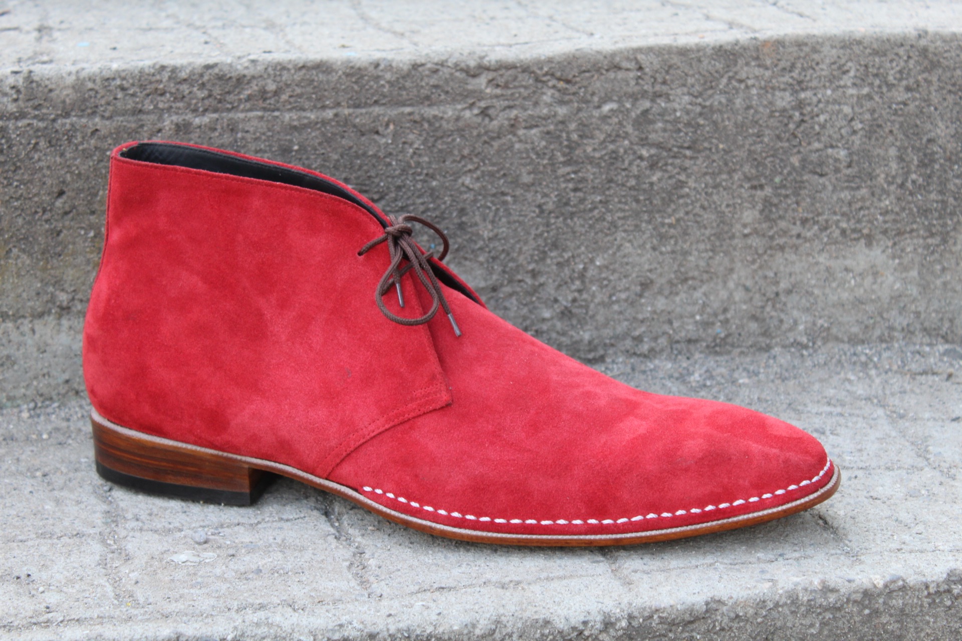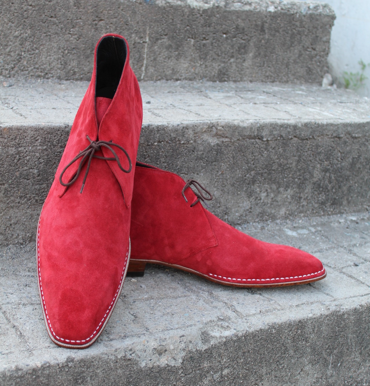 New Handmade Mens Red Suede Leather Chukka Dress Fashion Boot