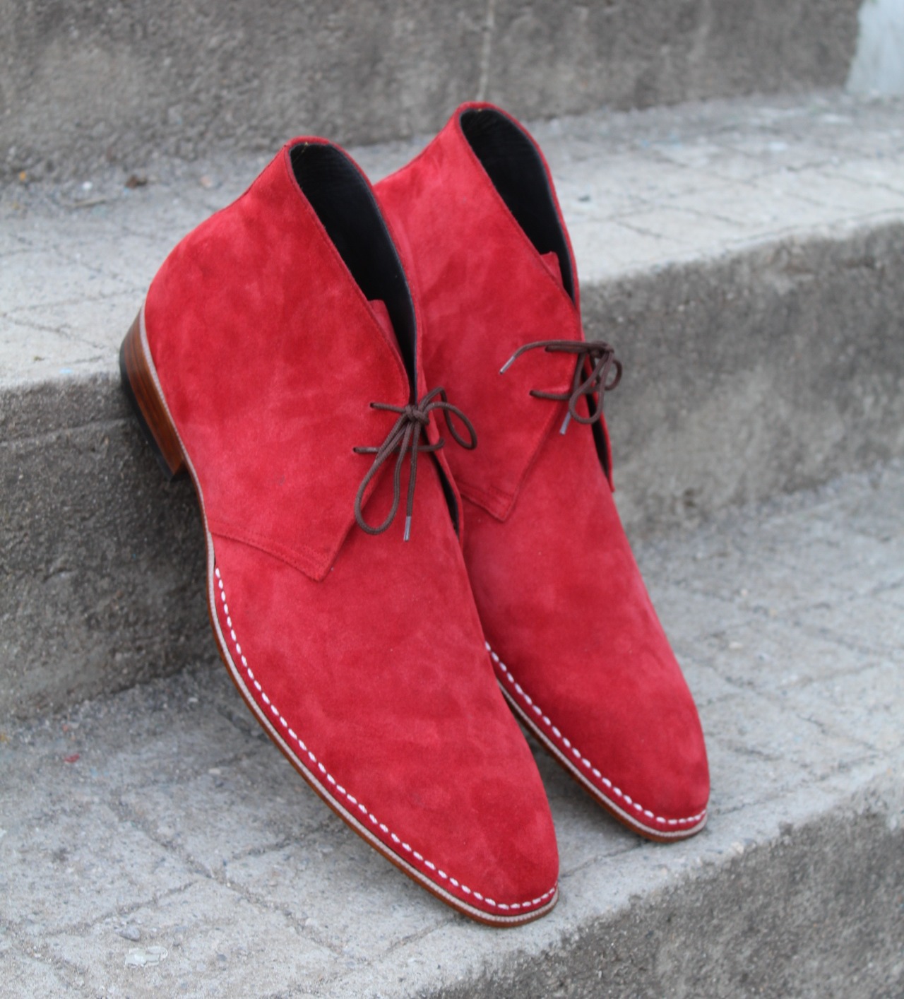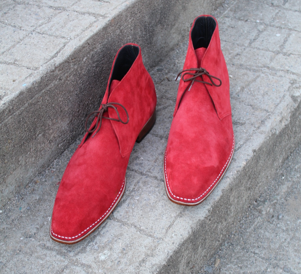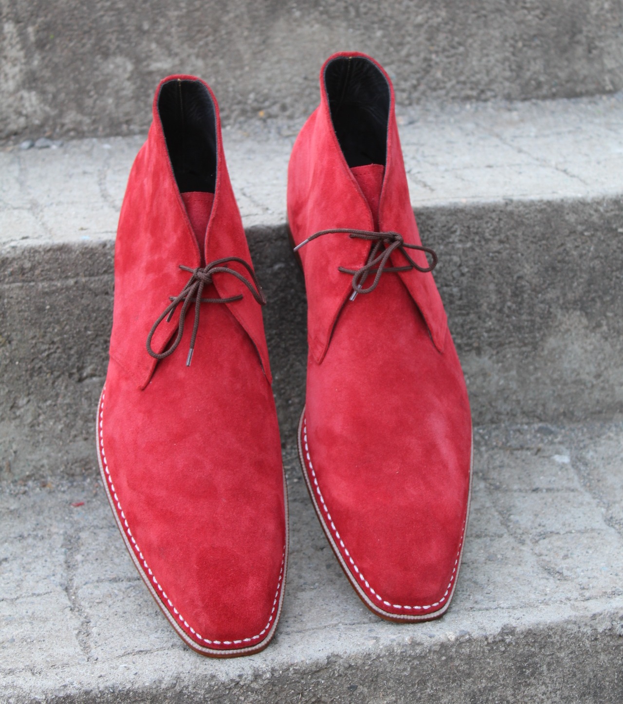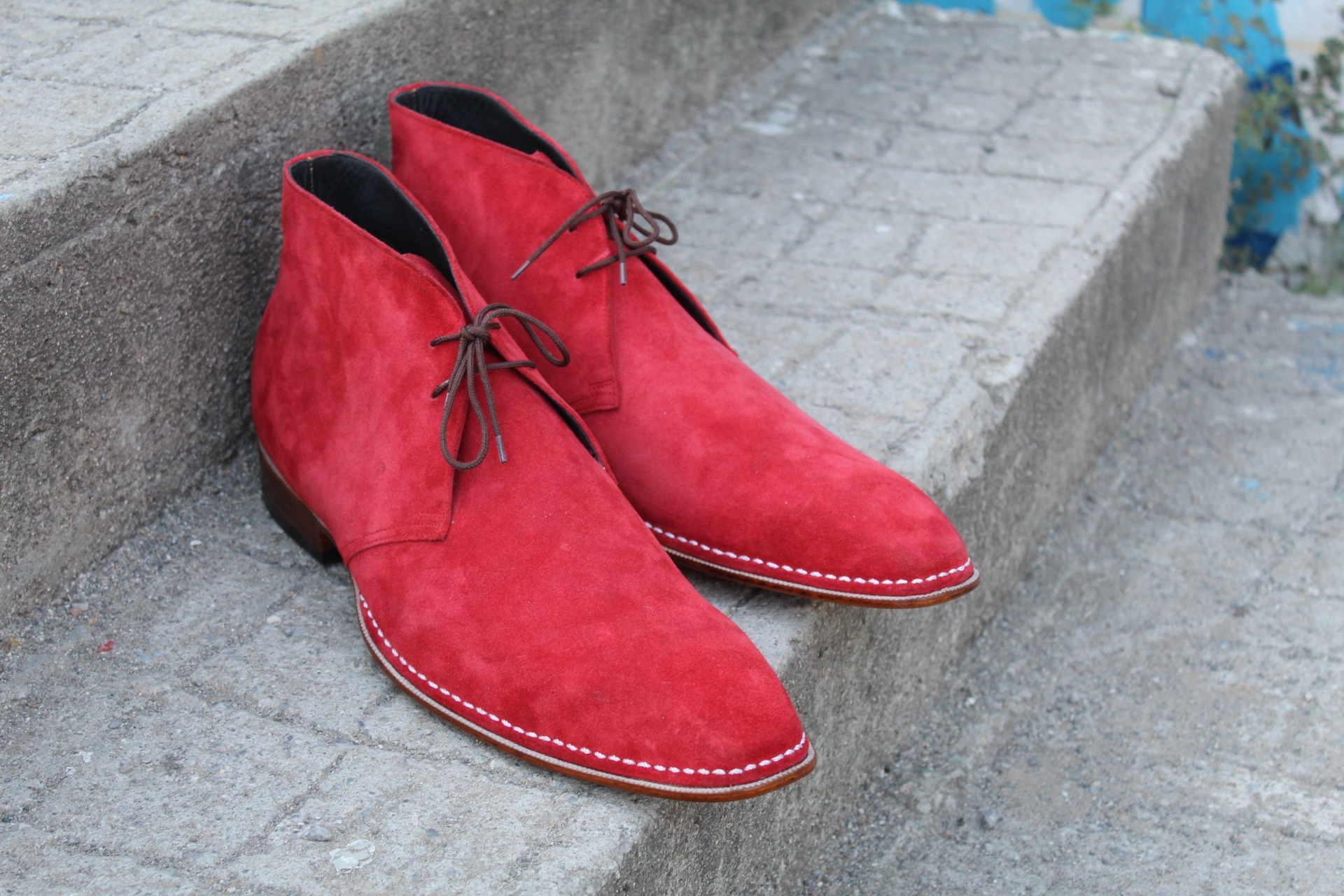 New Handmade Mens Red Suede Leather Chukka Dress Fashion Boot