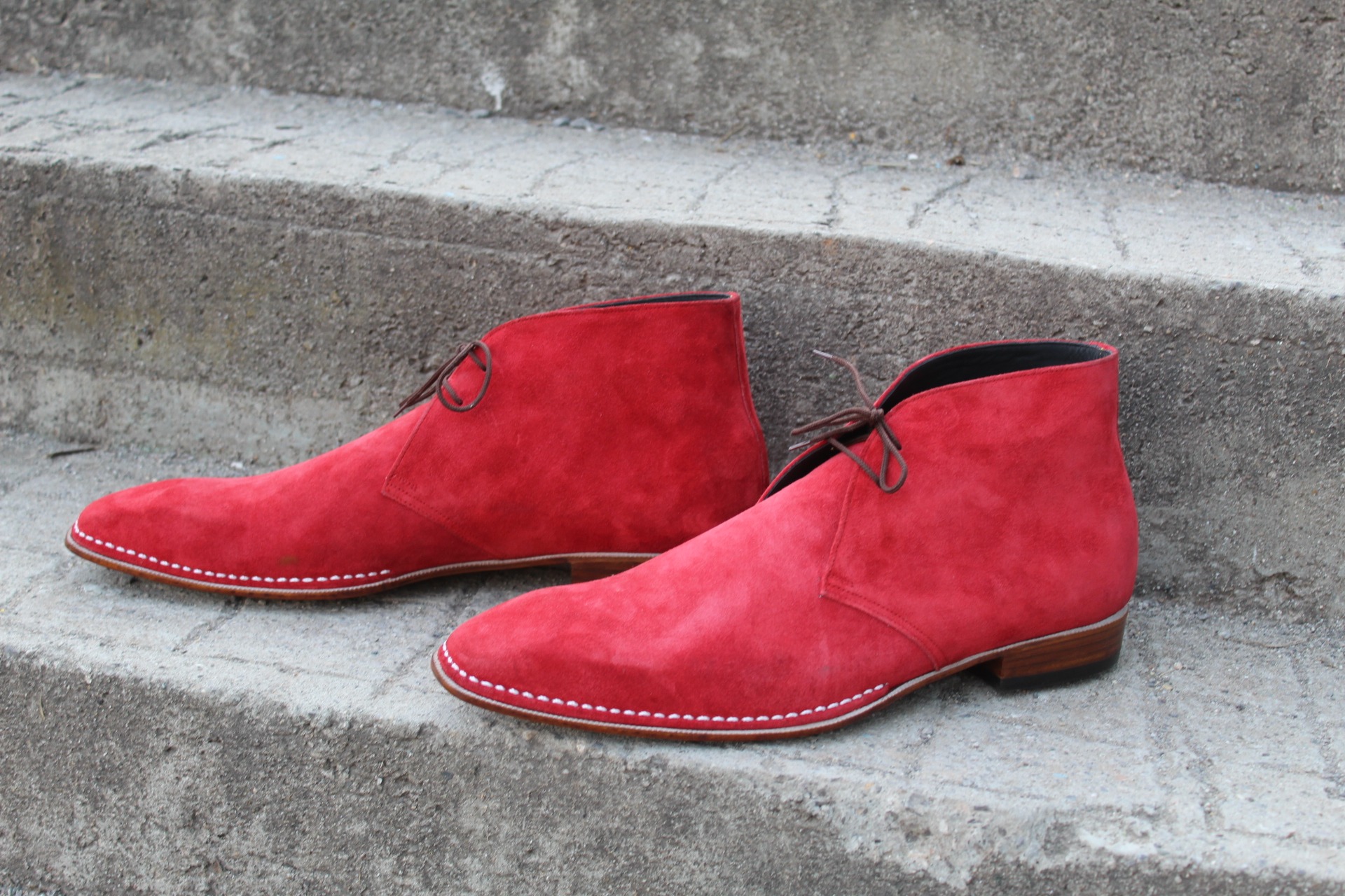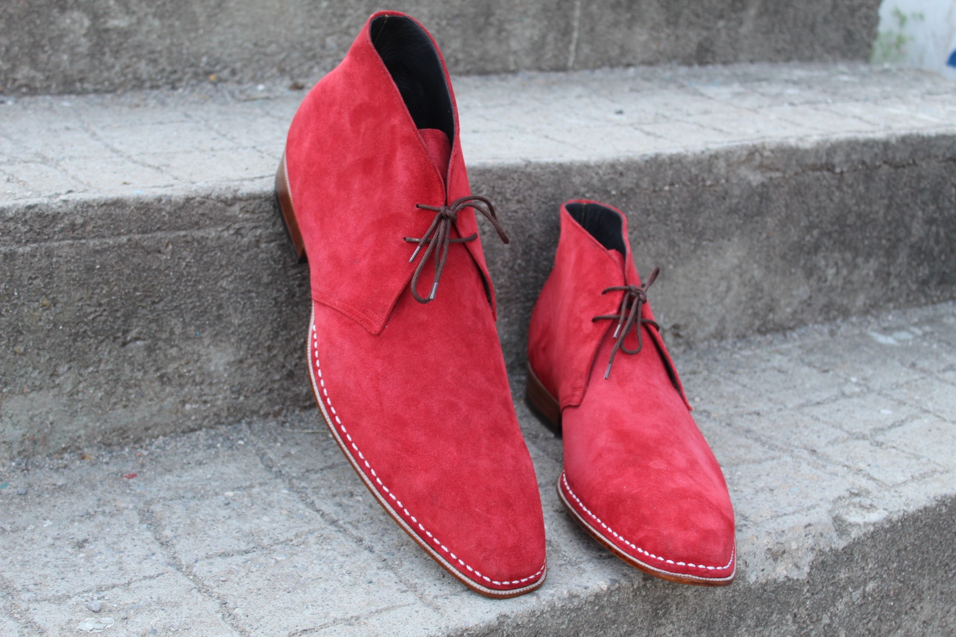 Inner: Soft Leather Sole: Leather Gender : Male Heel: Leather Color: Red Style: Chukka Boot Manufacturing time 7-10 business days Totally Hand stitched If you can’t find your Size/Color just send us message we will make for you.