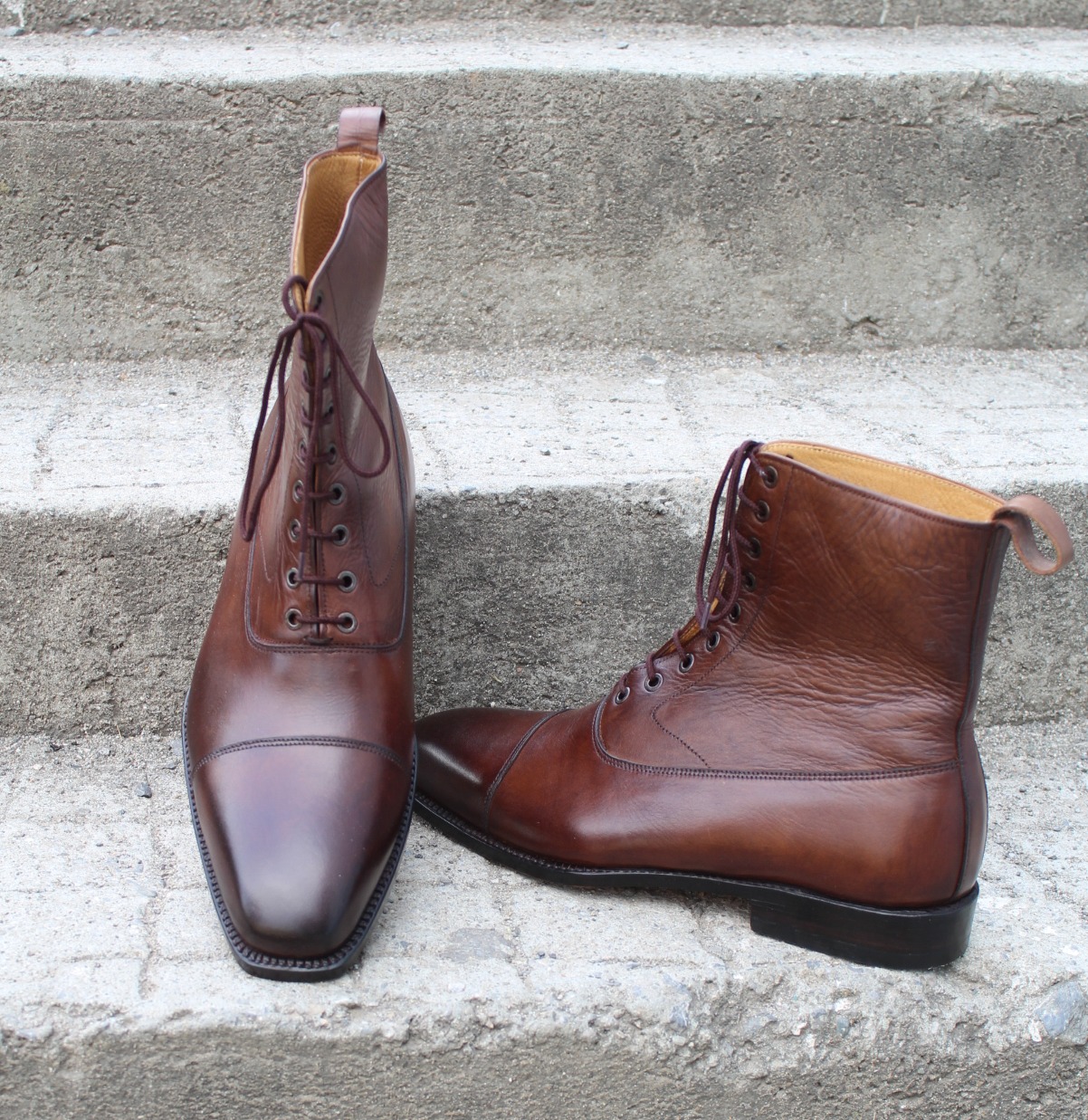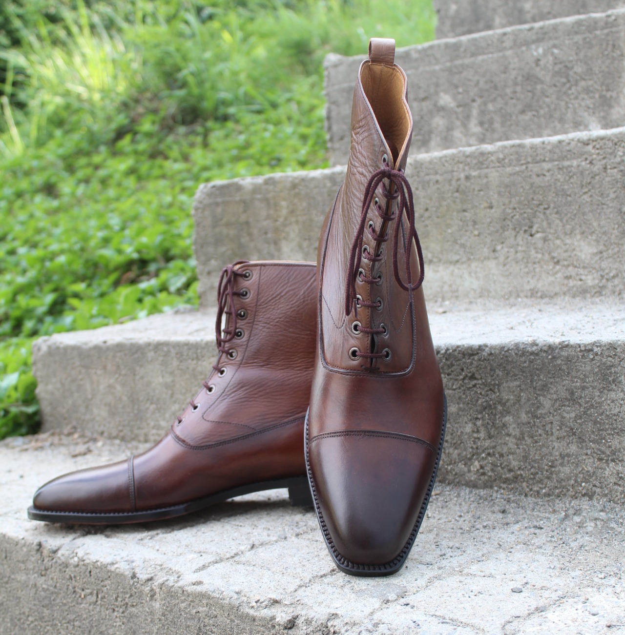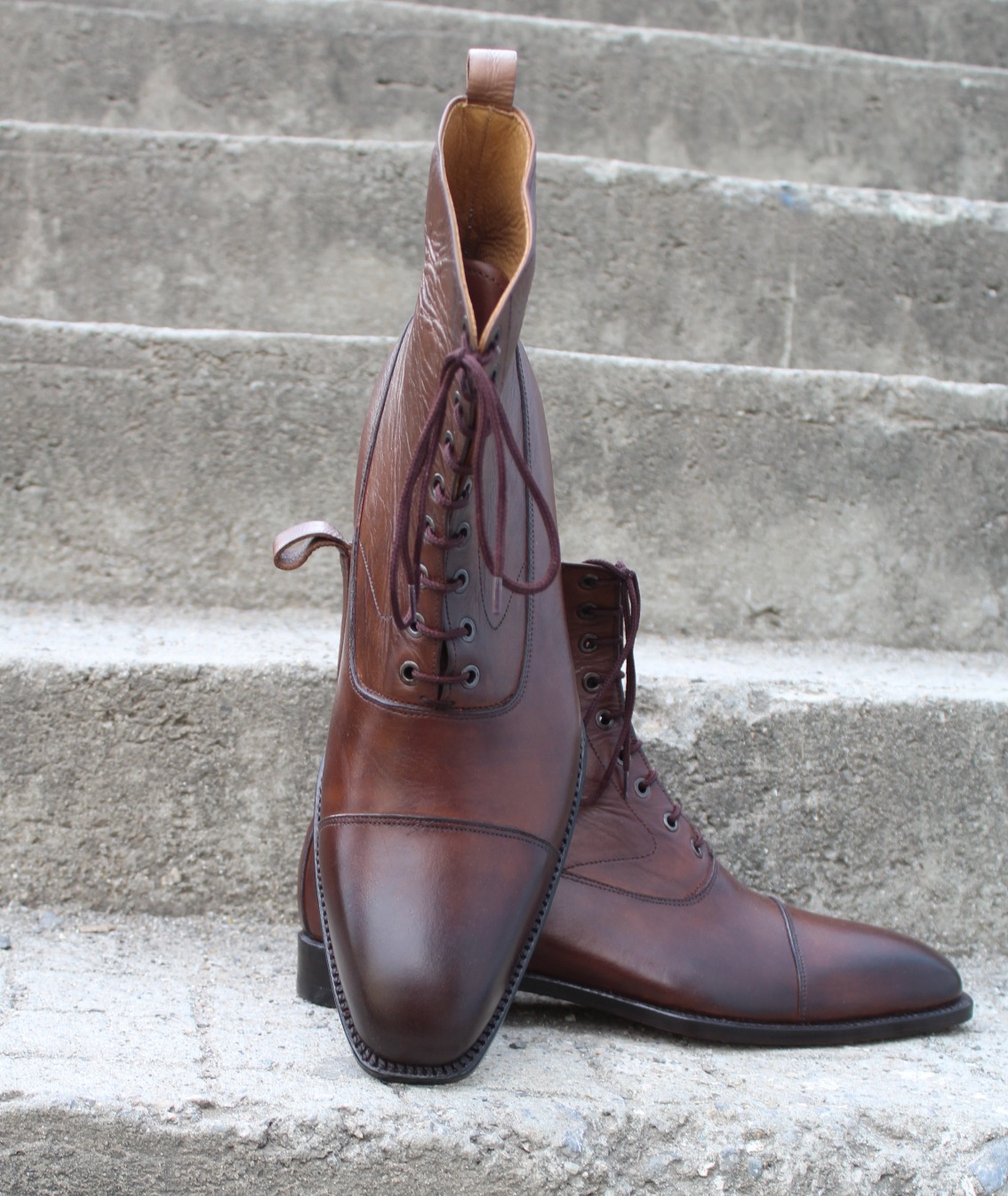 Crafted Leather Handmade Brown Ankle High Dress Lace up Boot