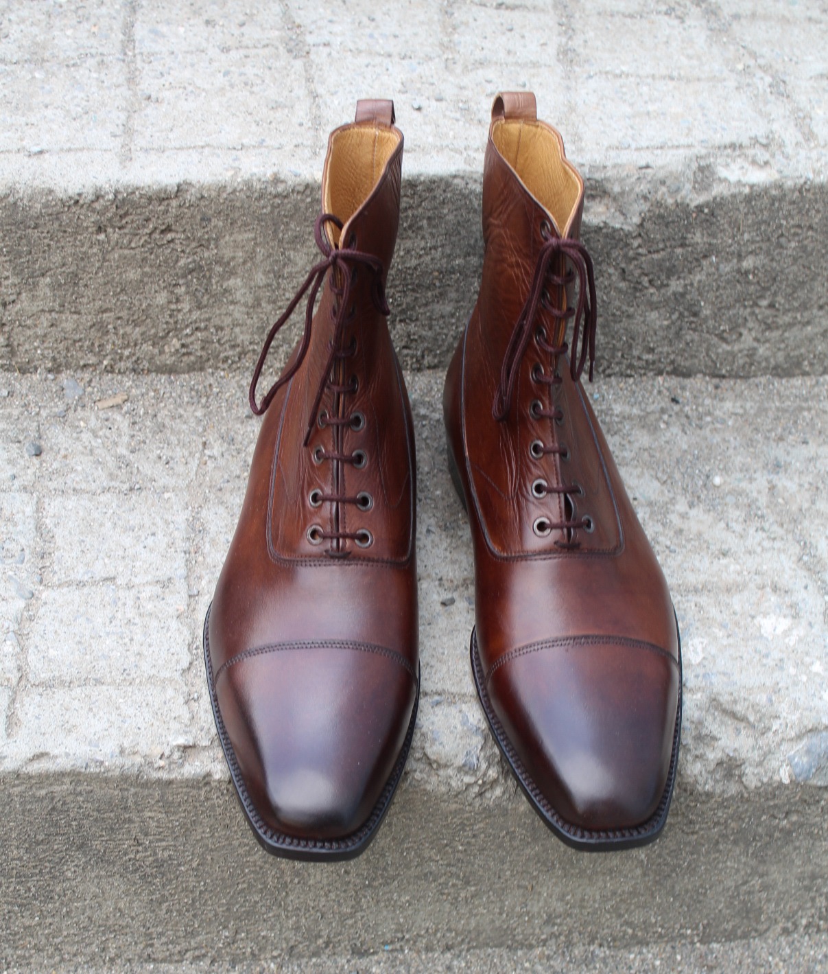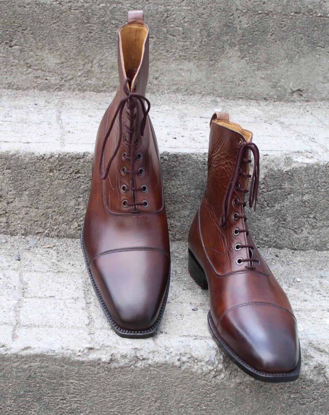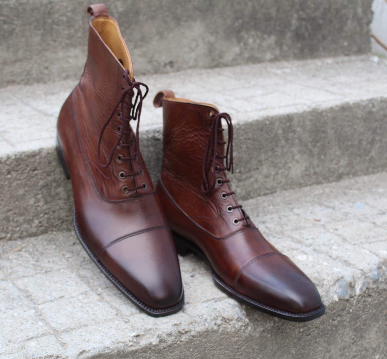 Crafted Leather Handmade Brown Ankle High Dress Lace up Boot