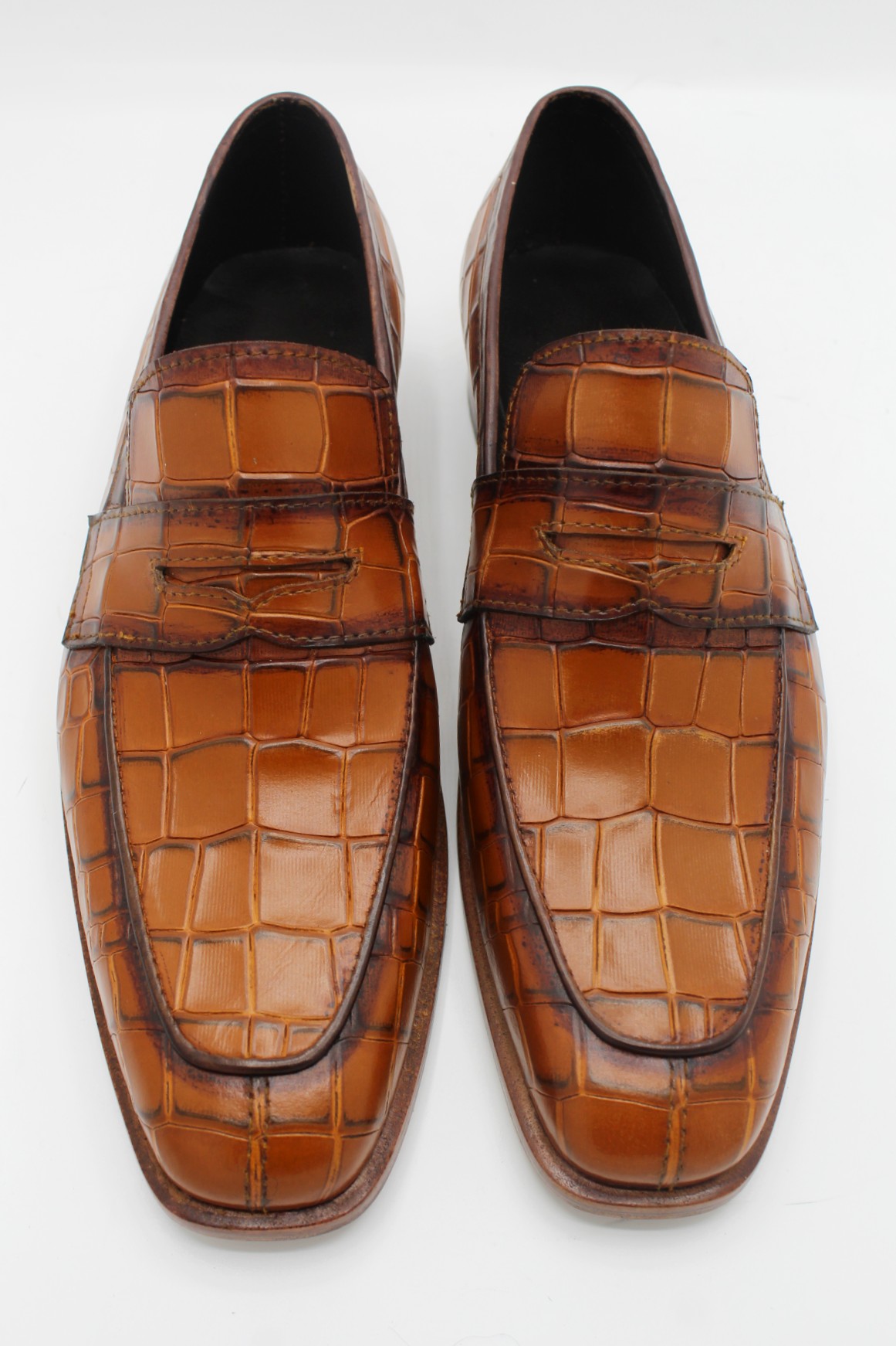 Crafted Leather Brown Crocodile Texture Leather Alligator Loafers Dress Shoes