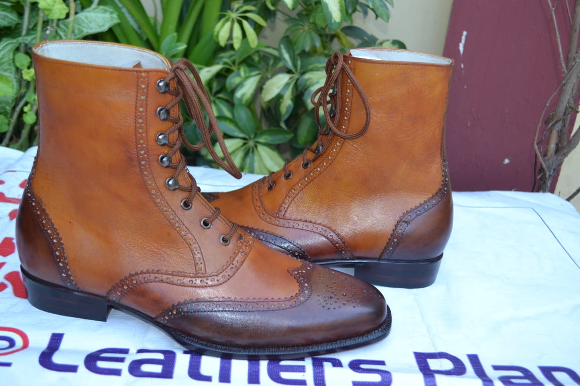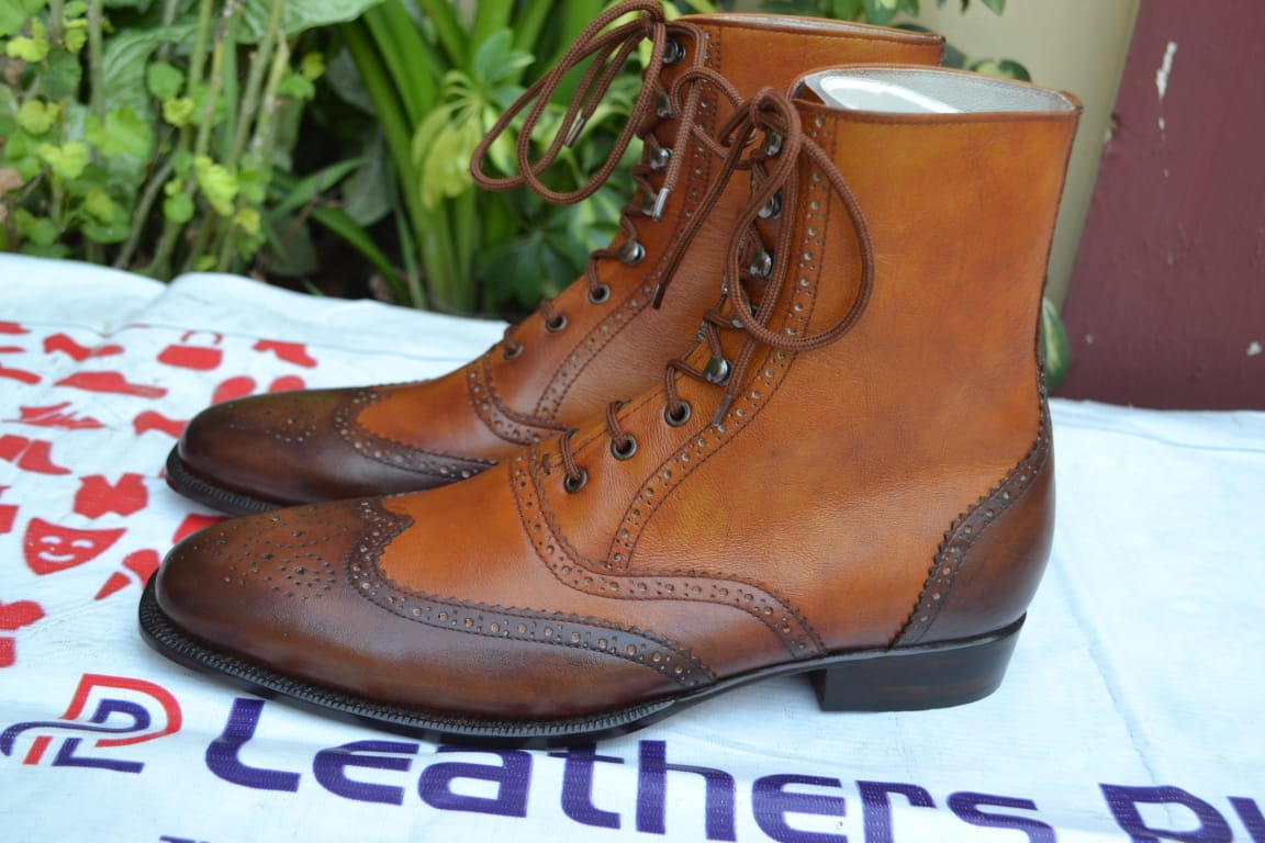 Crafted Leather Brown Leather Dress Shoes Men Wingtip Ankle High Boot