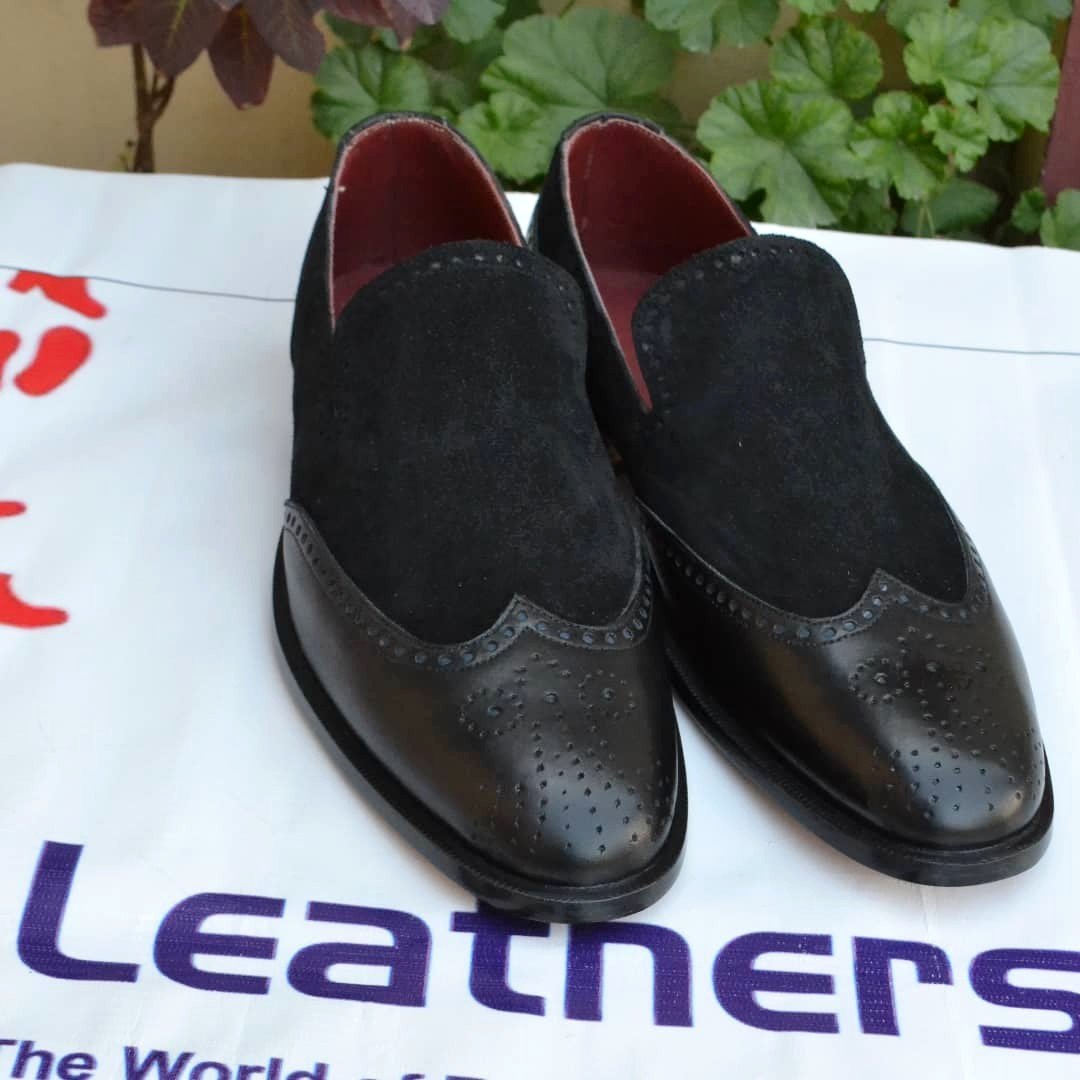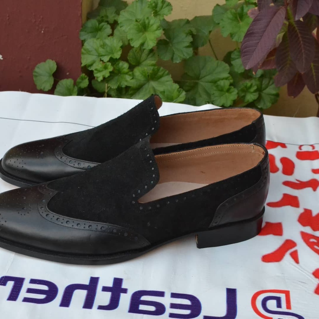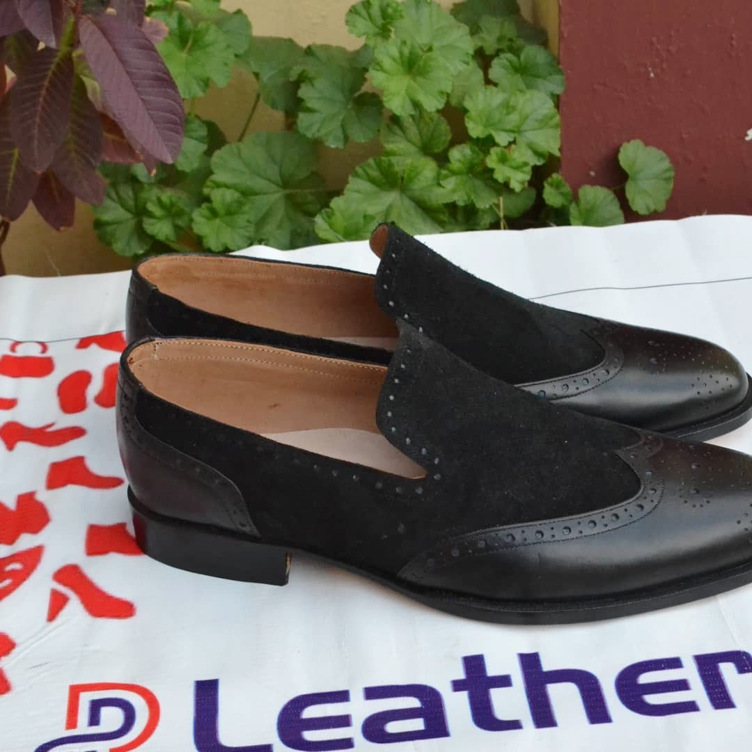 Crafted Leather Black Calf and Black Suede Wingtip Loafers Style Dress Shoes