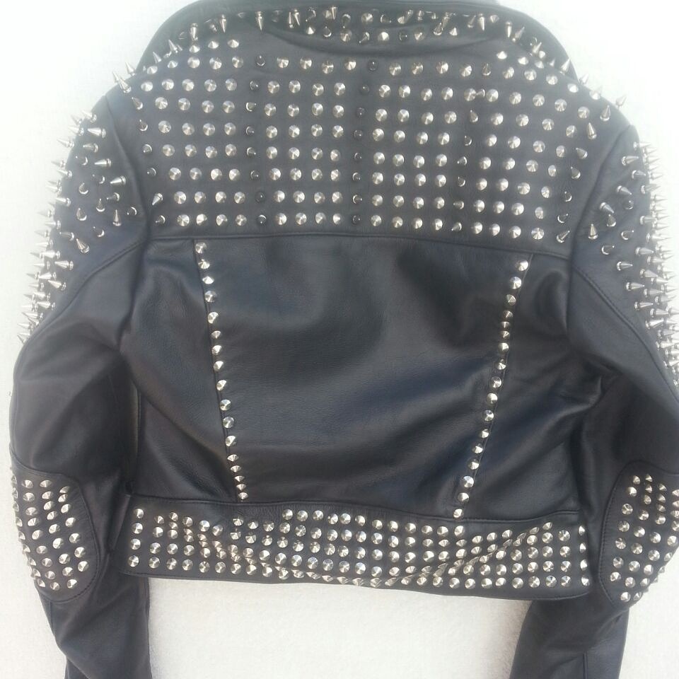 Crafted Leather Handmade Women Punk Style Black Studded Spike Sliver Studs Jacket