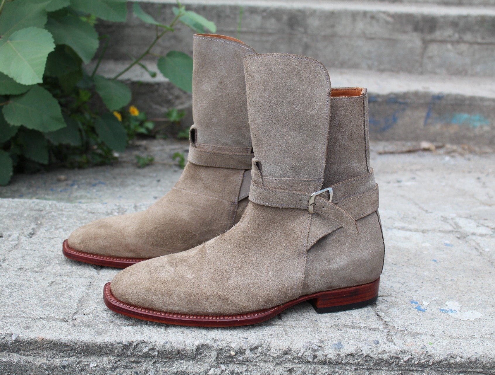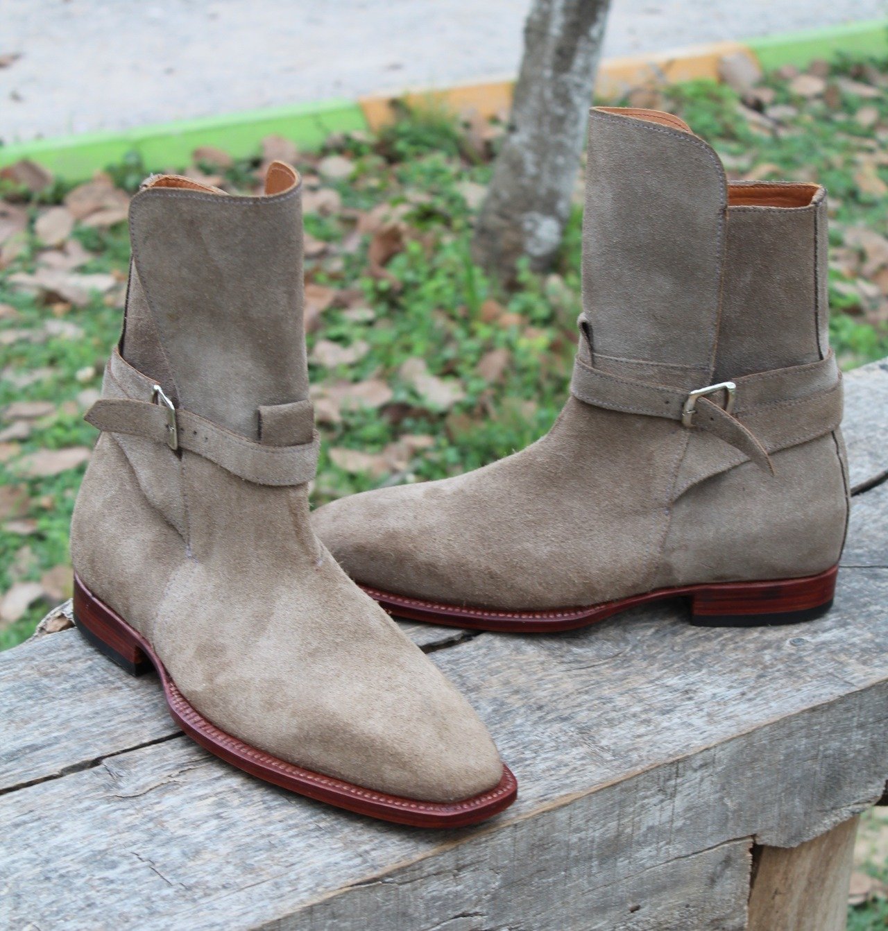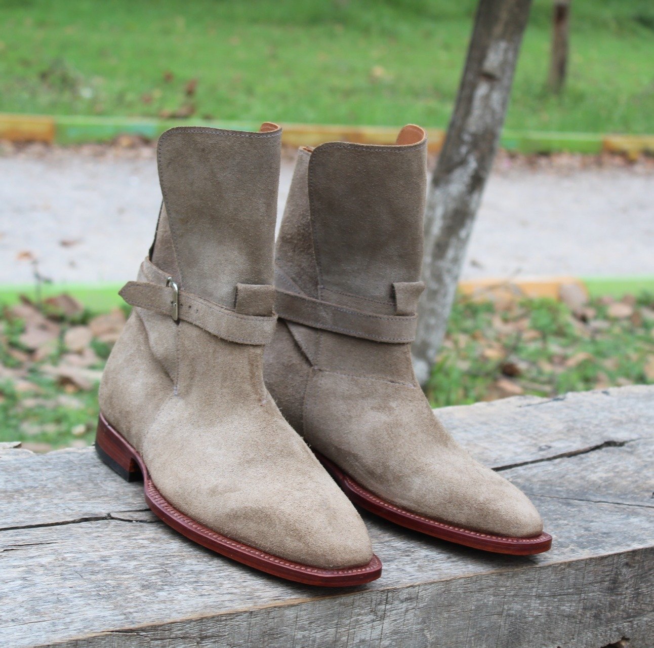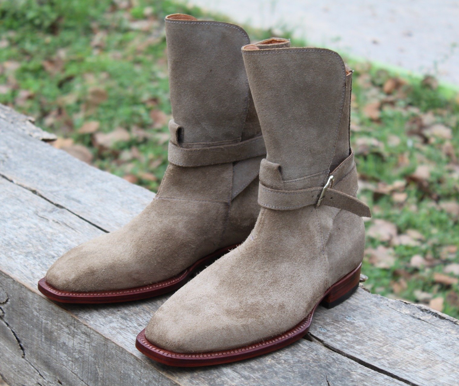Crafted Leather Handmade Brown Suede Leather Jodhpur Boot