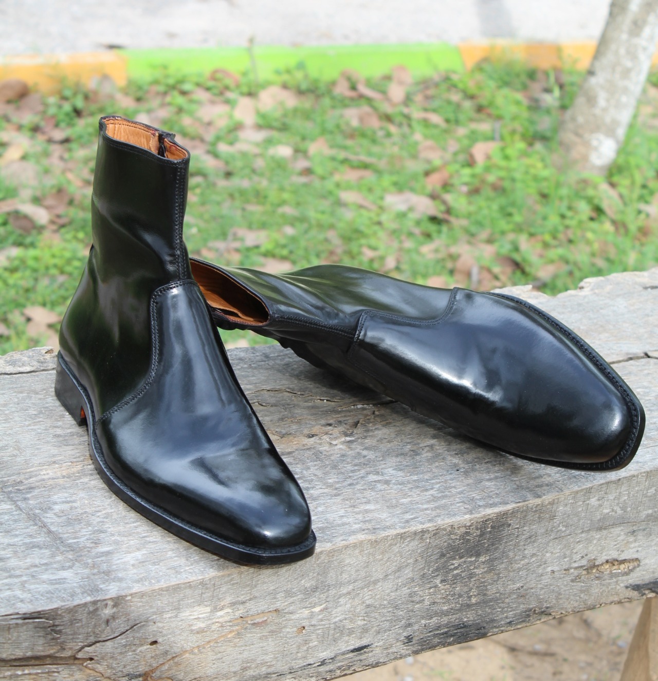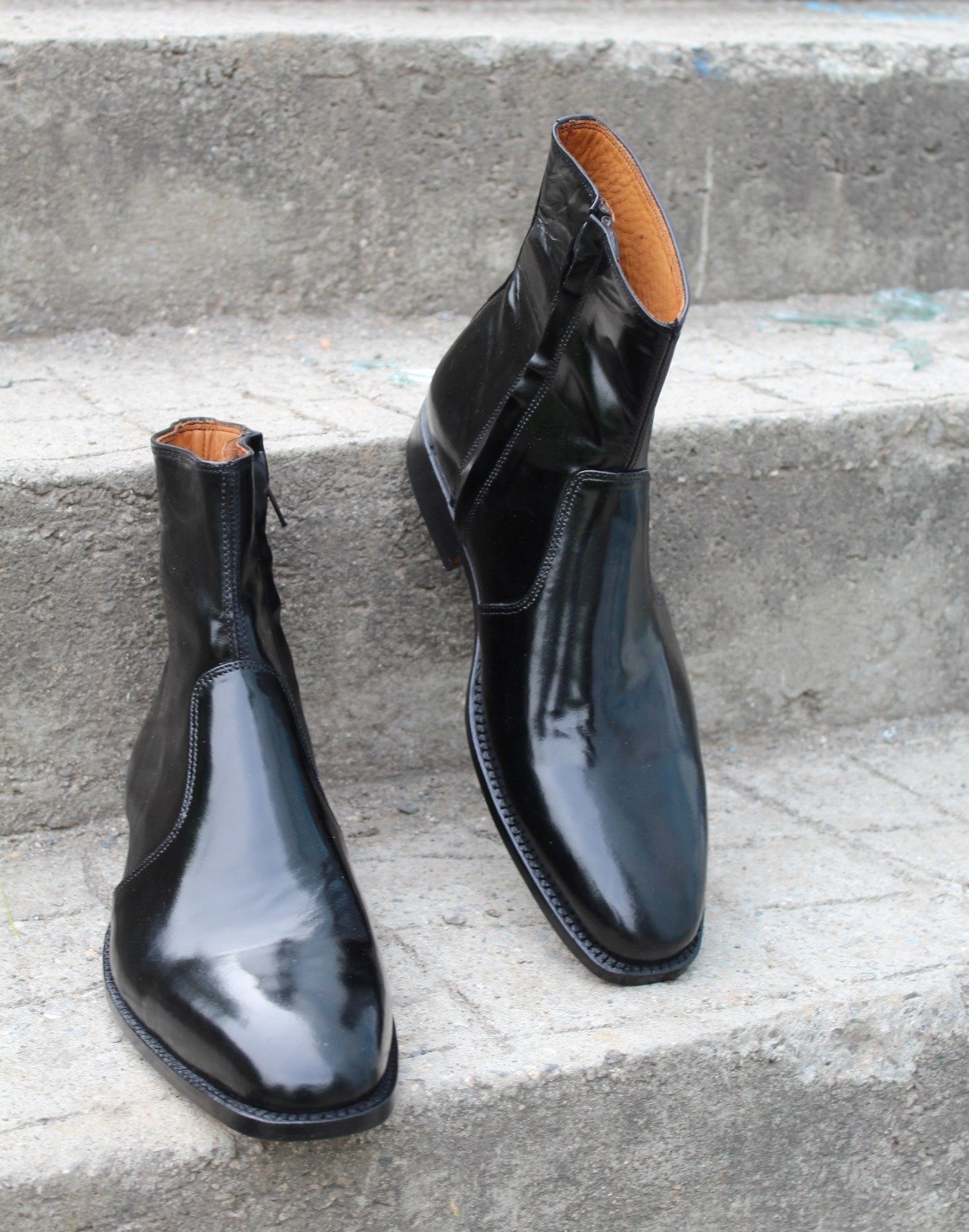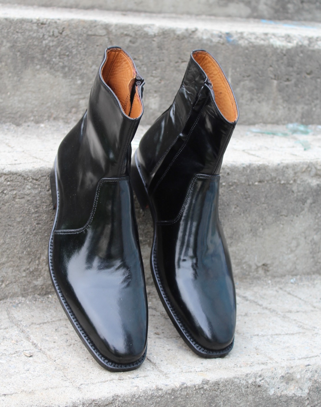 Crafted Leather Handmade Black Patent Leather Side Zipper Jodhpur Boot