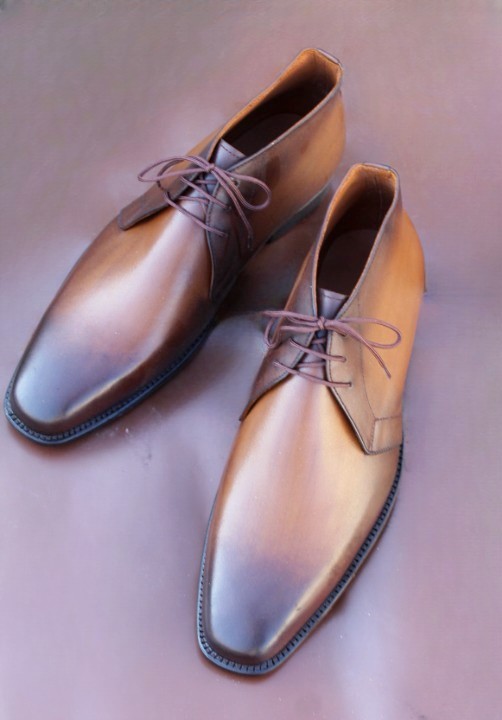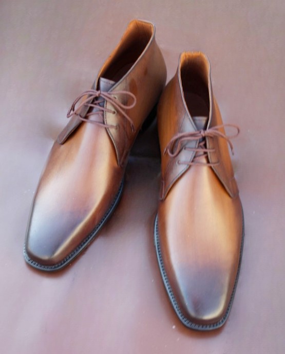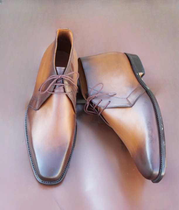 Crafted Leather Handmade Custom Made Dress Shoes Brown Calfskin Leather Chukka Boots