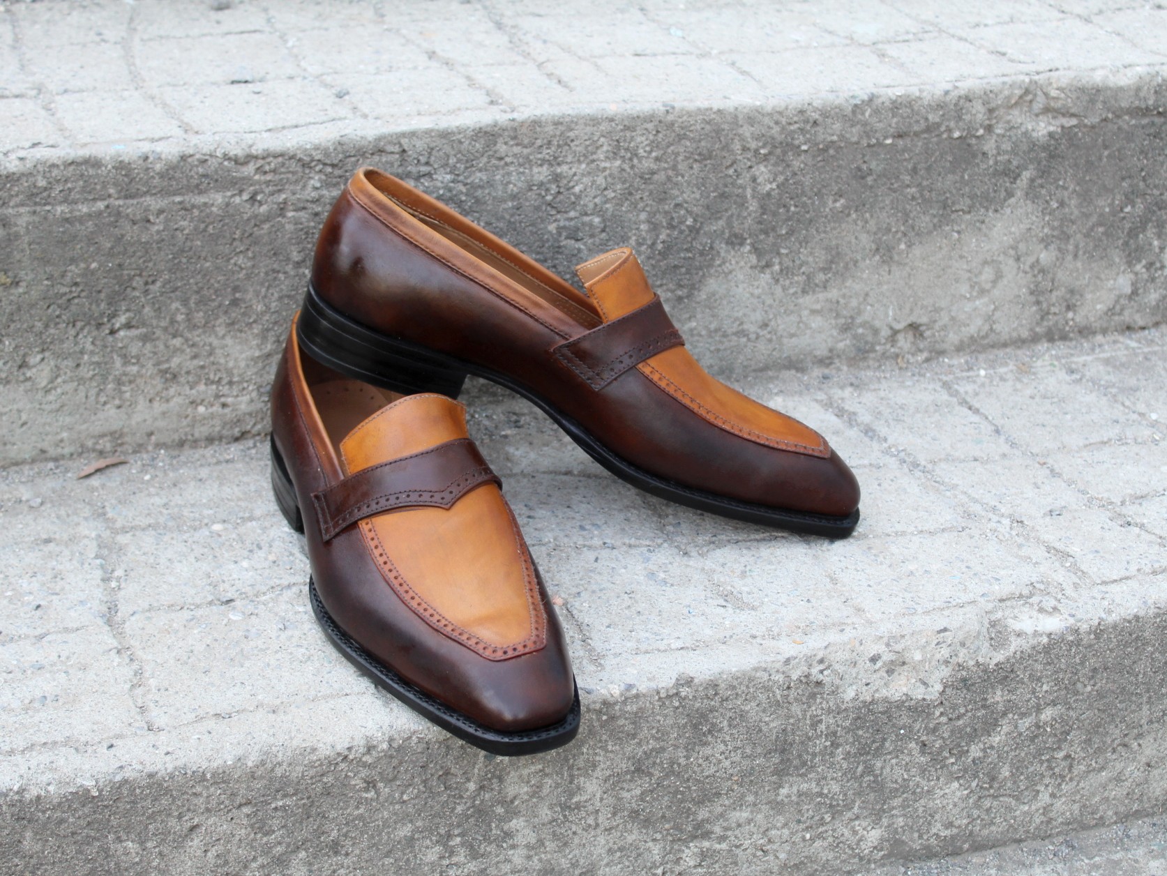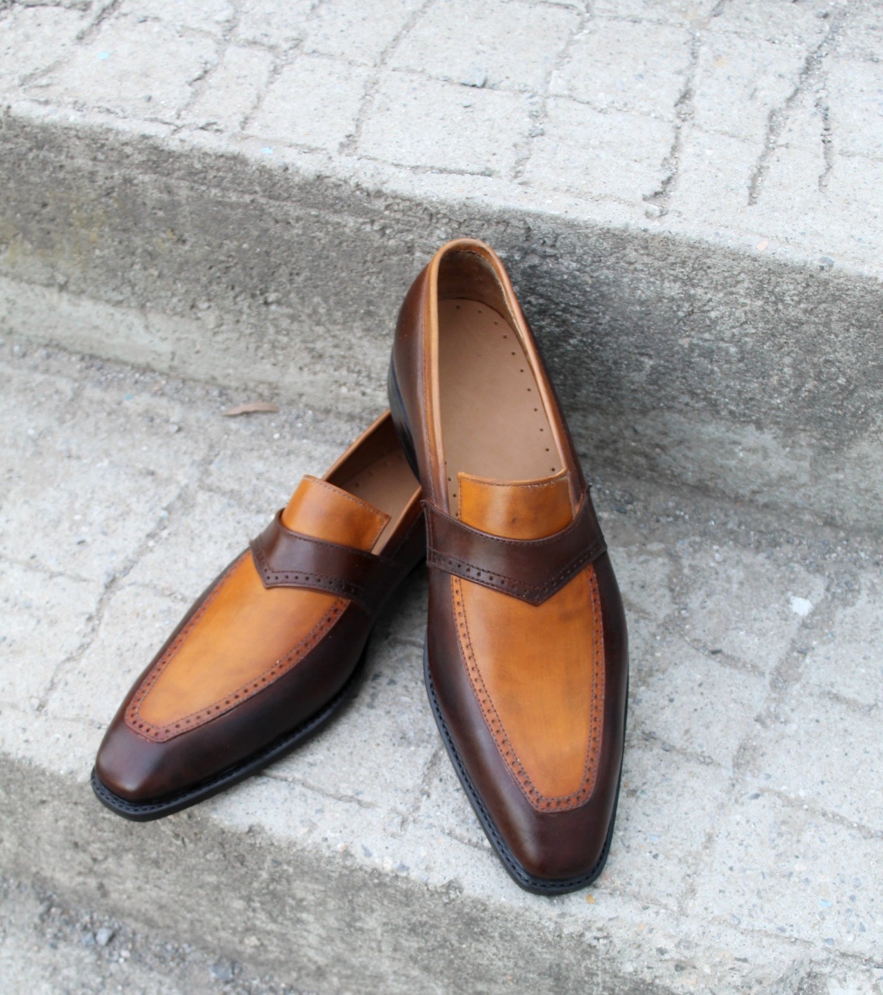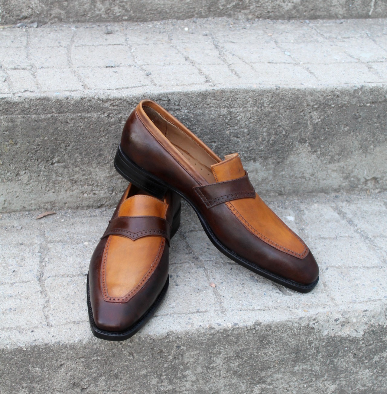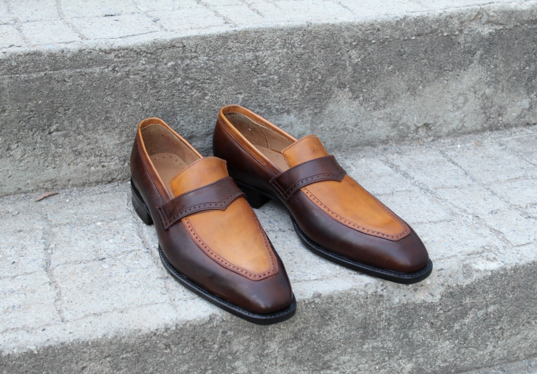 Inner: Soft Leather Sole: Leather Gender : Male Heel: Leather Color: Tan / Dark Brown Style: Loafers Shoes Lining Soft Calf Leather Lining Totally Hand stitched Manufacturing time 7-10 business days If you can’t find your Size/Colorjust send us message we will make for you.