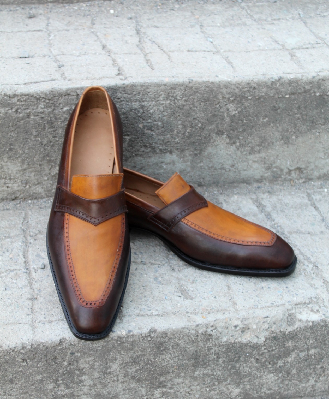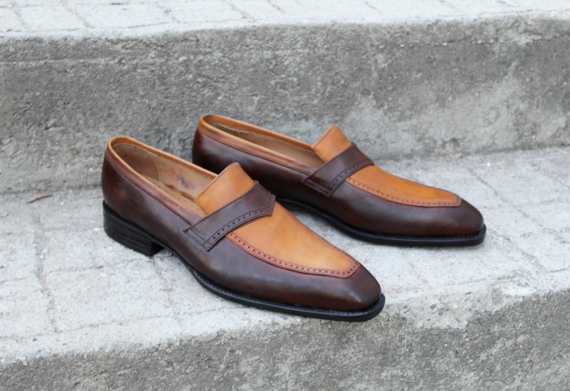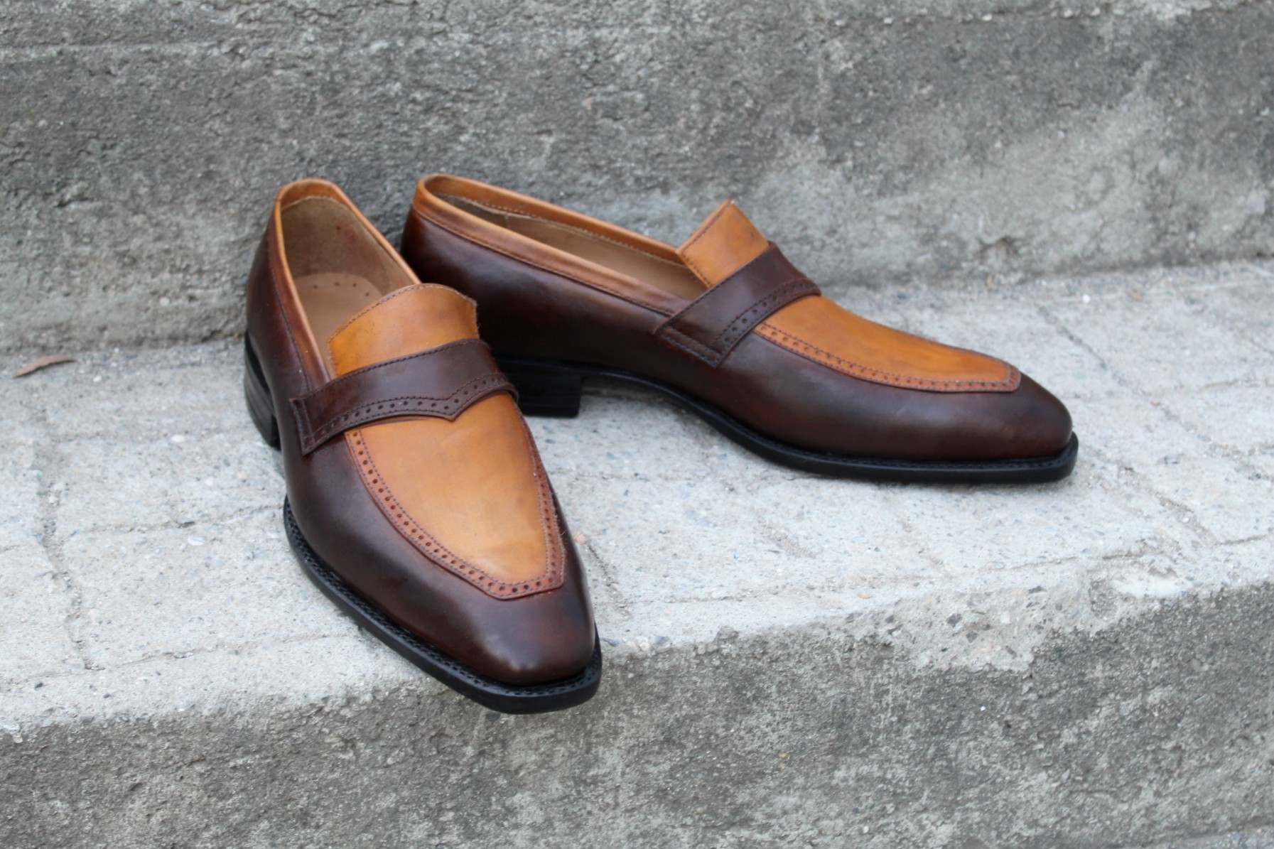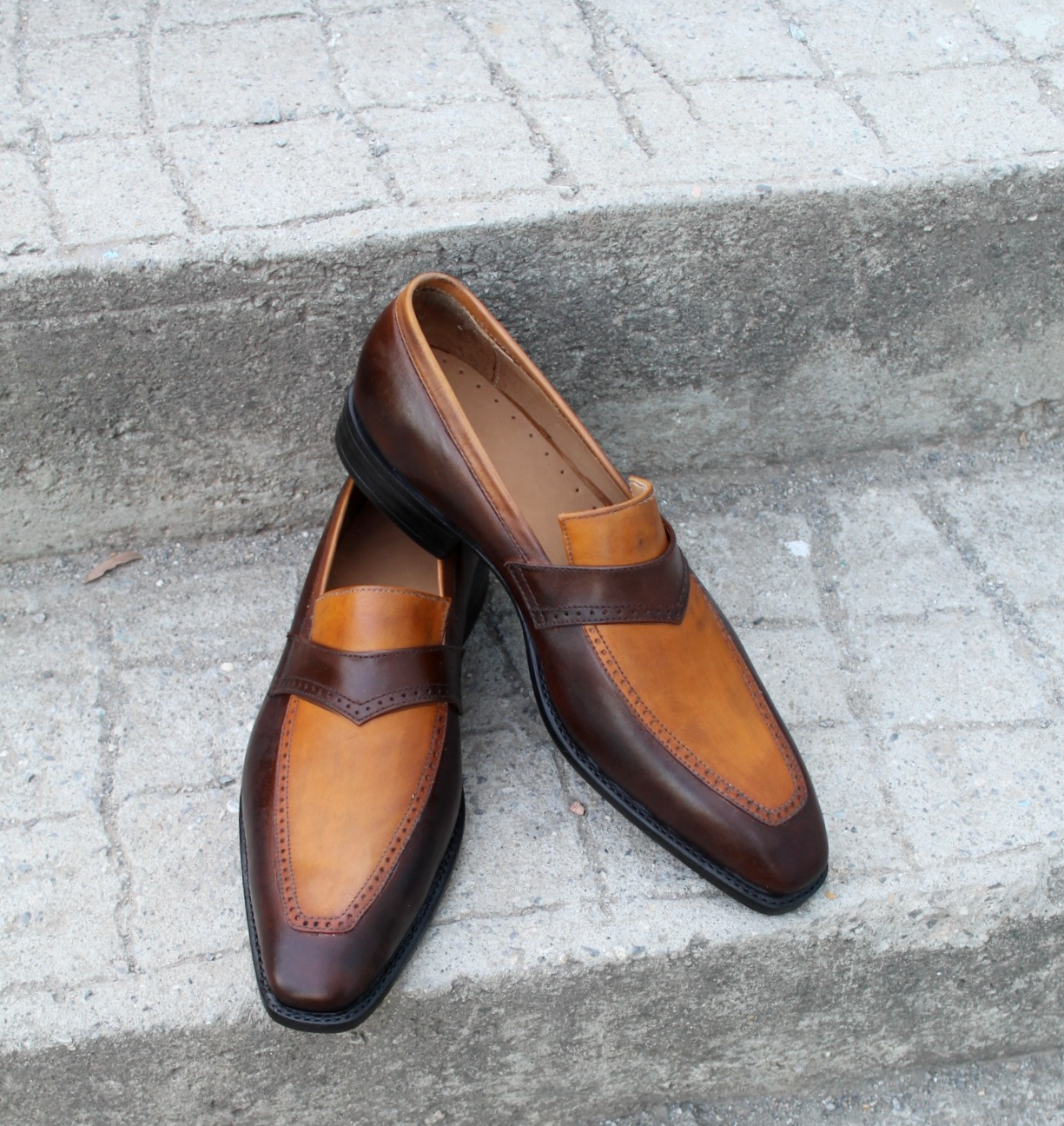 Inner: Soft Leather Sole: Leather Gender : Male Heel: Leather Color: Tan / Dark Brown Style: Loafers Shoes Lining Soft Calf Leather Lining Totally Hand stitched Manufacturing time 7-10 business days If you can’t find your Size/Colorjust send us message we will make for you.