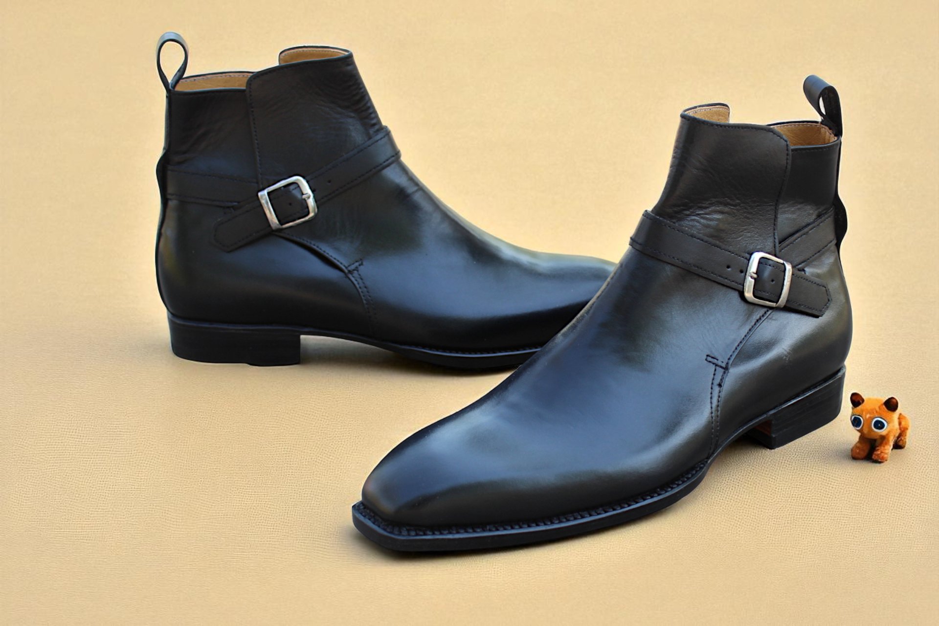 Crafted Leather Bespoke Dress Shoes Black Calf Leather Jodhpur Boot