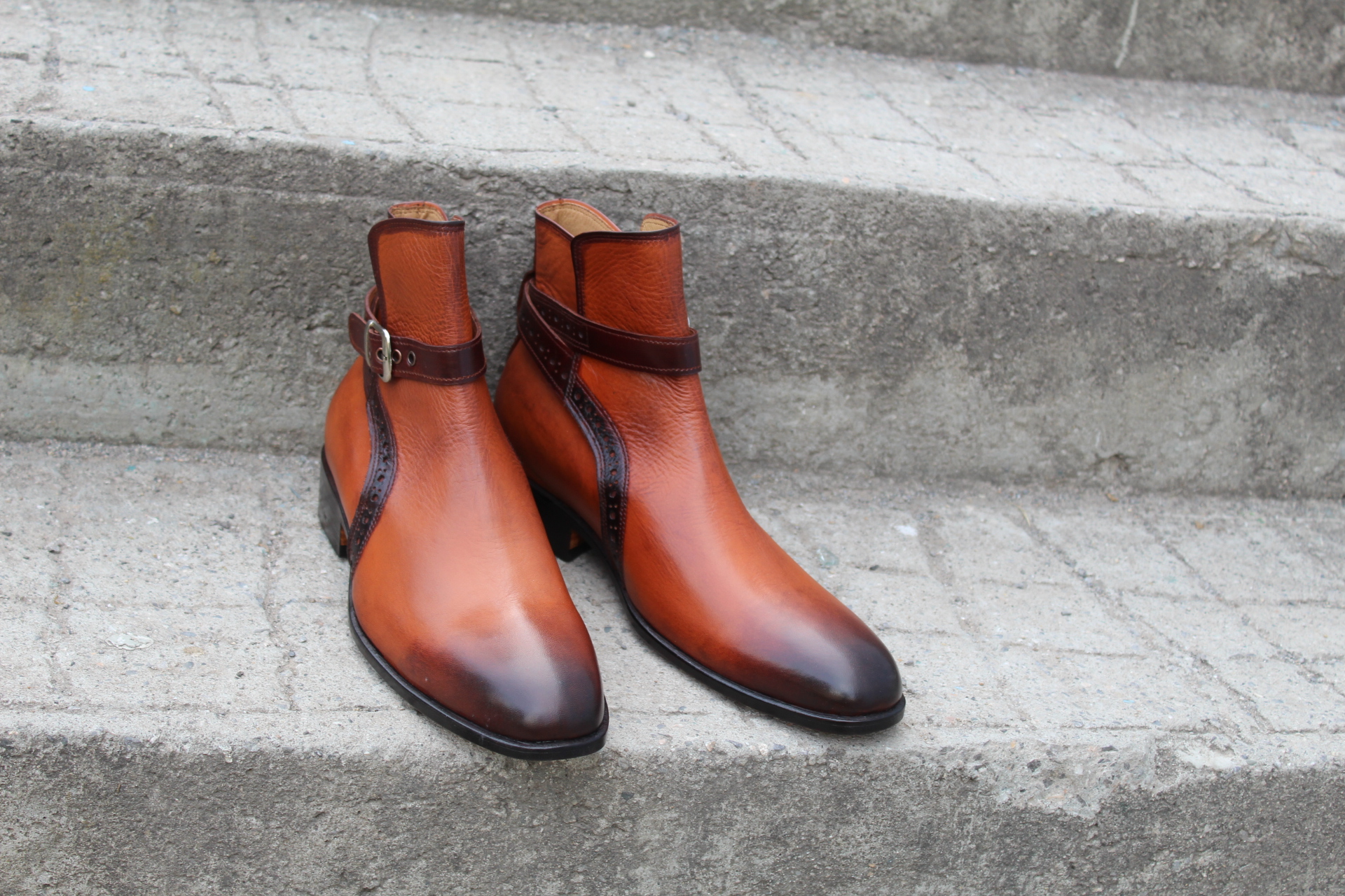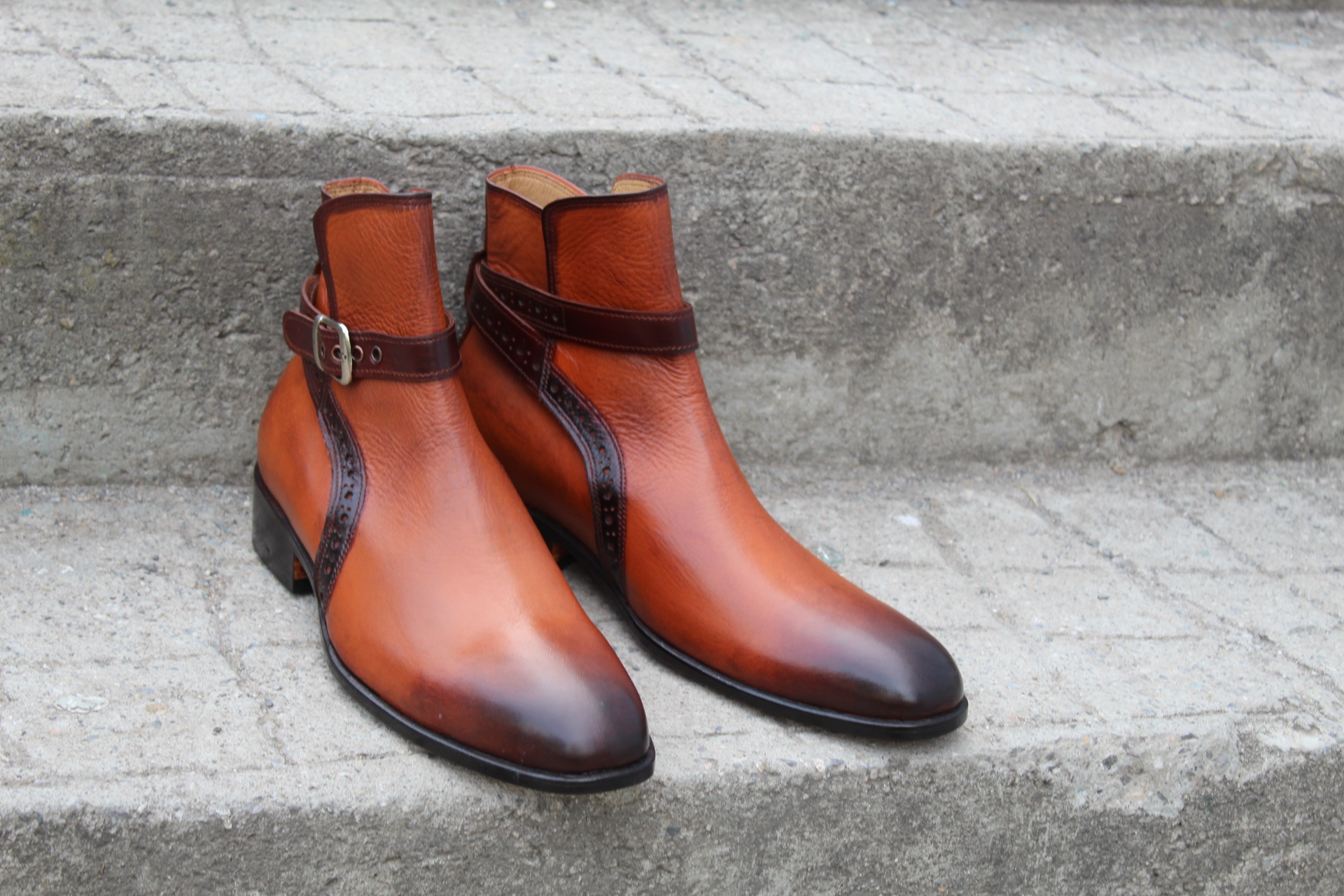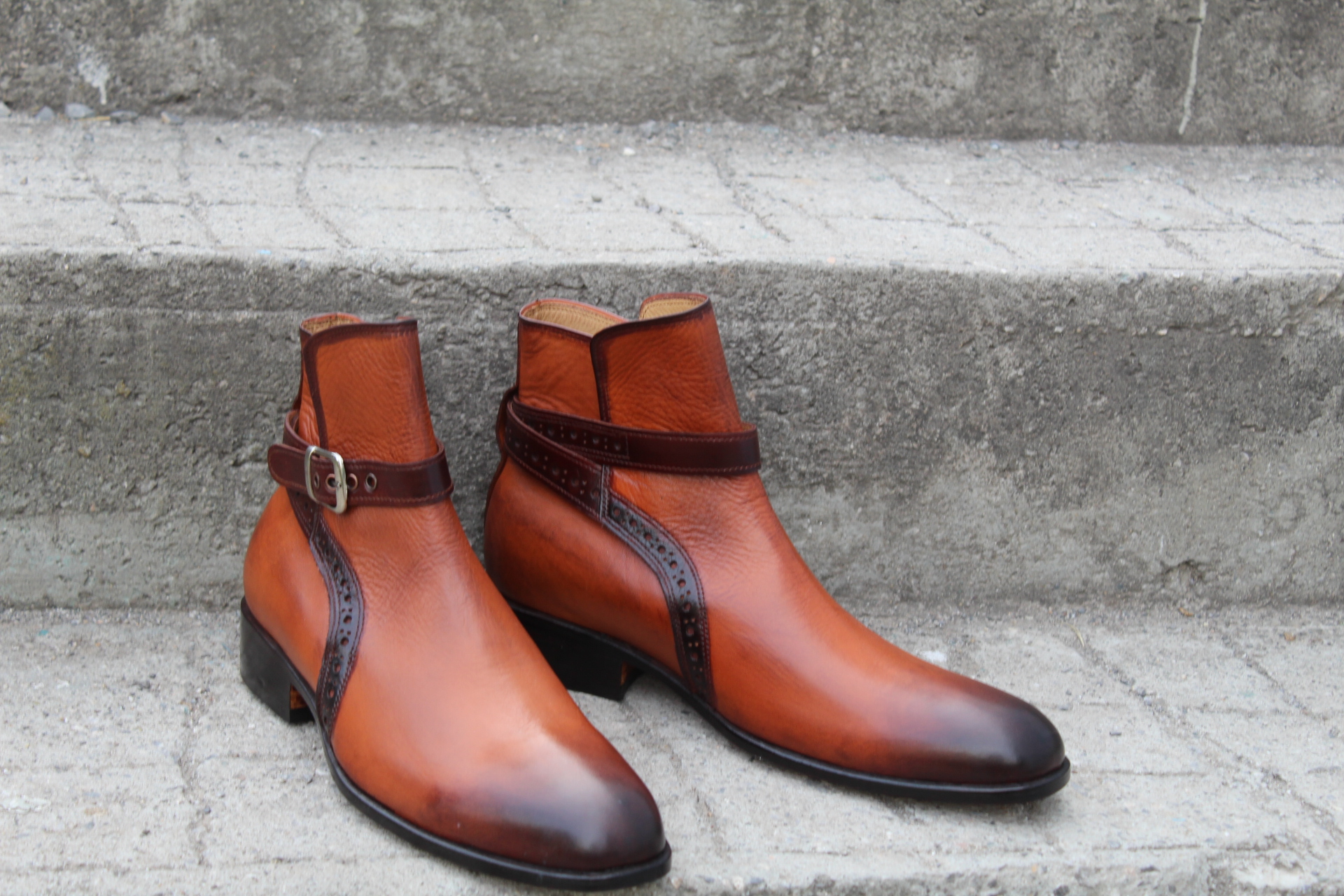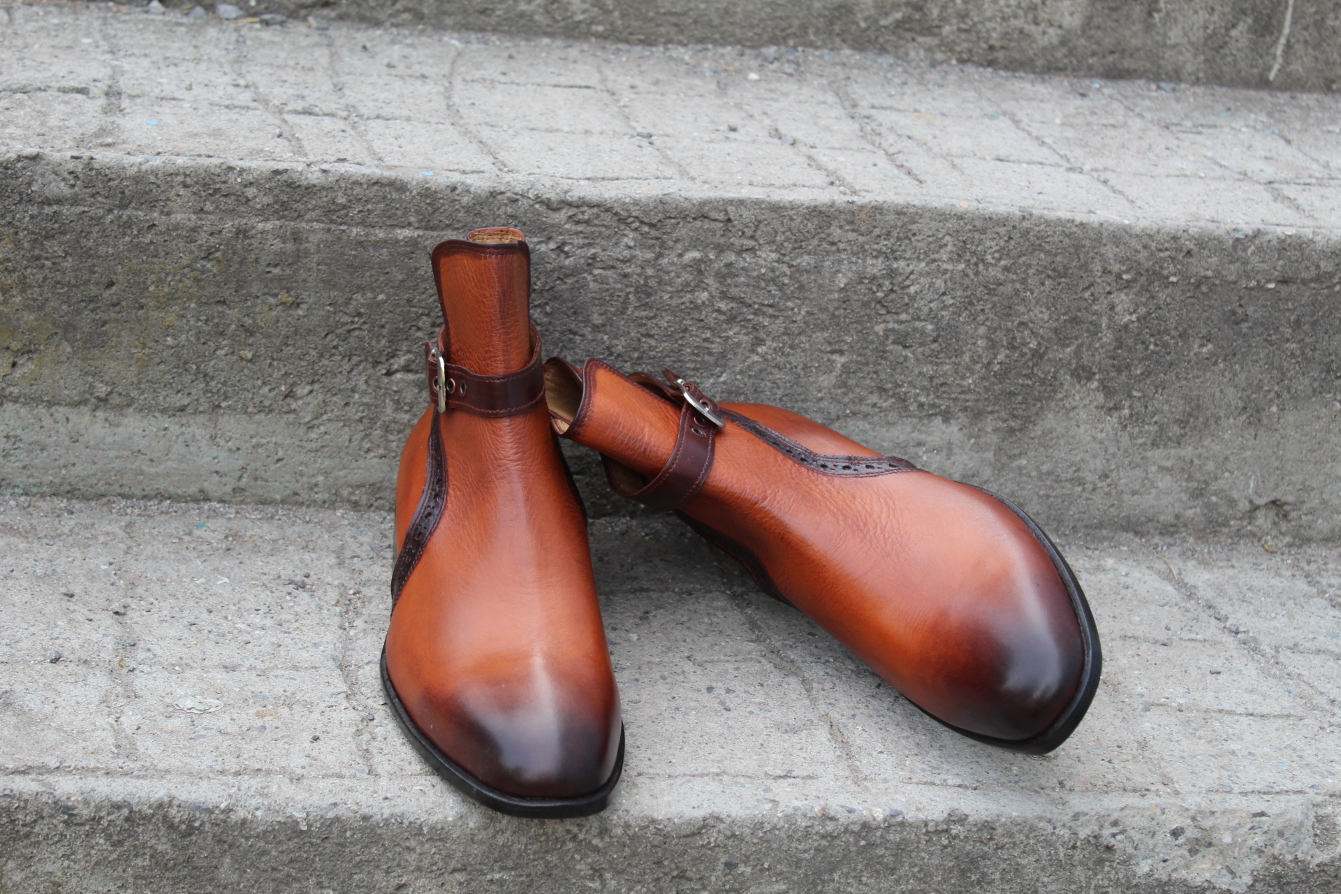 Crafted Leather Bespoke Dress Shoes Brown Leather Buckle Strap Jodhpur Boot