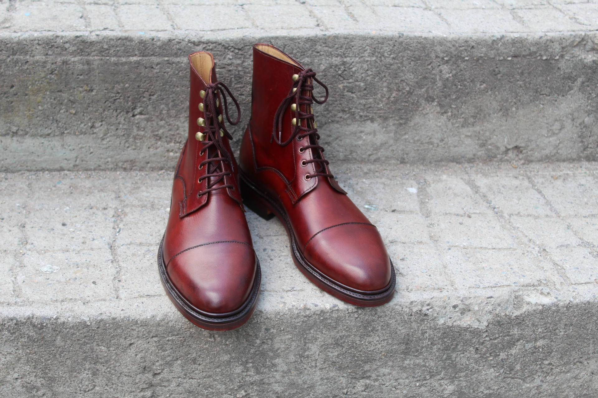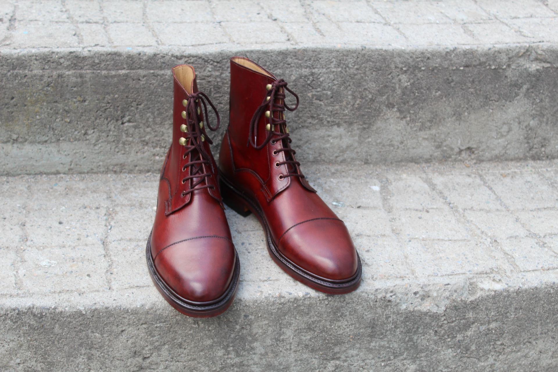 Crafted Leather Bespoke Dress Shoes Burgundy Ankle High Lace up Boot