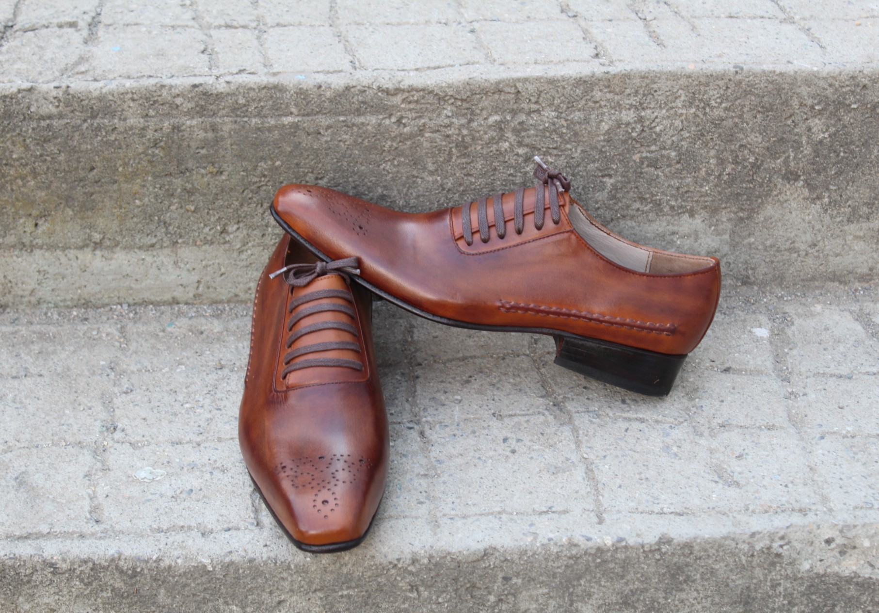 Inner: Soft Leather Sole: Leather Gender : Male Heel: Leather Color: Brown Patina Style: Dress Shoes Lining Soft Calf Leather Lining Totally Hand stitched Manufacturing time 7-10 business days If you can’t find your Size/Colorjust send us message we will make for you.