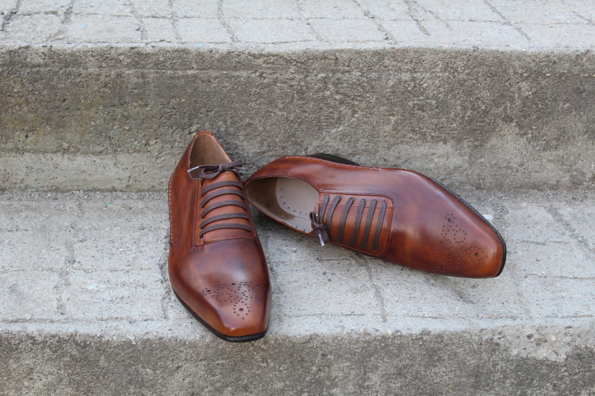 Crafted Leather Brown Patina Oxford Lace up Dress Shoes