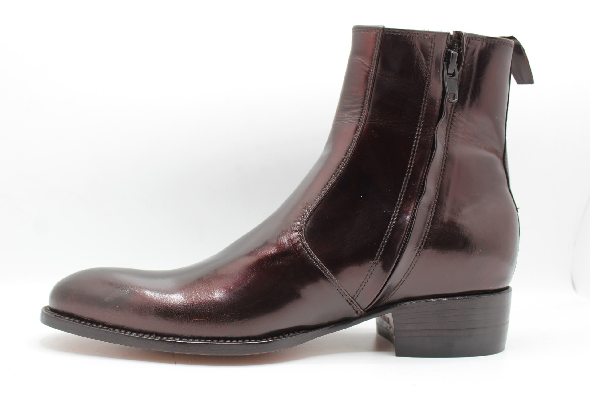 Crafted Leather Brown Patent Leather Ankle High Side Zipper Jodhpur Boot