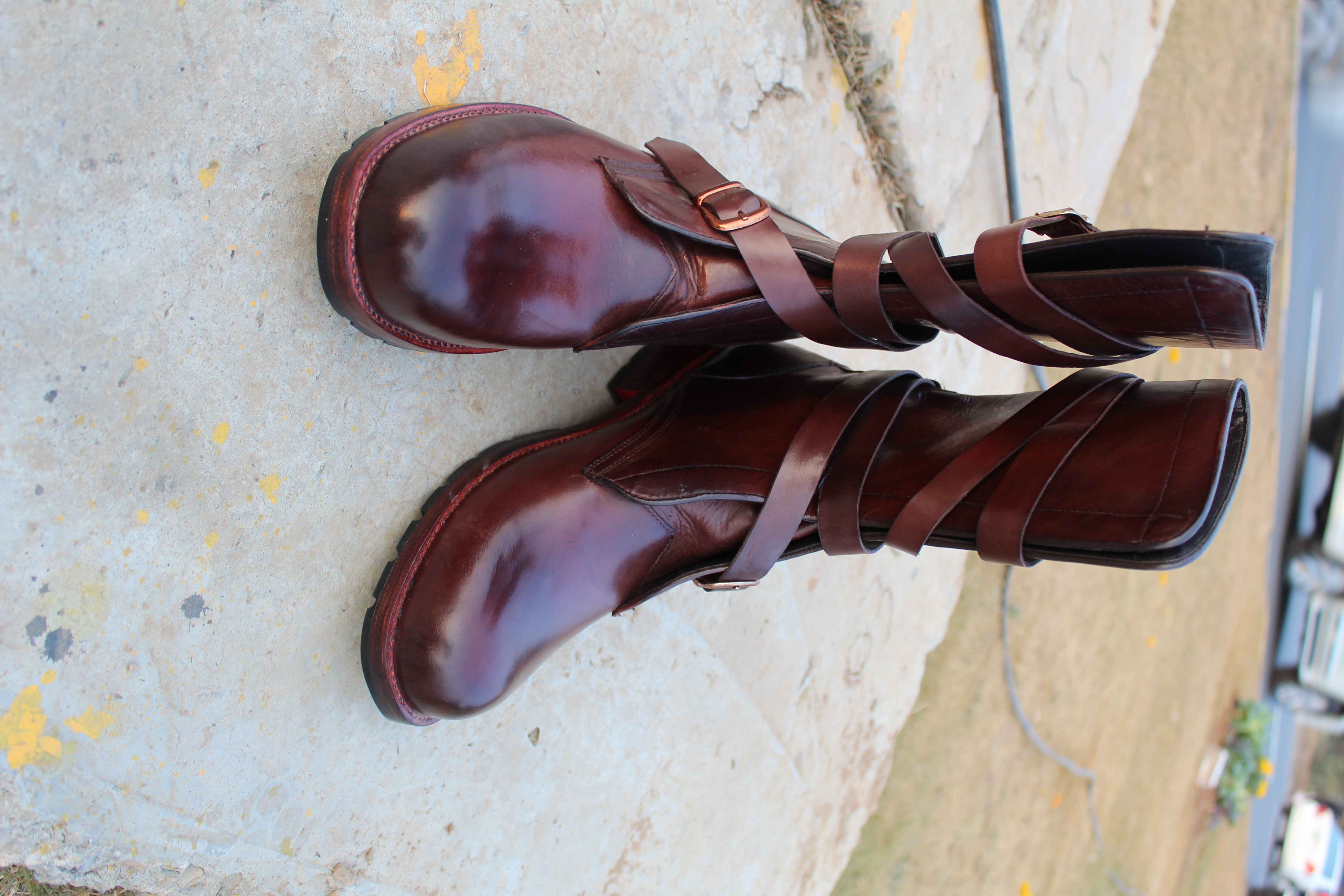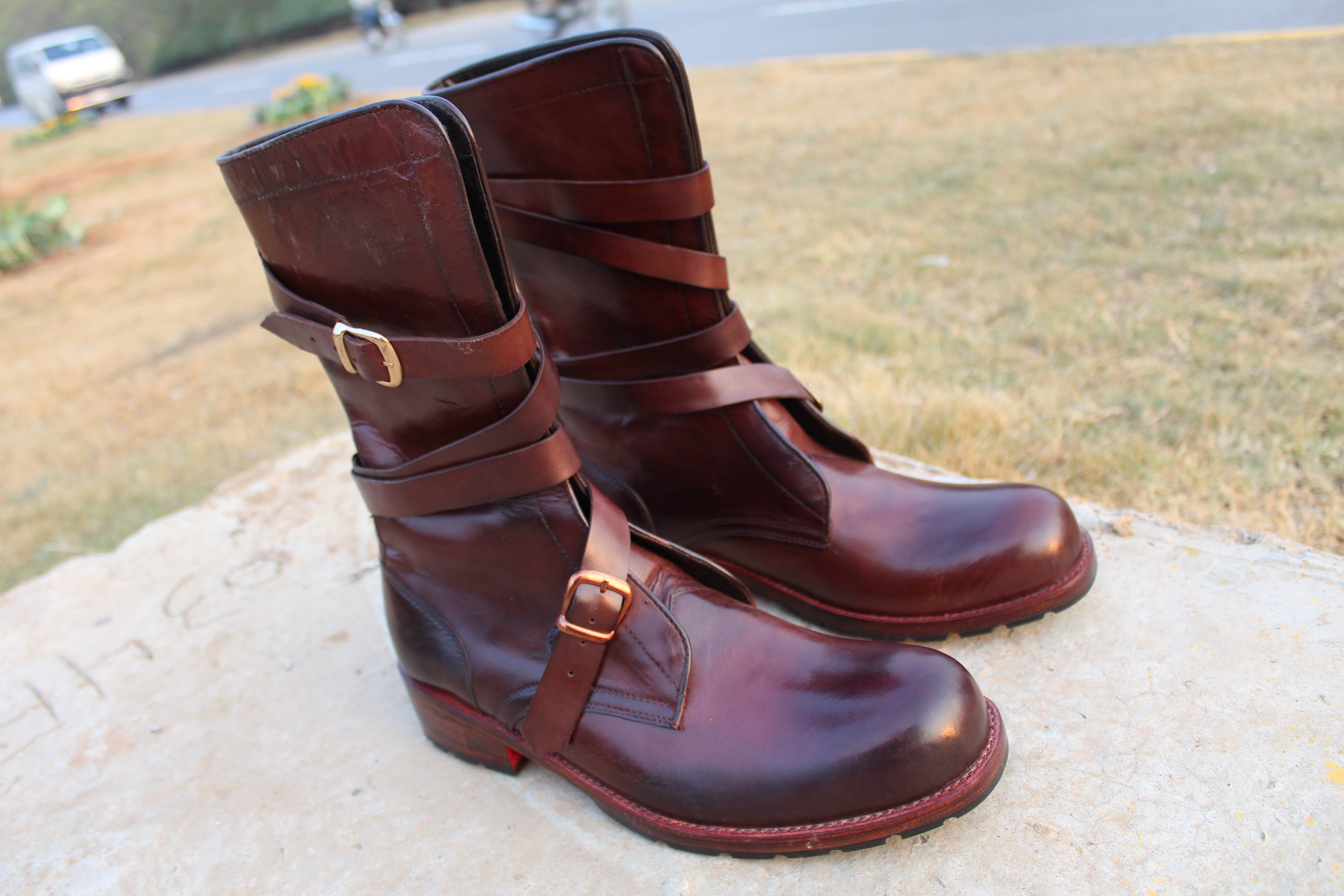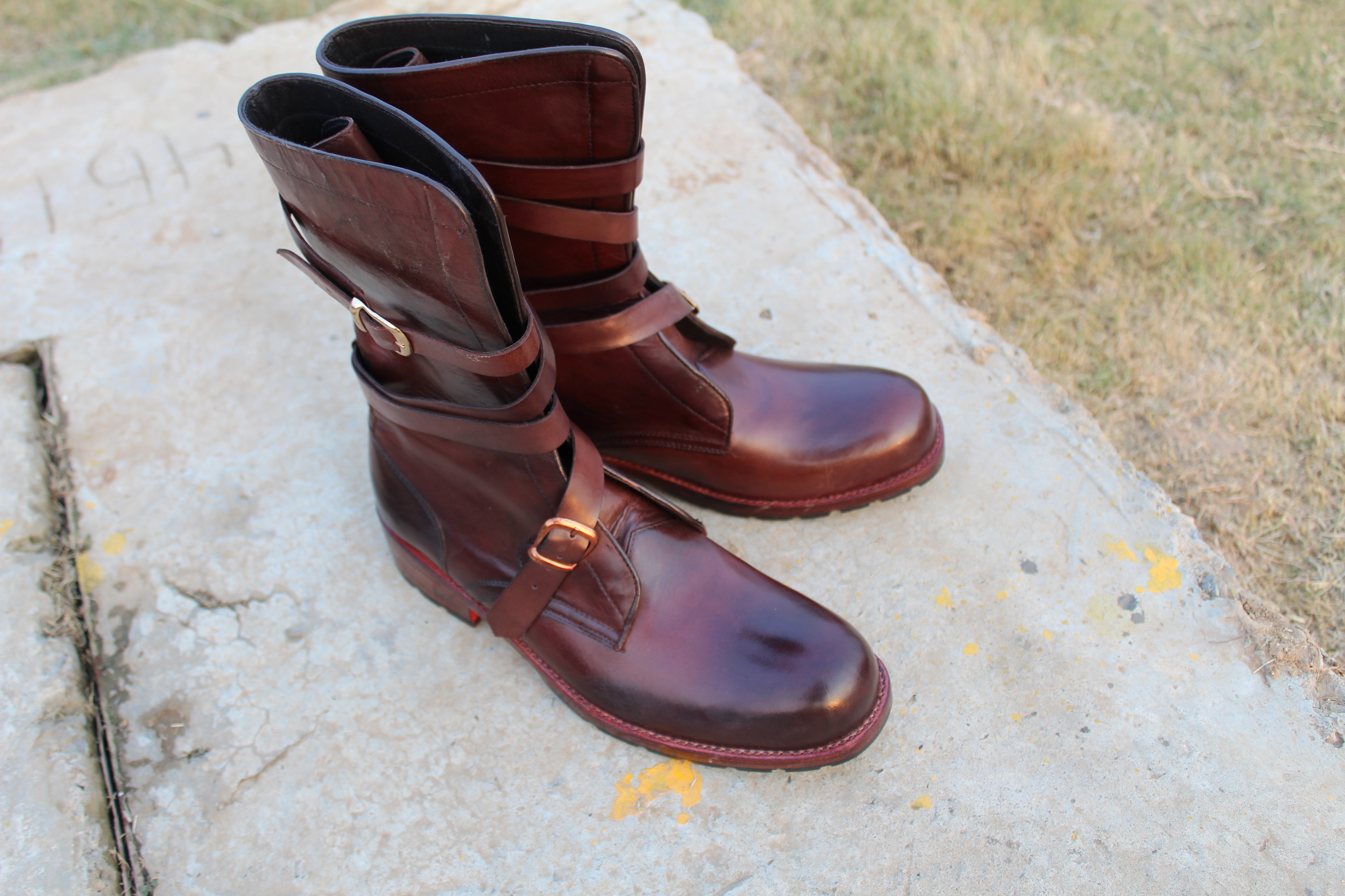 Crafted Leather Bespoke Dress Shoes Burgundy Leather Ankle High Jodhpur Buckle Strap Boot
