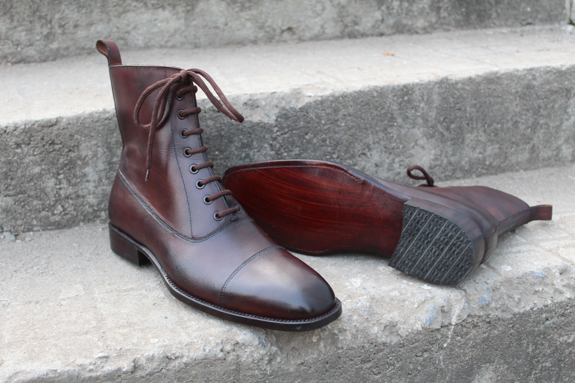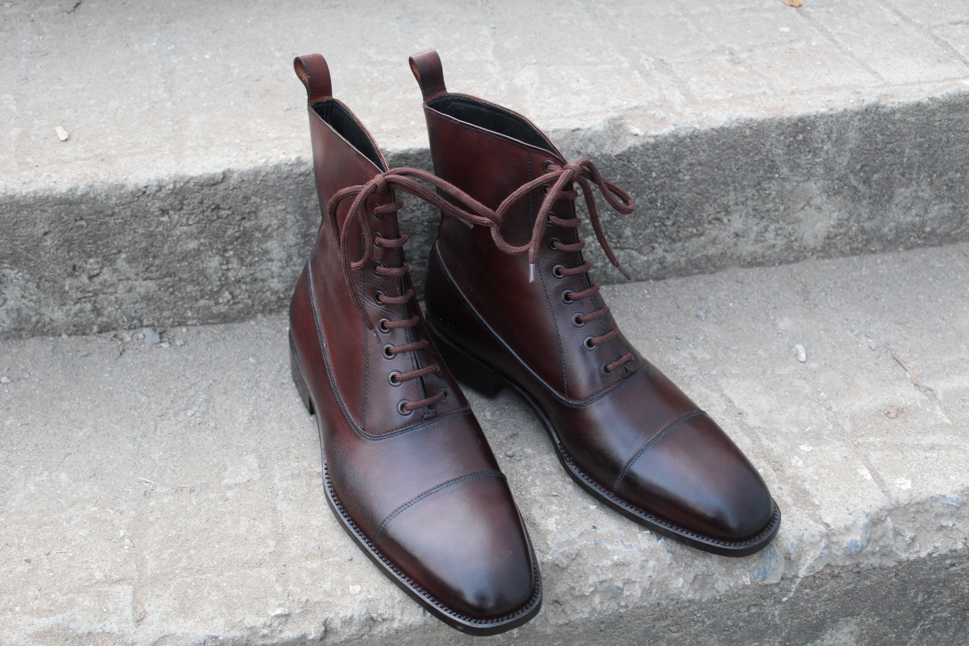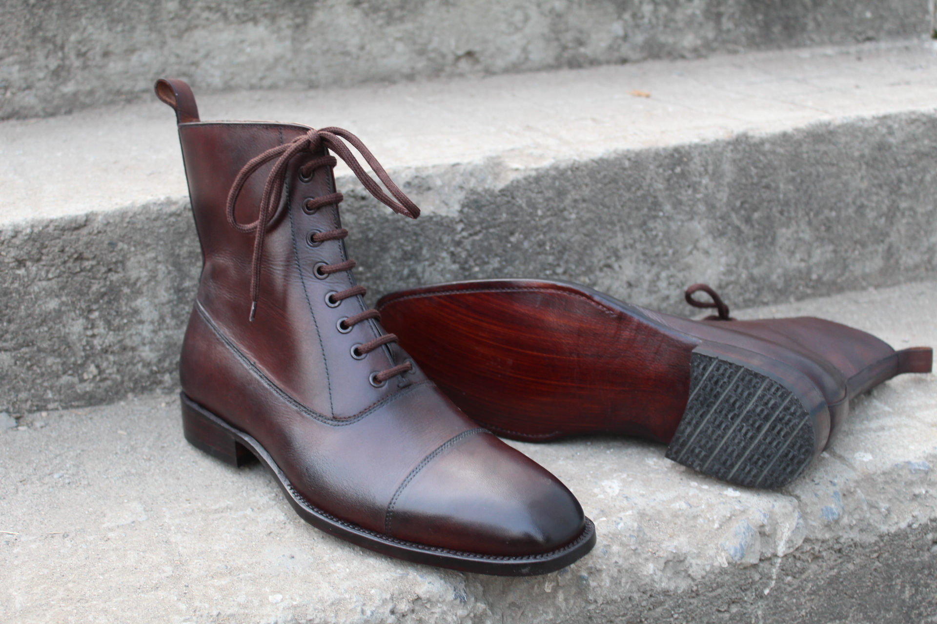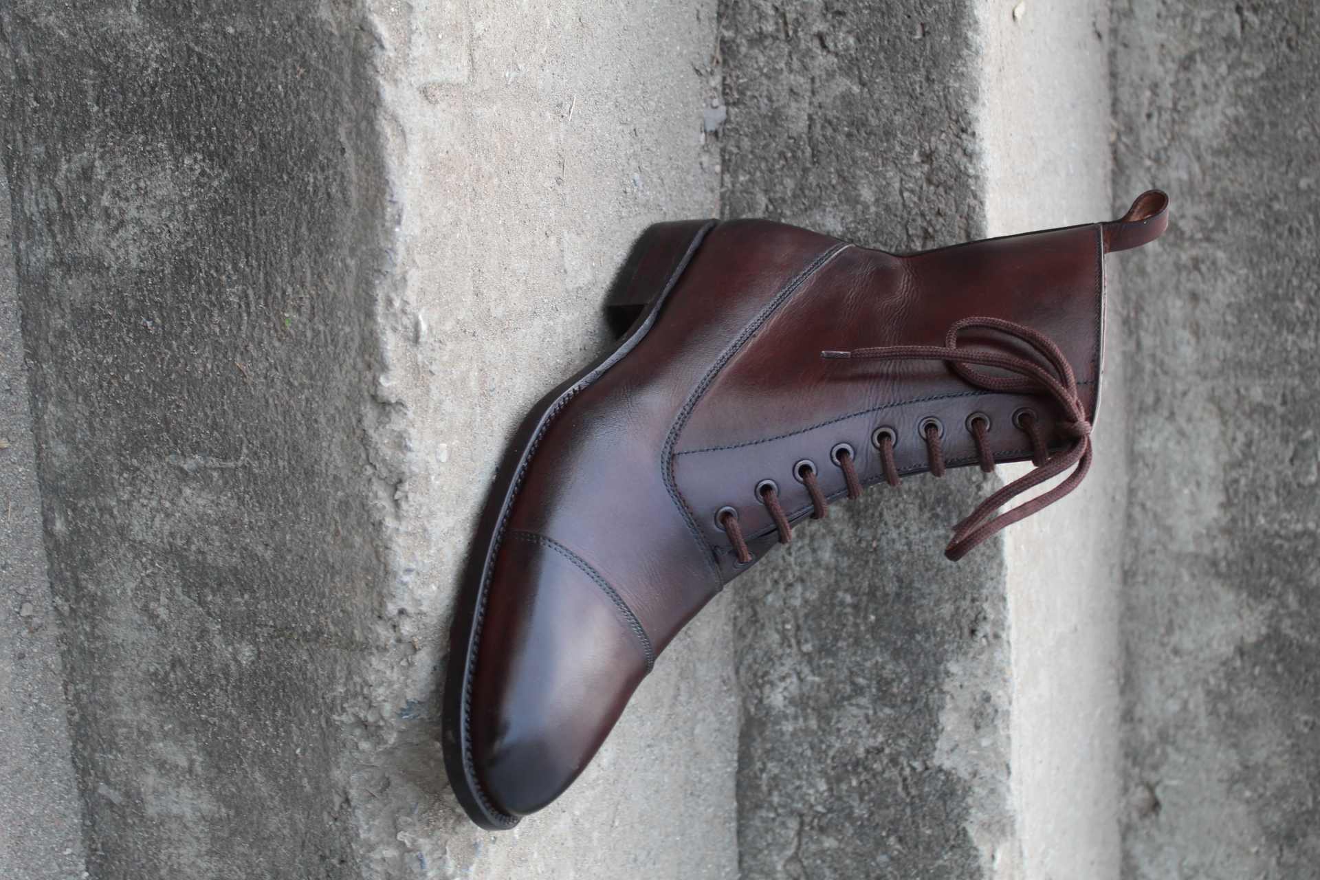 Crafted Leather Bespoke Shoes Dark Brown Classic Ankle High Lace up Dress Boot